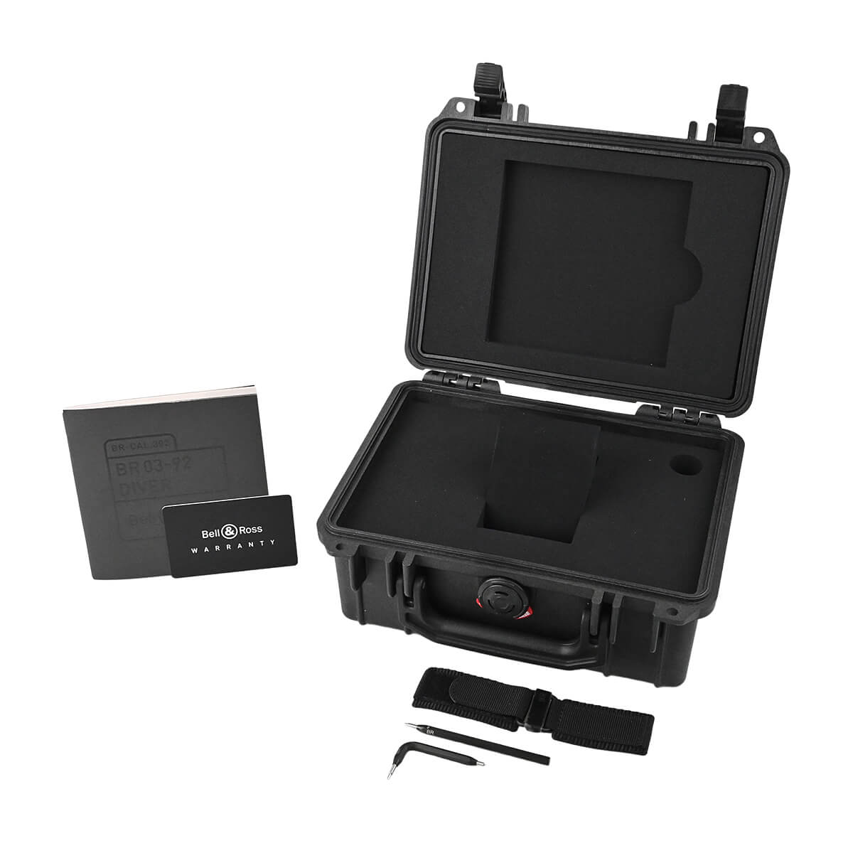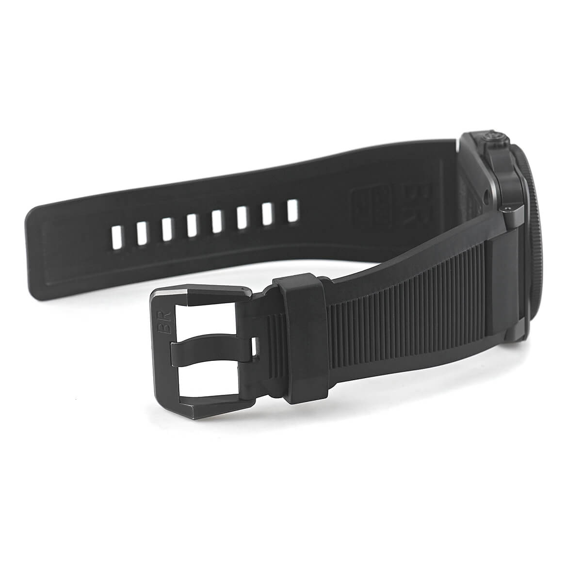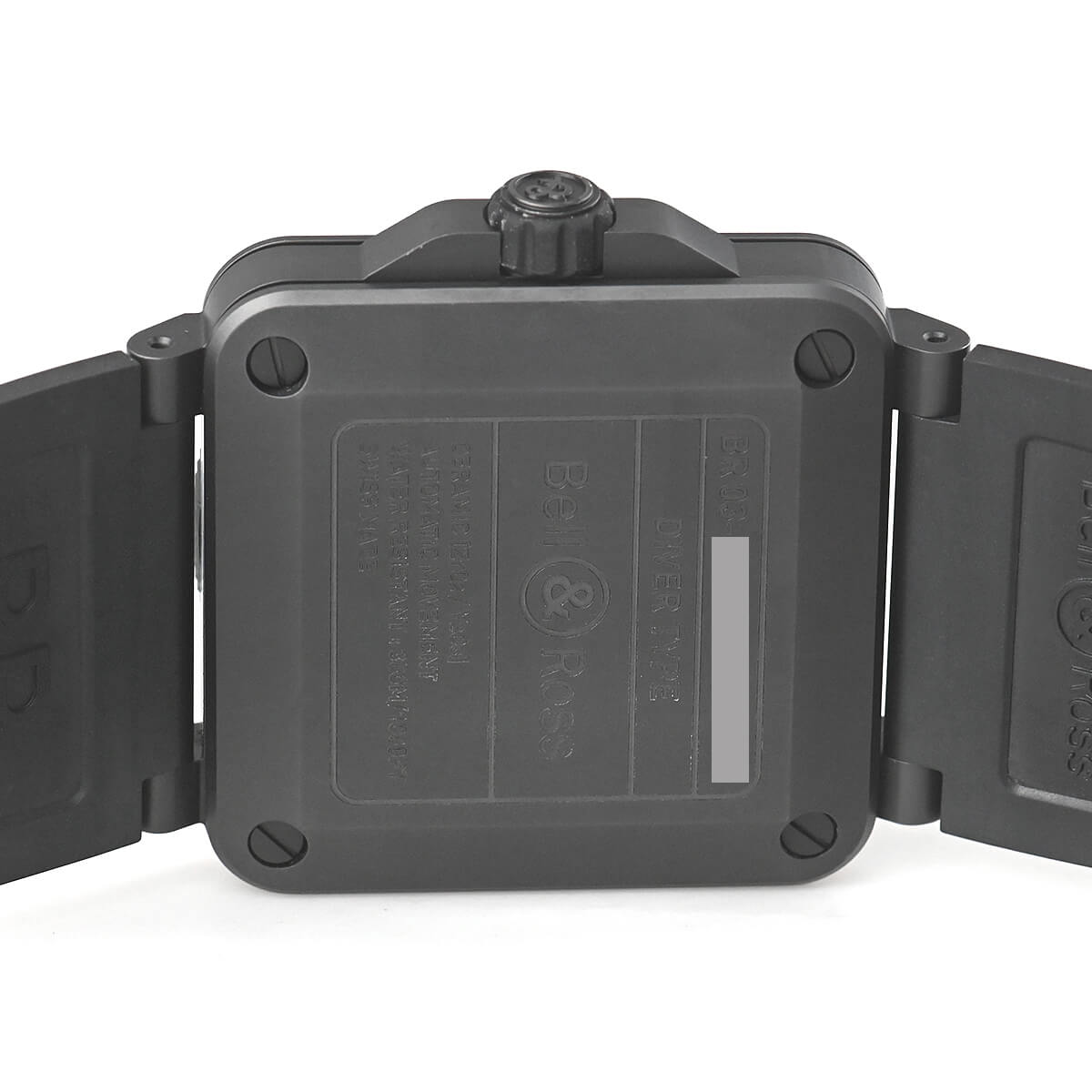 スクエアケースのBR03では初となるダイバーモデル【BR03-92 ダイバー・ブラックマット】。ケース素材には耐傷性・耐久性に優れたブラックセラミックを採用してます。