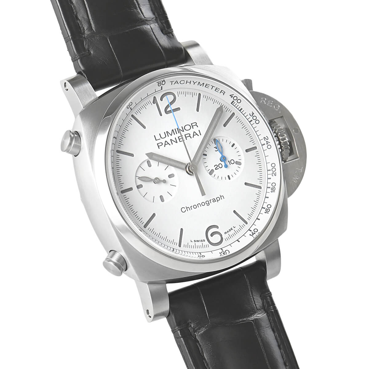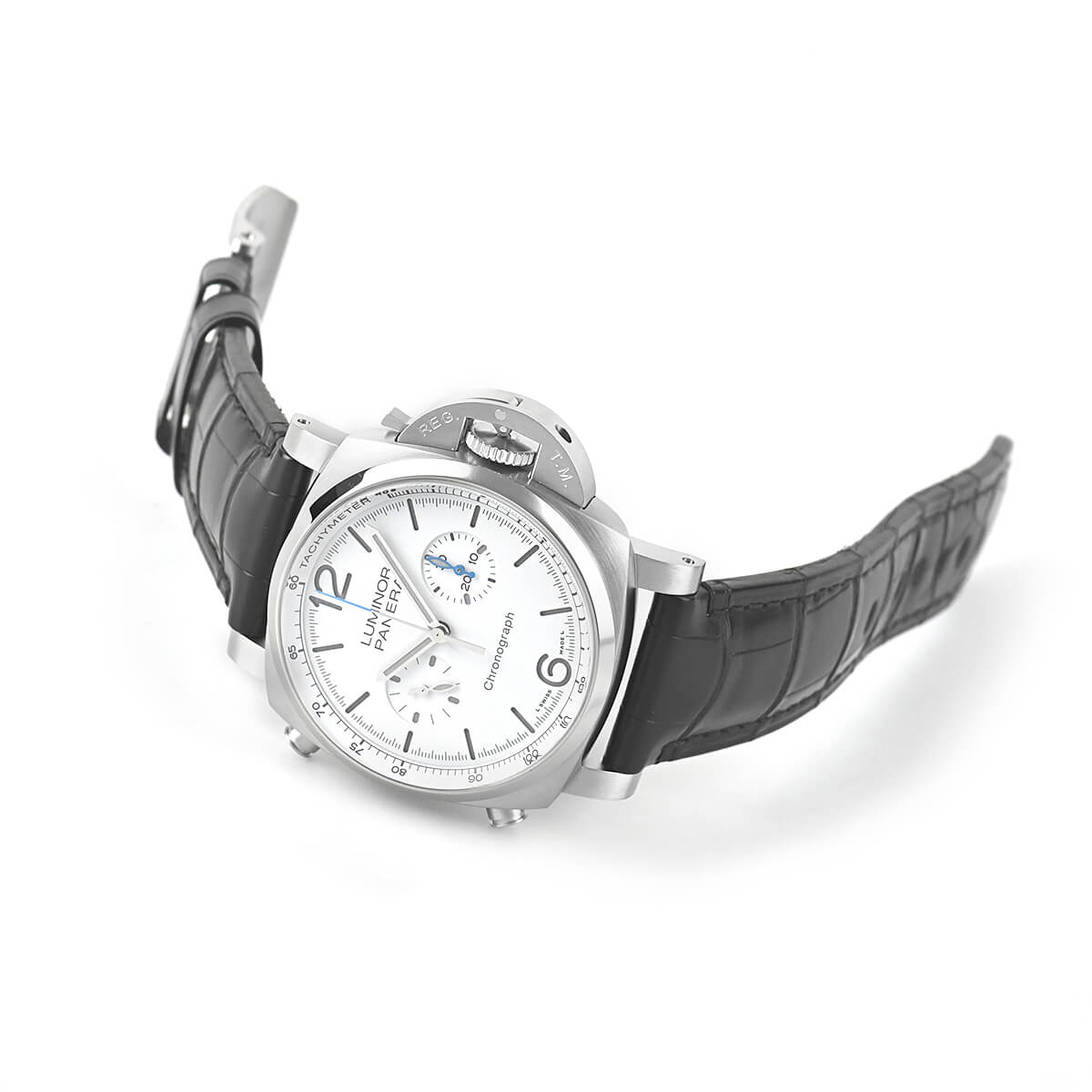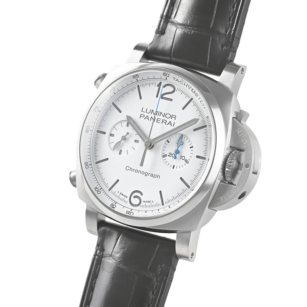 X番“2021年製”【PAM01218】ルミノールクロノが入荷しました。真っ白な文字盤にクロノグラフ秒針と30分積算計の針はブルーで爽やかな印象を与えると同時に視認性の良さも確立しています。