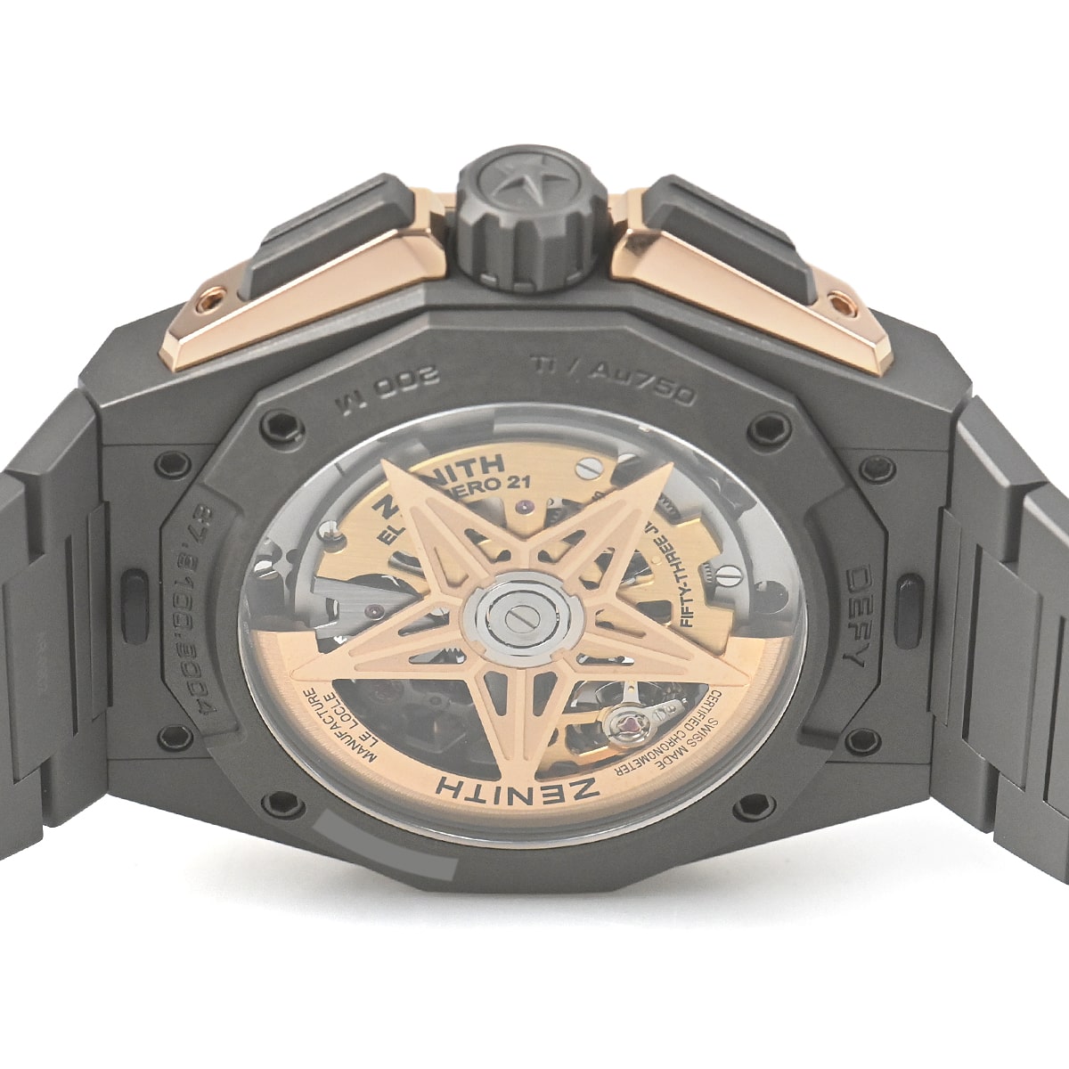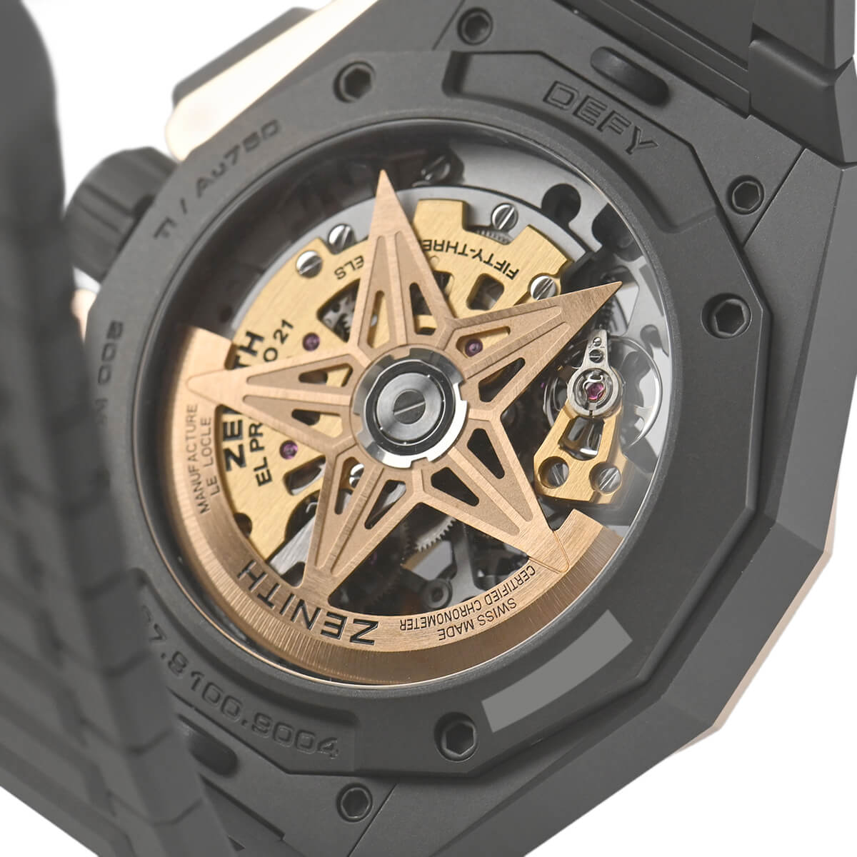 「デファイ エルプリメロ21」を進化させ、ベゼルの下に新たに12角形のリングを配したことでよりシャープでエッジを効かせたフォルムとなりました。