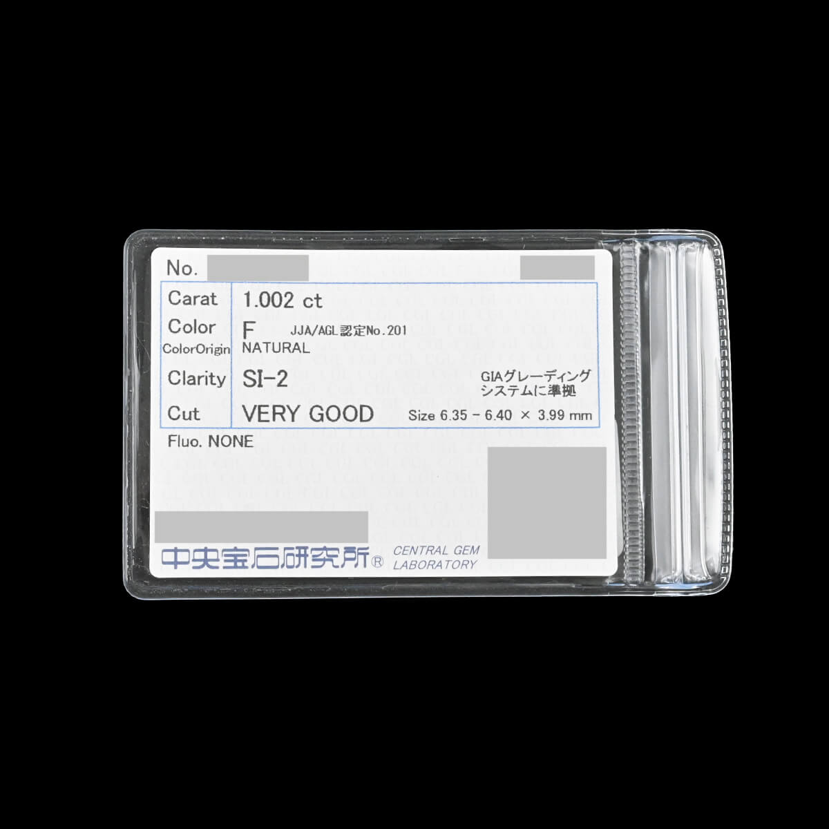 | 石目 | D 1.002ct-F-SI2-VG |