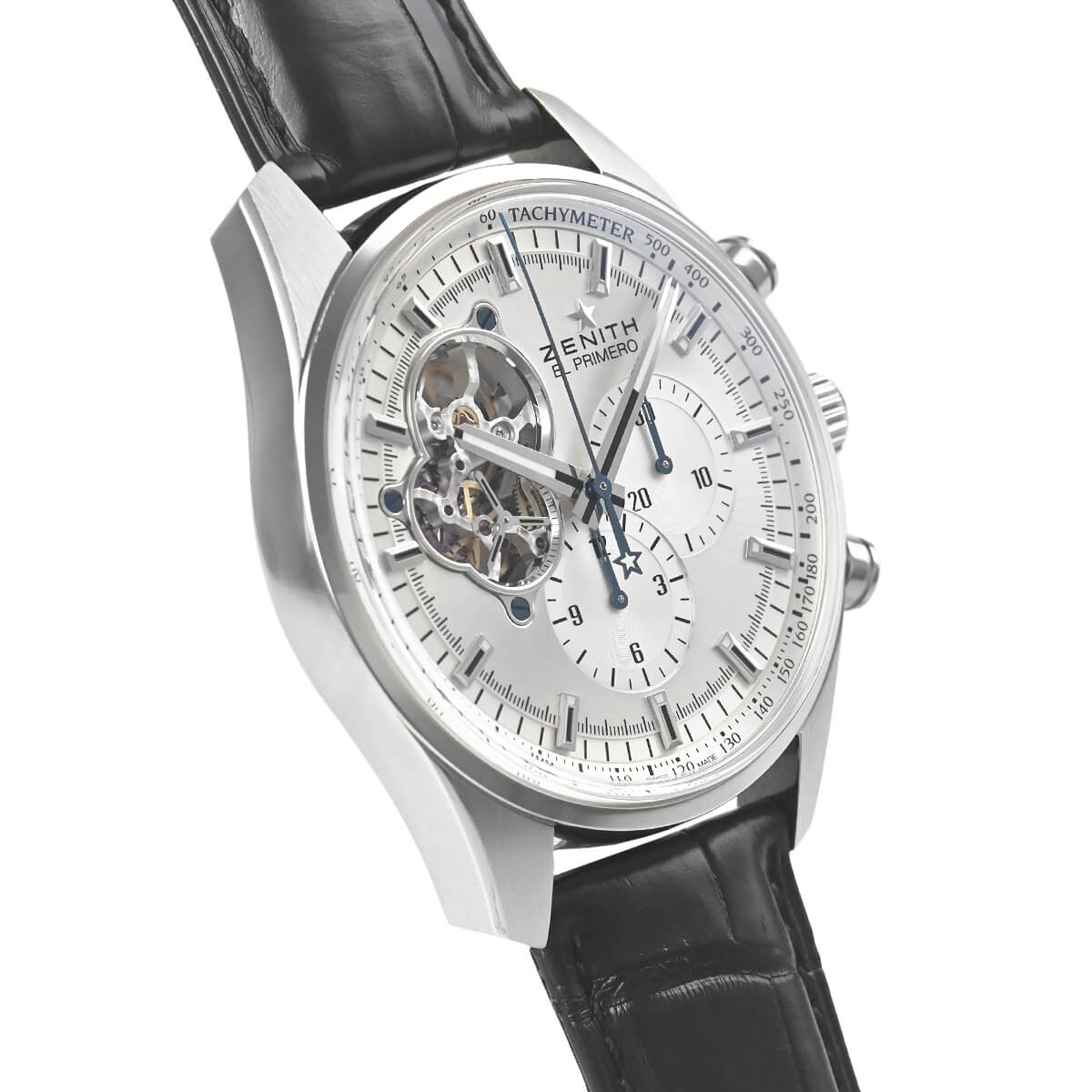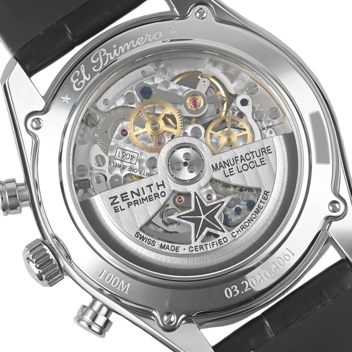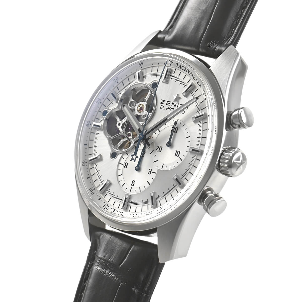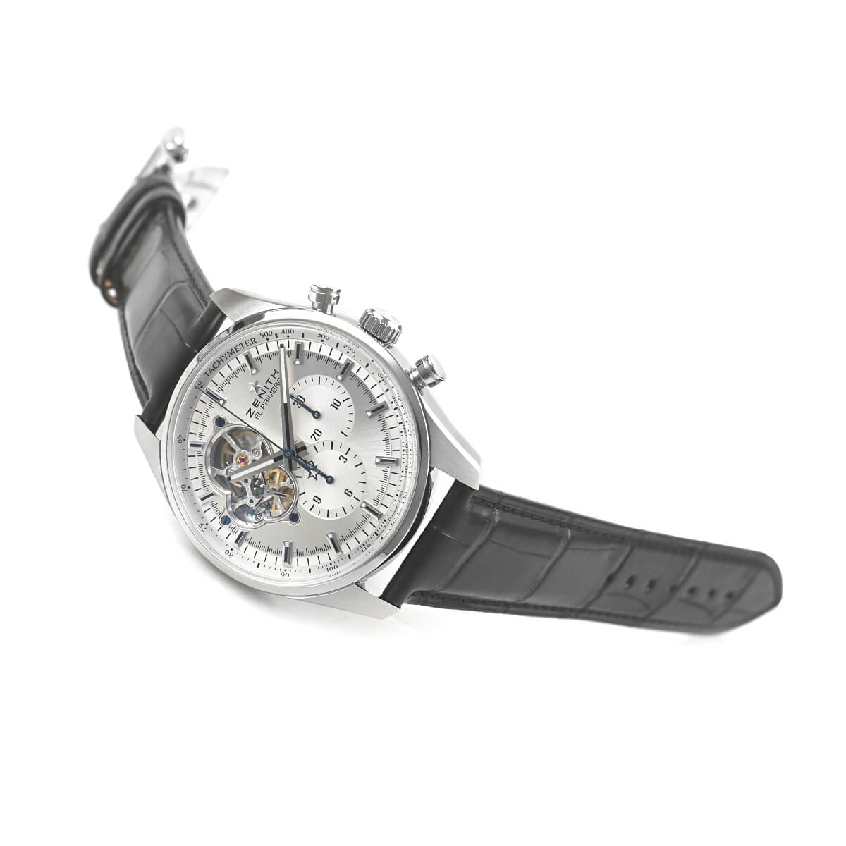 1969年発表の初代エル・プリメロをイメージした色使いに、現代のゼニスのシンボルであるダイヤルをくりぬいた「窓」を融合させた「クロノマスター エルプリメロ オープン」。現在まで続く自動巻きクロノグラフの名機「エル・プリメロ」の歴史を表した一本といえます。