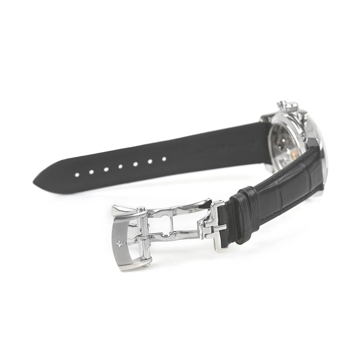 ケースはシースルーバックになっていますので、機械式クロノグラフの動きを前からでも後ろからでもご覧になれます。