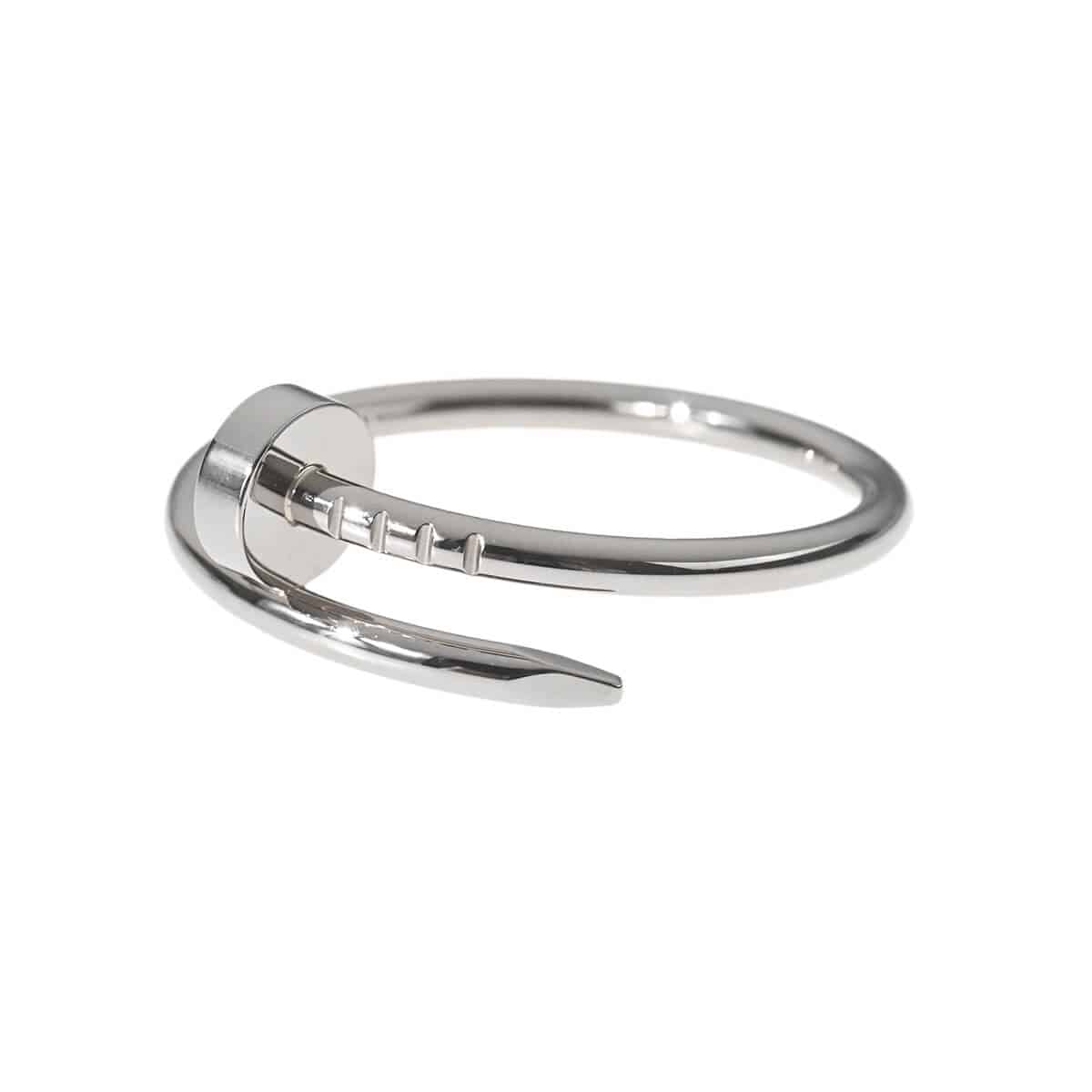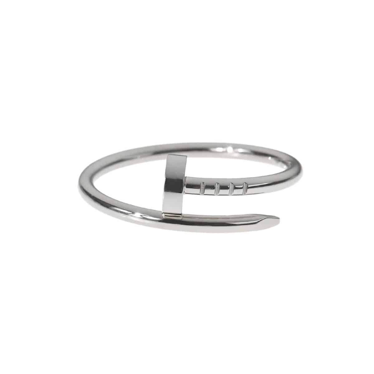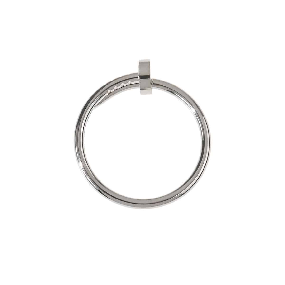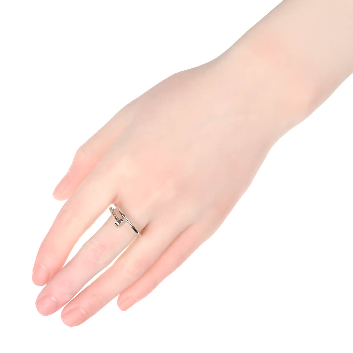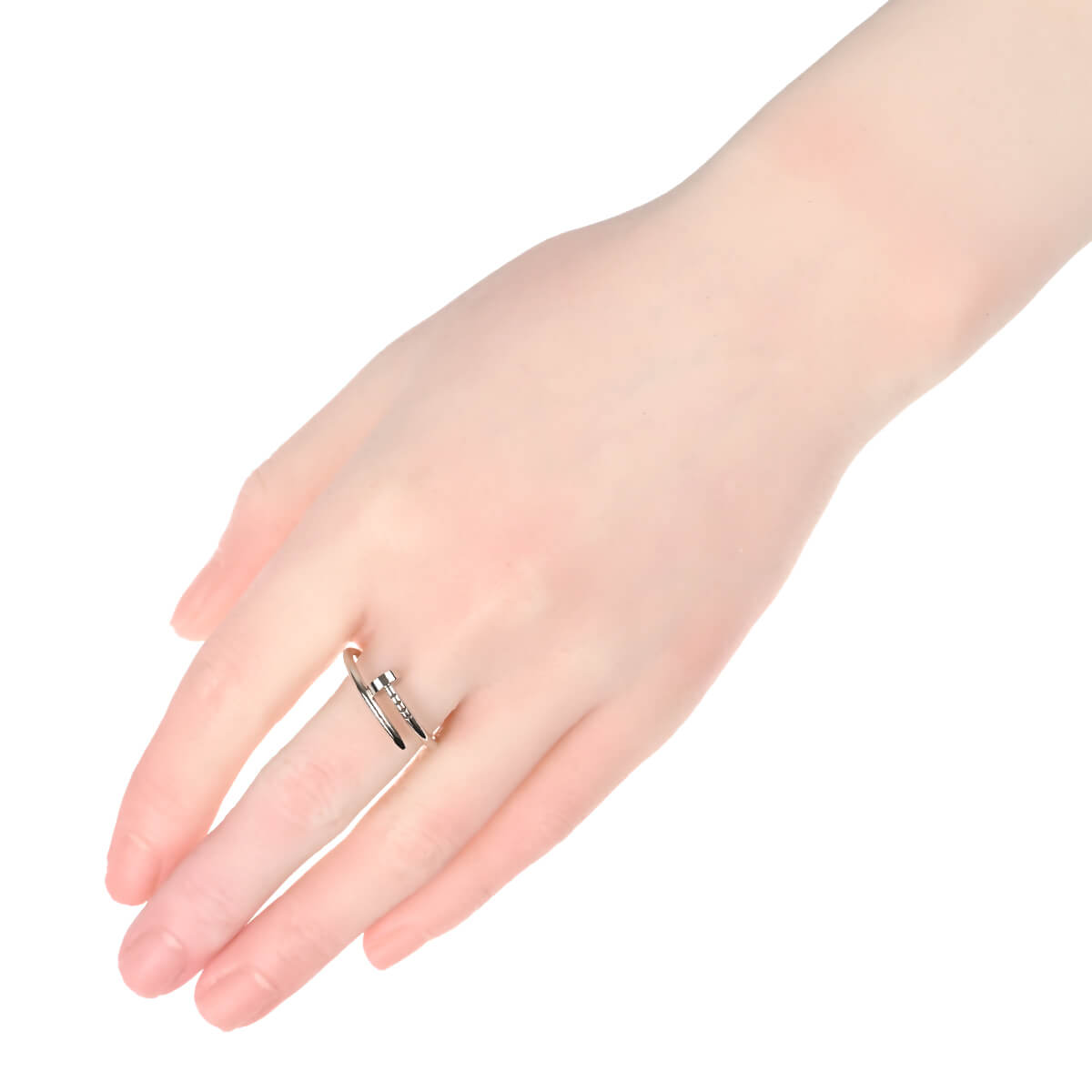 1970年代にニューヨークでデザインされた、1本の釘を意味する『Cartier(カルティエ)』「ジュスト アン クル」コレクション。釘がイメージさせる反骨精神、衝動やエネルギーがプレシャスマテリアルとシックなデザインで表現されたホワイトゴールド製スモールリングです。先駆的で大胆かつモダンなデザインに仕上げられた、カルティエの際立つ創作の力でジュエリーに姿を変えた釘をモチーフにしたリング。計算しつくされた曲線デザインが、指先でカルティエらしい洗練された雰囲気を放ちます。