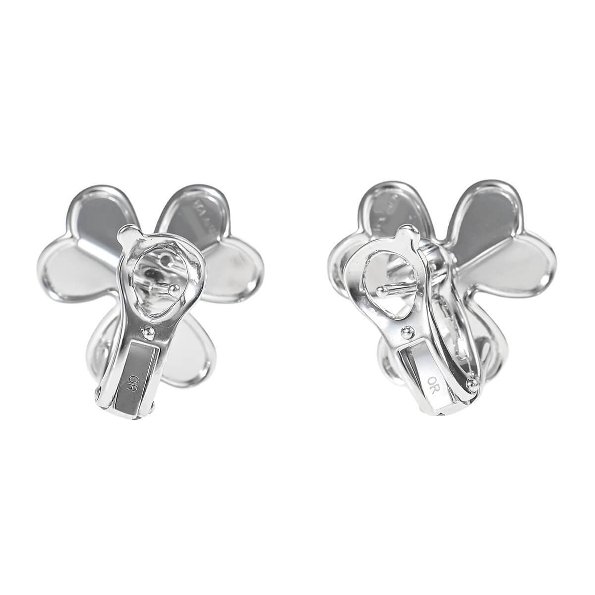 そよ風の中で花々が踊るように、グラフィカルに、軽やかに輝く『VanCleef&Arpels(ヴァンクリーフ&アーペル)』の「フリヴォル」コレクション。心安らぐ愛らしい自然の形を詩的に表現したグラフィカルなハート型の花びらが愛らしい「フリヴォル」フラワーが耳元で咲き誇る、スモールサイズのホワイトゴールド製ピアスです。フリヴォルフラワーの花びら一枚一枚をメゾンの研磨職人が特別な技法で丁寧に磨き上げ、真ん中にあしらわれたダイヤモンドの煌めきとあいまって、まるで鏡のようにまばゆく輝くお花を咲かせています。絶え間なく再生を繰り返す花々が、いつも新たな魅力を生み出す、ヴァンクリーフの“フローラ”コレクション。格別の存在感を放ちながら咲き誇る「フリヴォル」フラワーが、横顔までフェミニンでエレガントに彩ります。