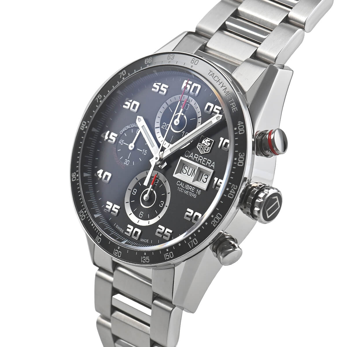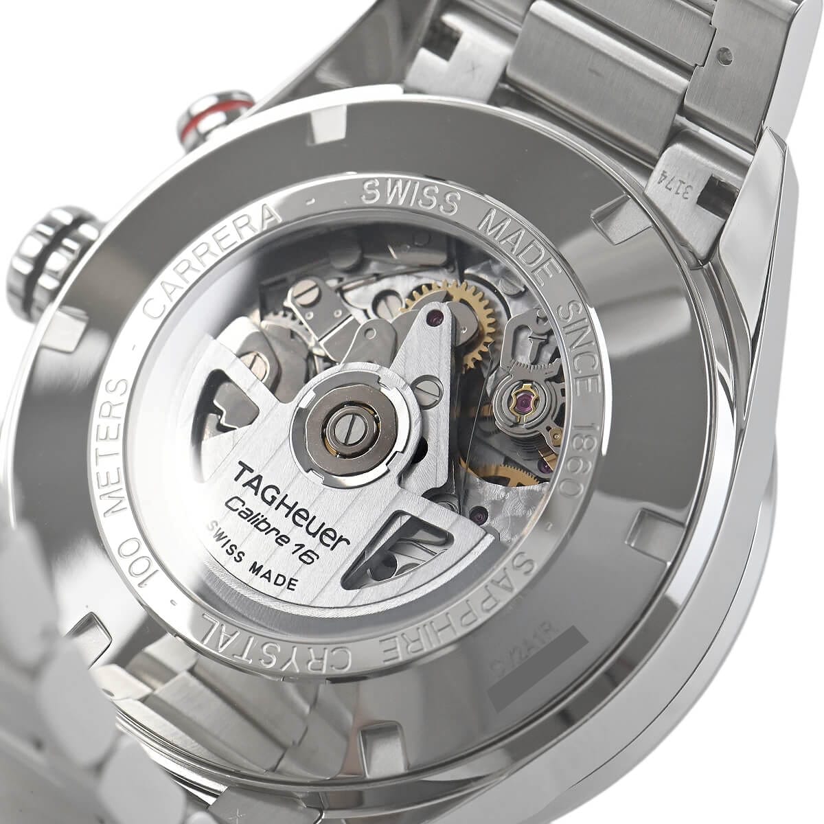 「カレラ タキメーター」シリーズに加わった「カレラ キャリバー16 クロノグラフ デイデイト」。ムーブメントにはヴァルジュー7750をベースとし、タグ・ホイヤーでチューンナップされた「キャリバー16」を搭載。
