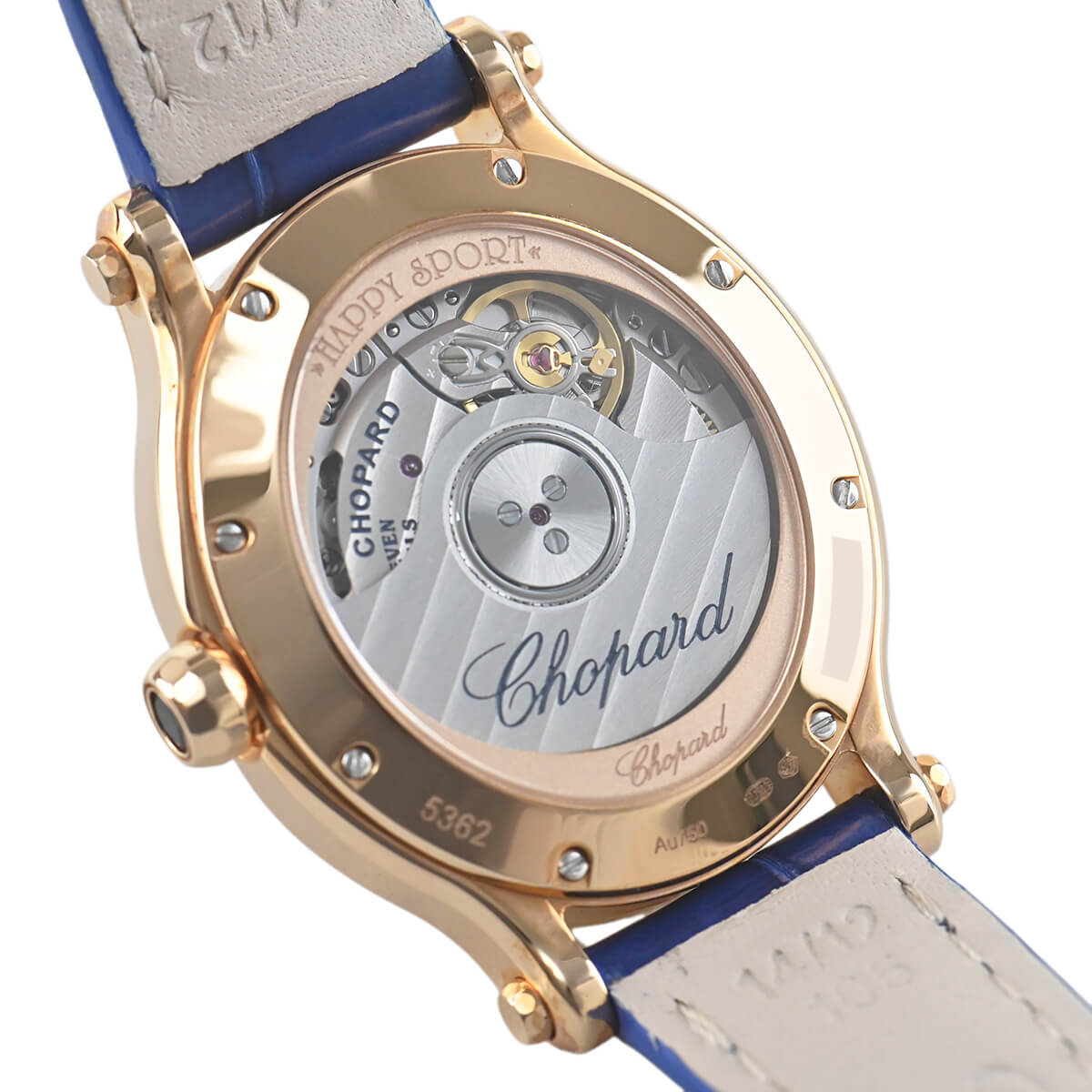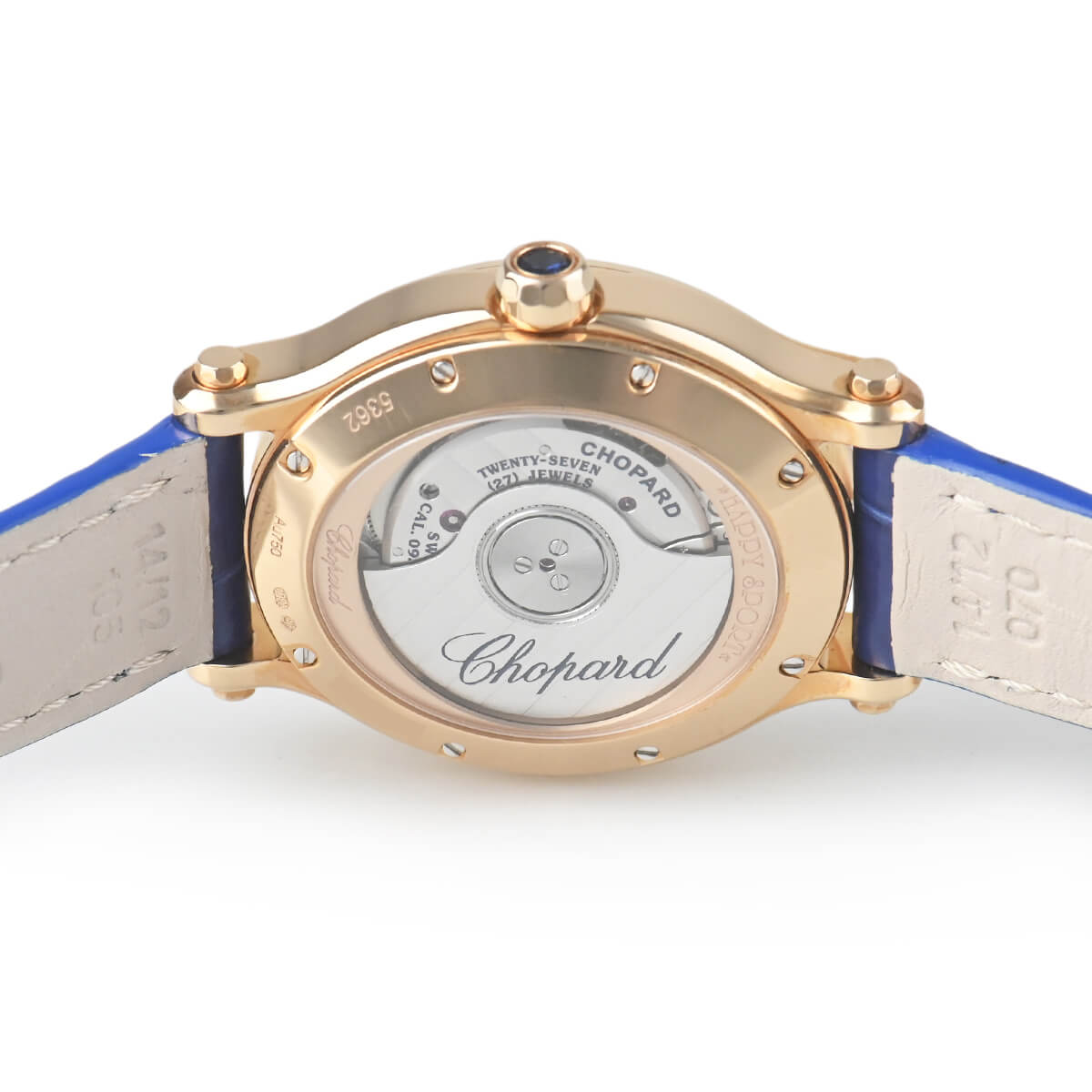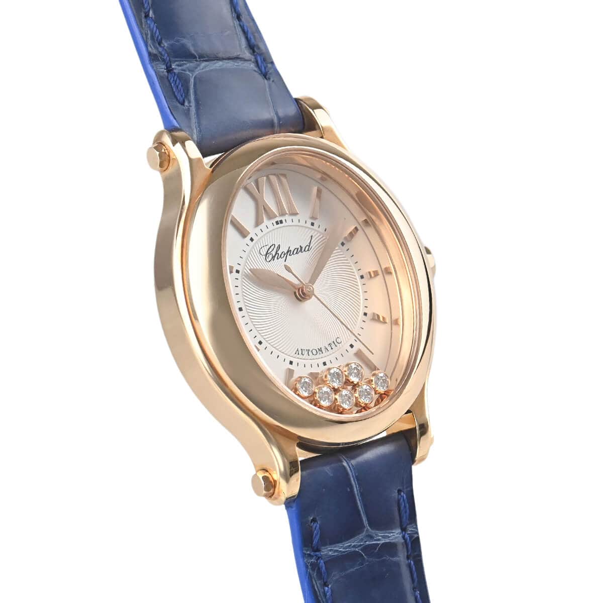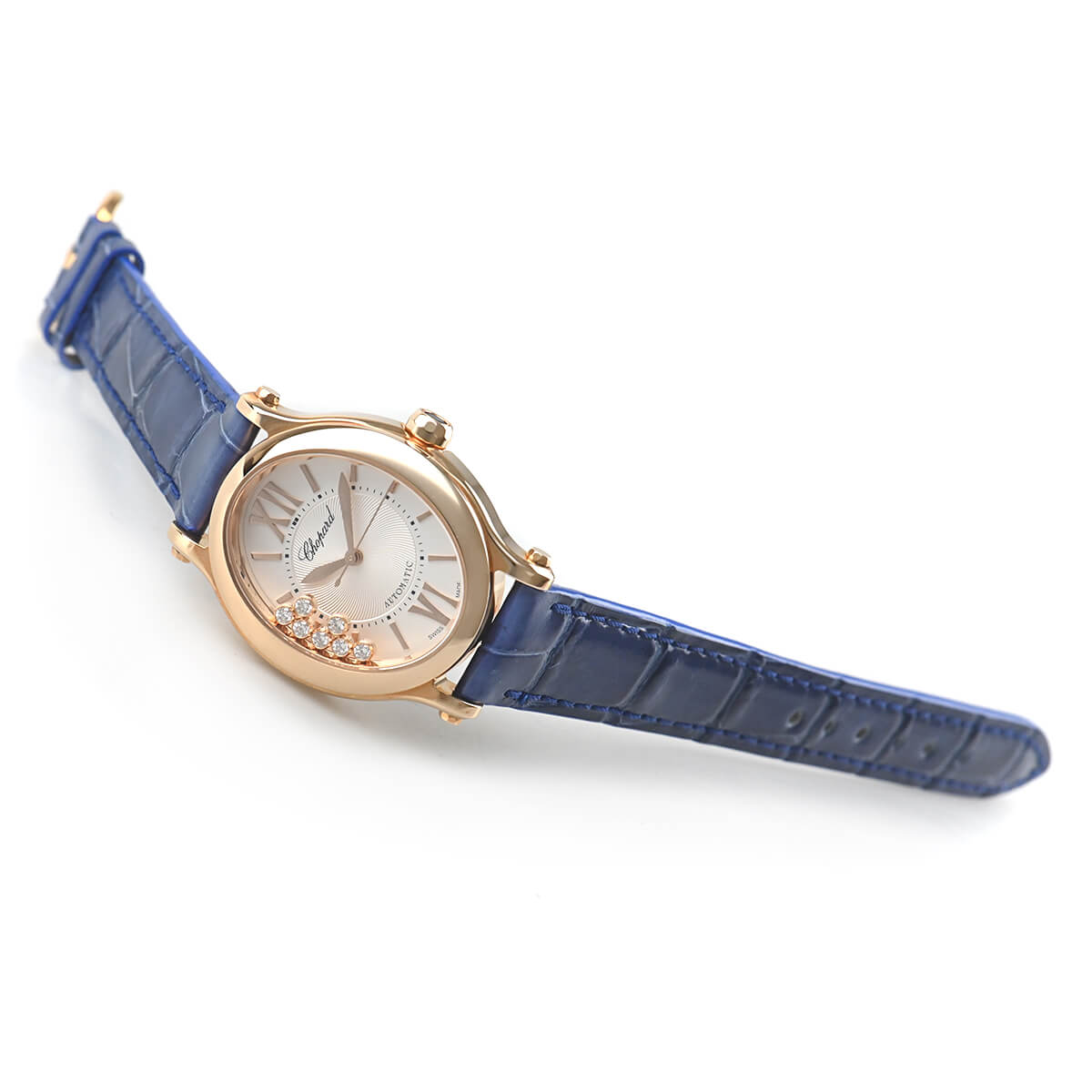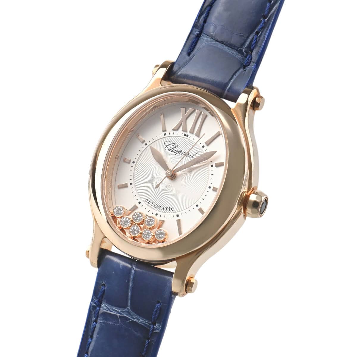 ショパールを代表する個性派ウォッチ「ハッピースポーツ」。「ハッピーダイヤモンド」から発展したこのモデルは、流れ落ちる滝が太陽の光を浴び、虹色にきらめく様子から生まれました。