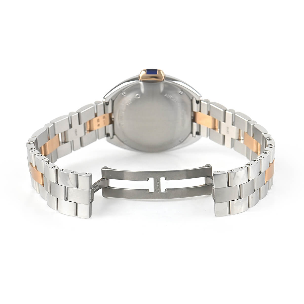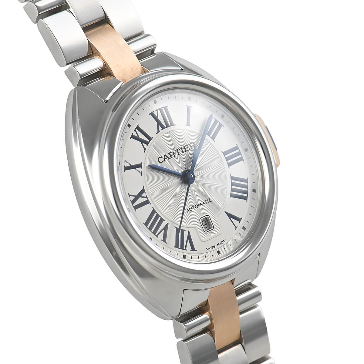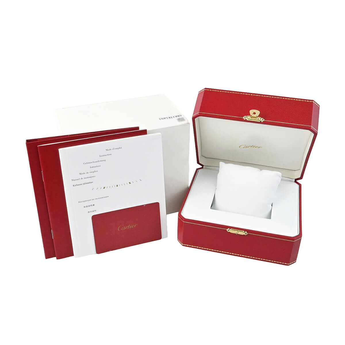 こちらはピンクゴールドとステンレスのコンビモデルで、フランケ装飾のギョーシェ彫りが施されたシルバーダイアルもカルティエらしく美しい仕上りです。