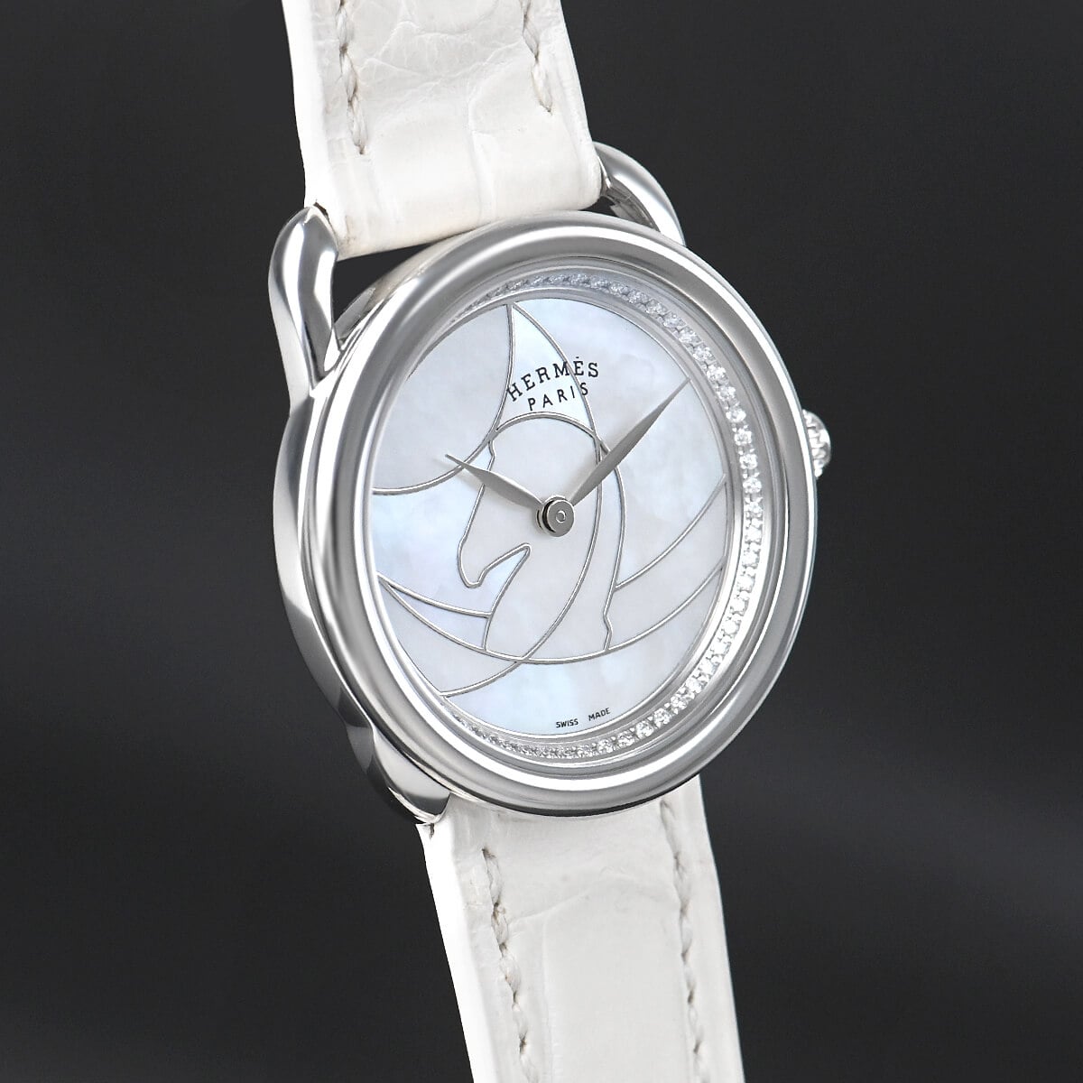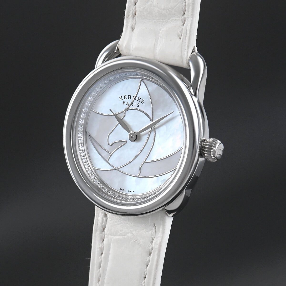 50年以上、エルメスの専属デザイナーとして中心的な役割を務めているアンリ・ドリニーによってデザインされた「アルソー」。鐙を思わせるデザインと、流れるようなインデックスが特徴です。