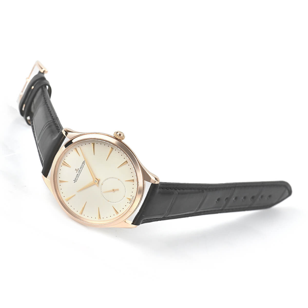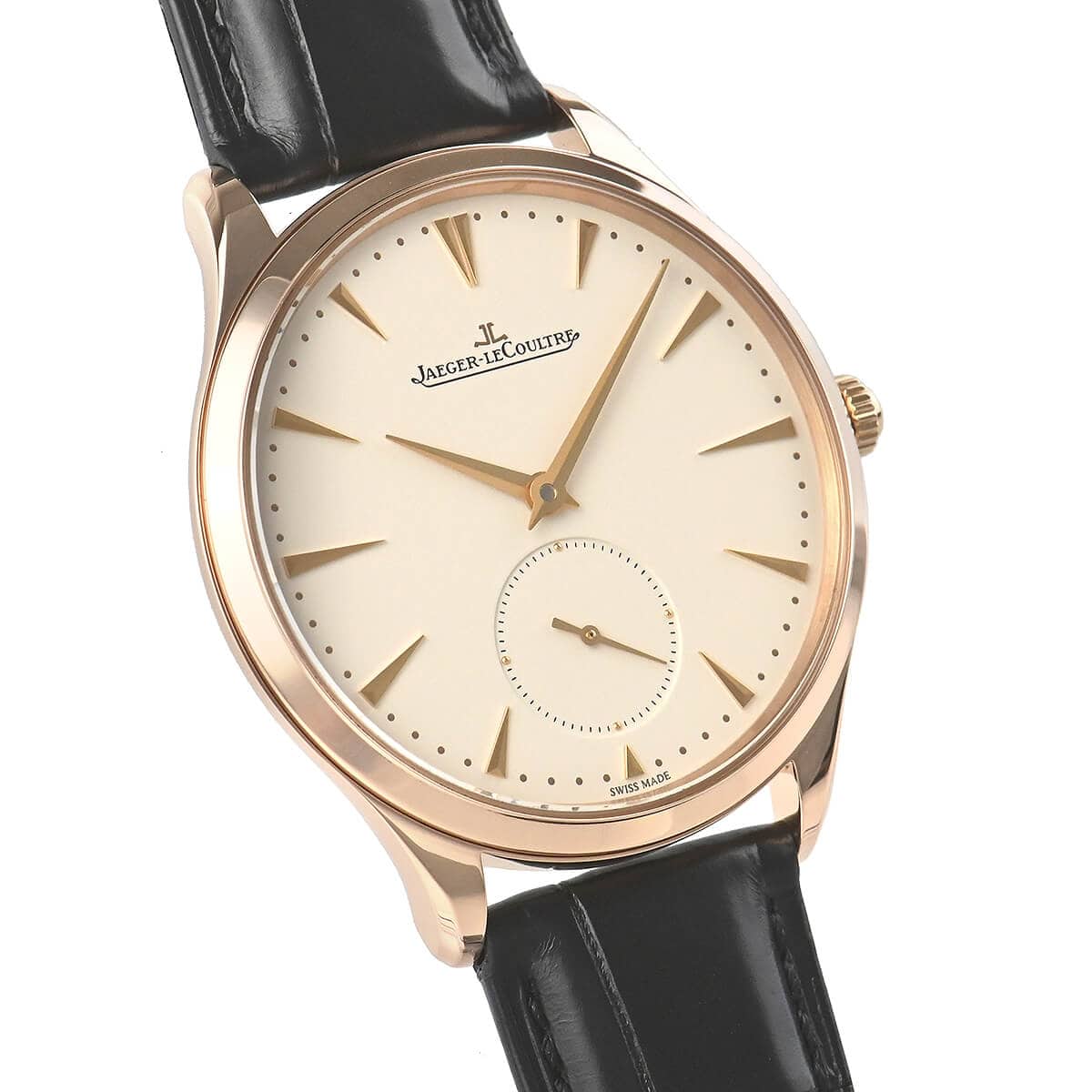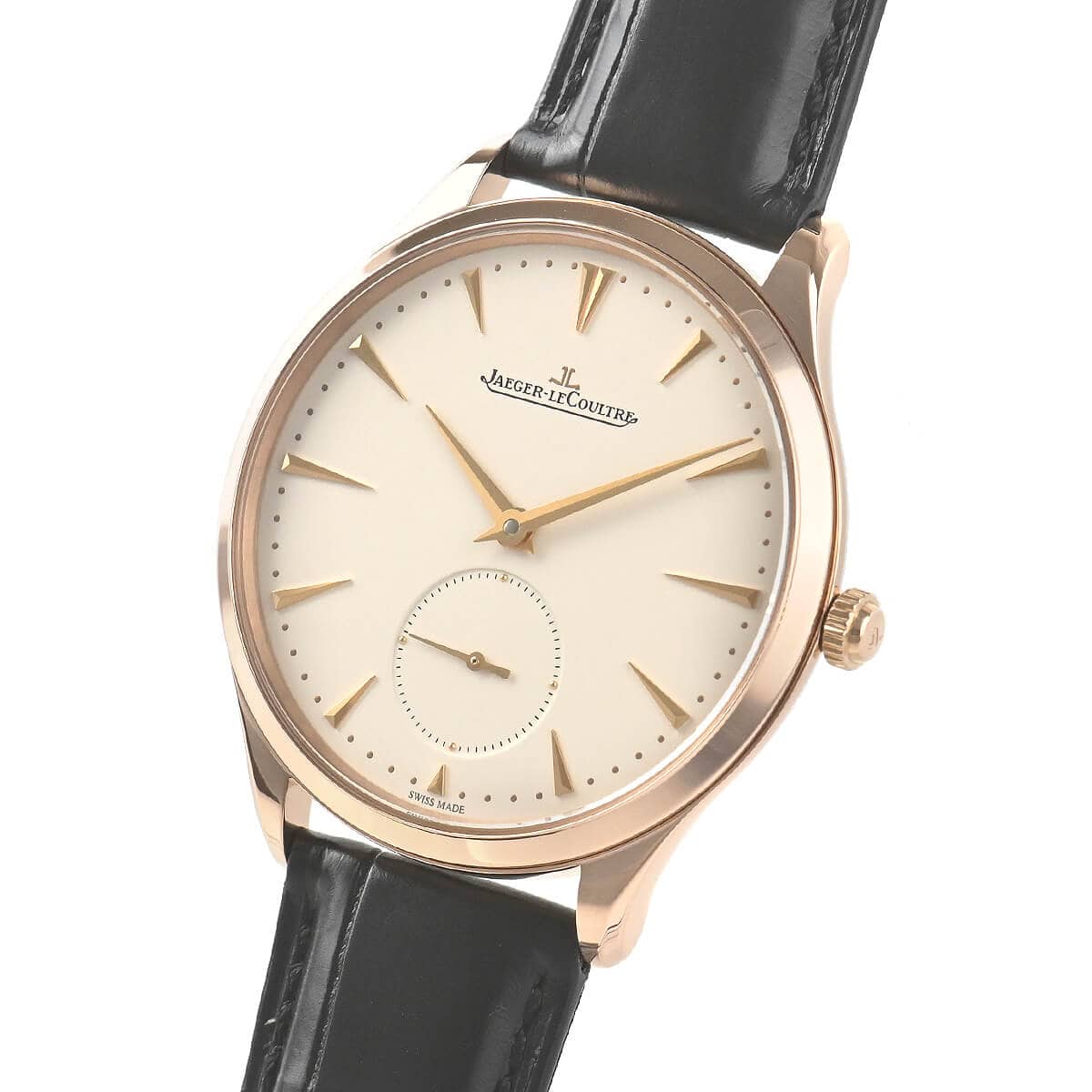 この「マスターウルトラスリム」は、スモールセコンドと長針、短針のバランスが絶妙な薄型モデル。