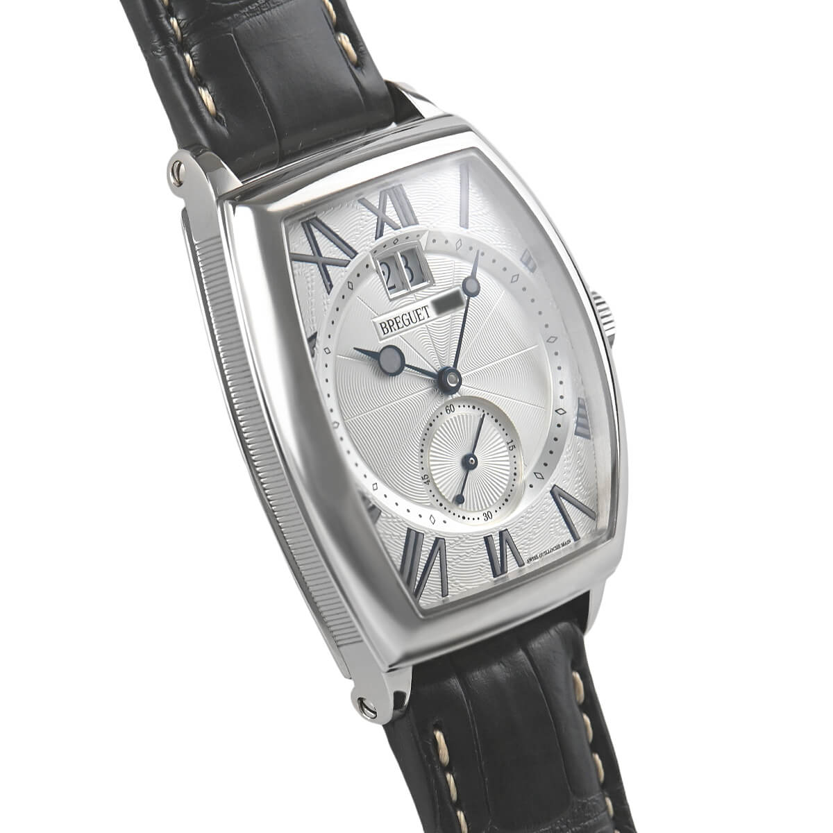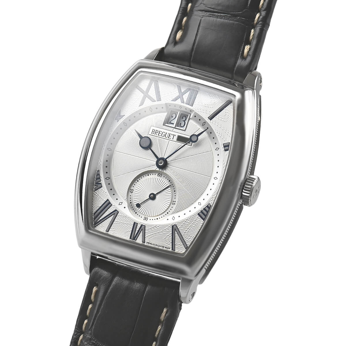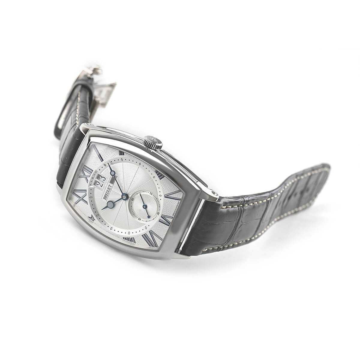 18世紀のクラシカルなスタイルを現代的なフォルムに応用した「トノーカンブレ」。ギョーシェの刻まれたダイヤル、ブルースチールのブレゲ針やコインエッジ入りのケースなど、様々なブレゲらしい特徴を持ちながら全てが融けあう絶妙のデザインです。
