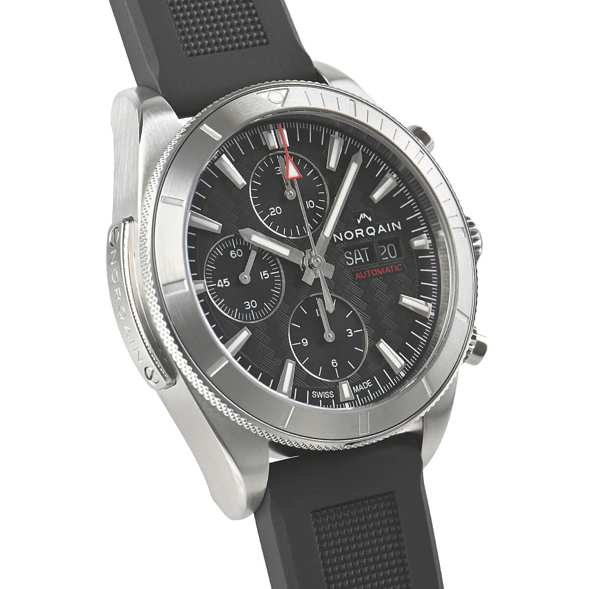 優れた堅牢性とパワフルさを備えた「アドベンチャー スポーツ」コレクション。こちらはブラックカラーのノルケインパターンダイヤルが素敵な「アドベンチャー スポーツ クロノ デイデイト 41」です。