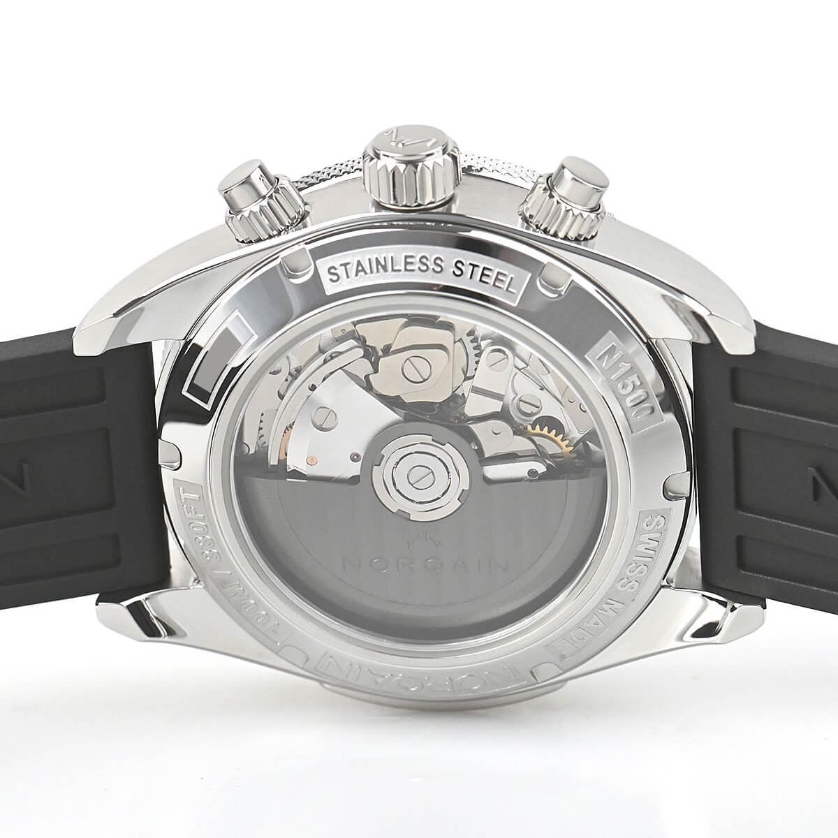 ケースはシースルーバックになっており、48時間パワーリザーブを誇るキャリバーNN17の動きを楽しめます。