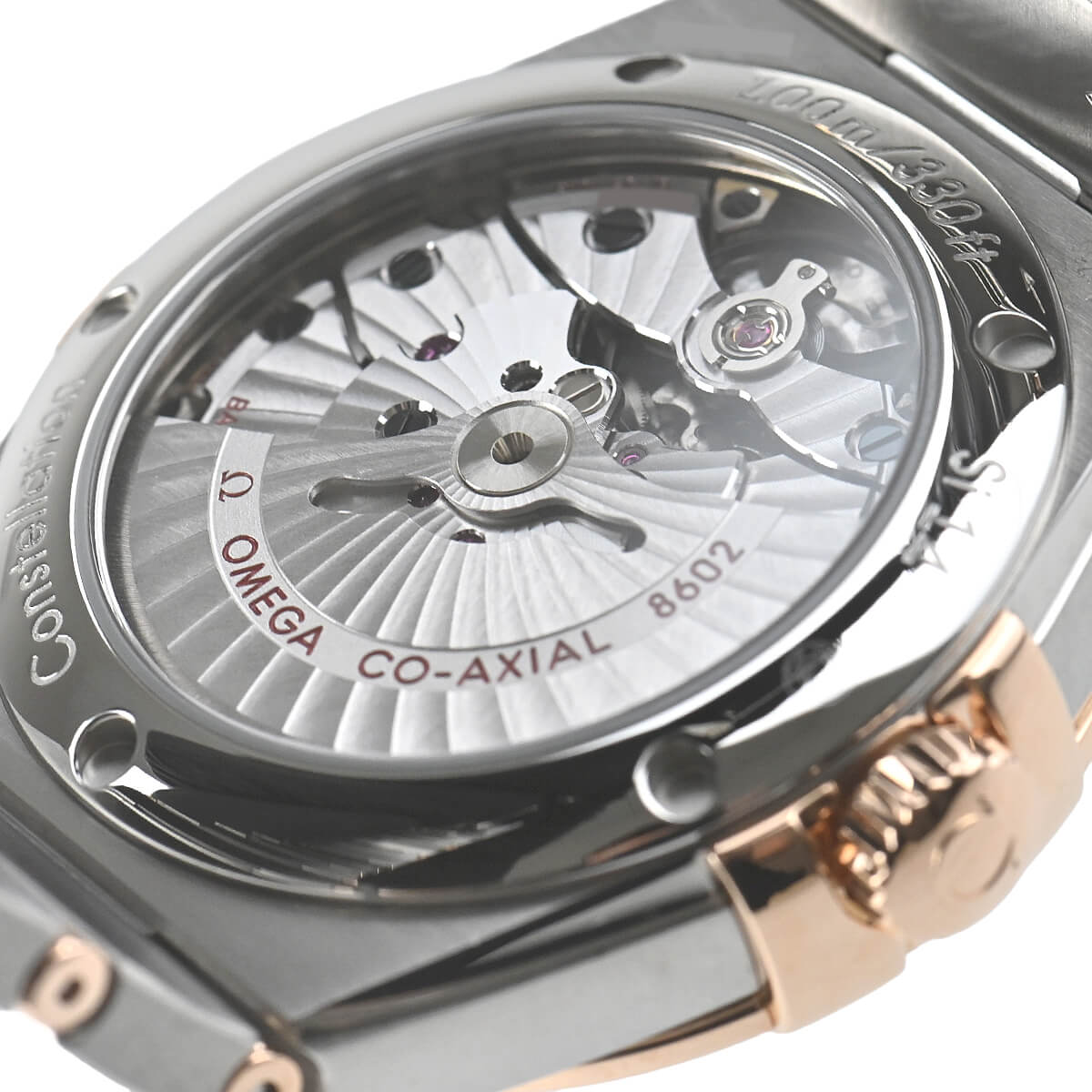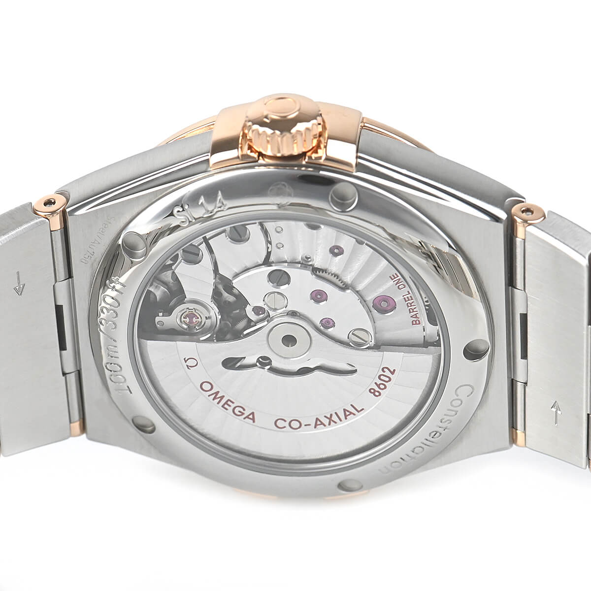 ムーブメントは、コーアクシャルムーブメントのキャリバー8602を搭載し、シースルーバックからご覧になれます。
