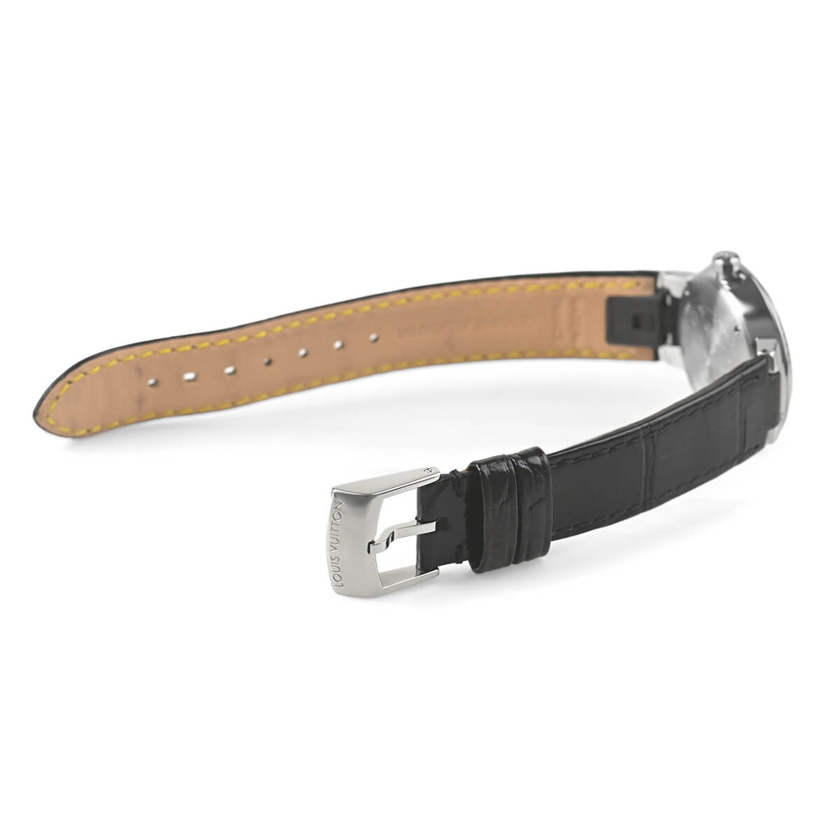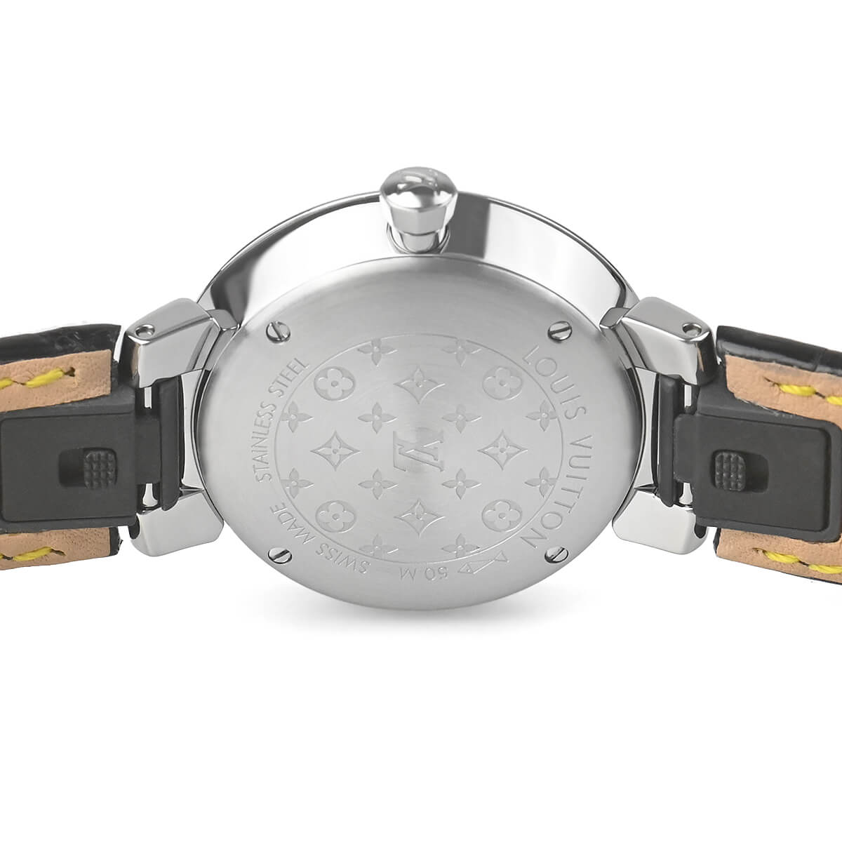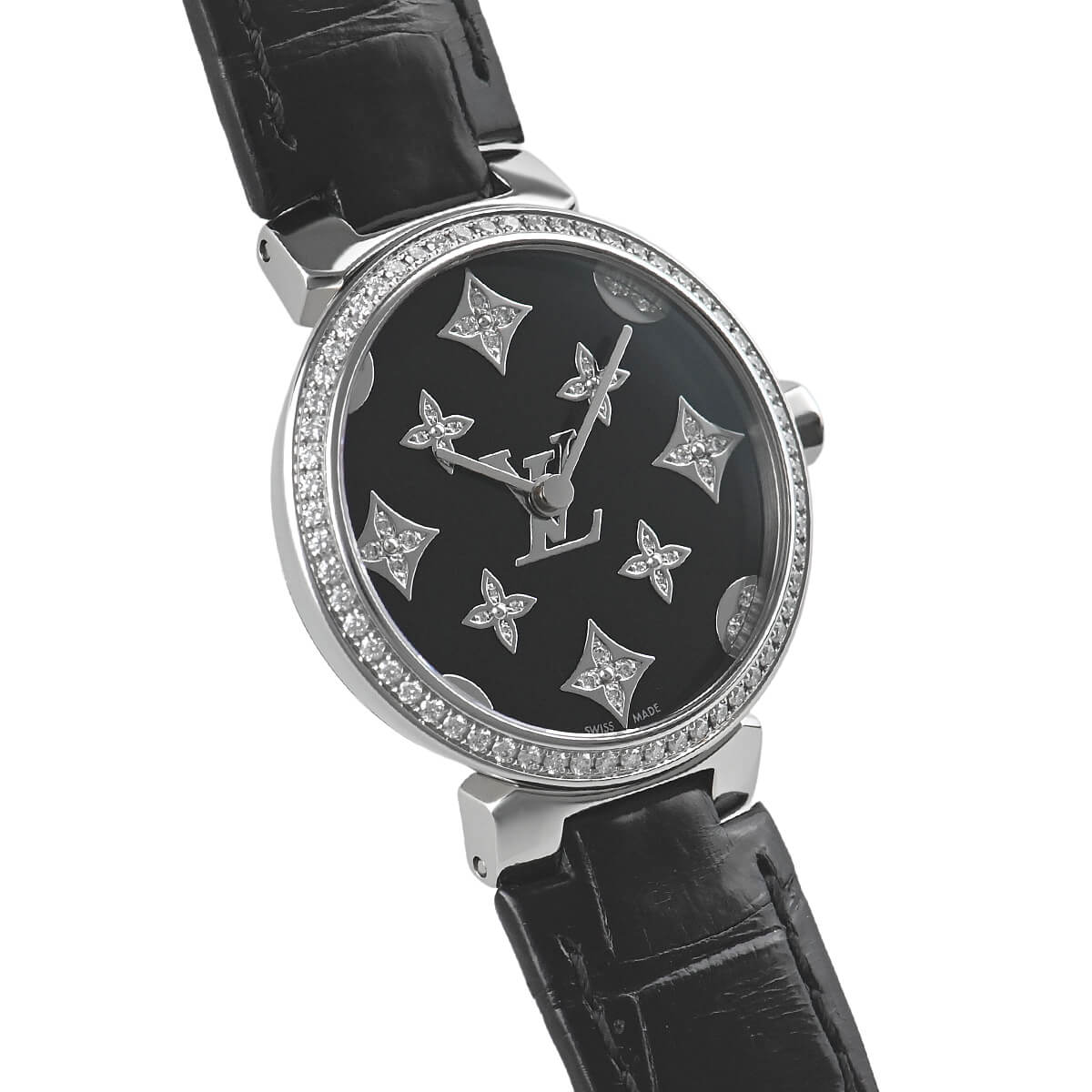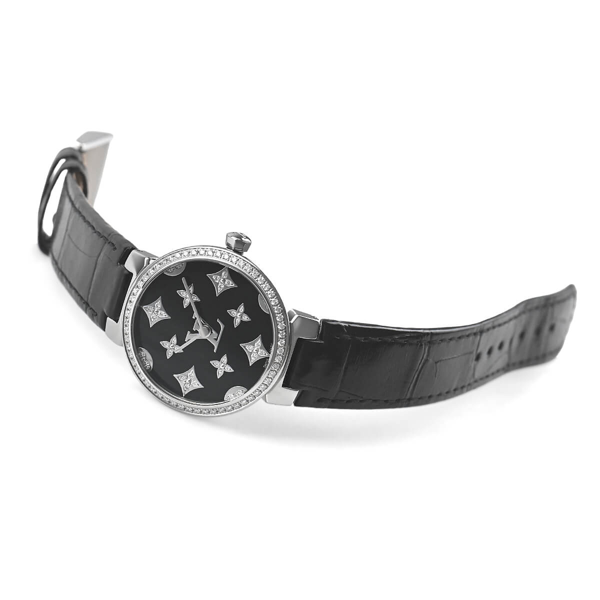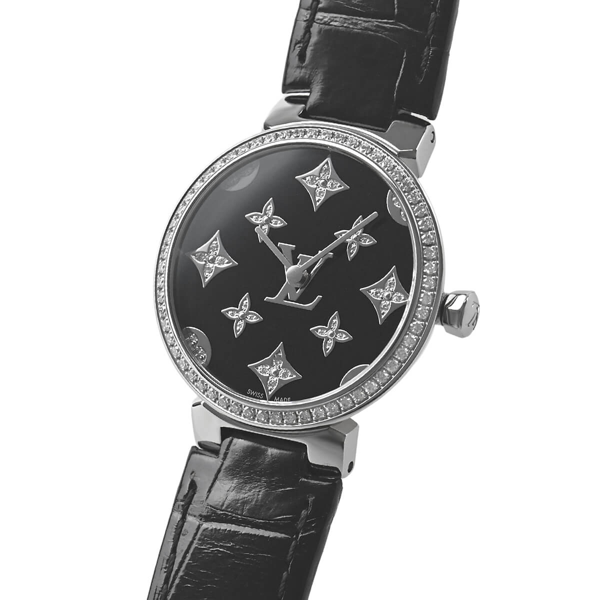 モノグラム・パターンをダイヤルに施した「タンブール スリム」。2002年のコレクション誕生以来、人気シリーズとなっている「タンブール」を薄型にし、エレガントに仕上げられた一本です。