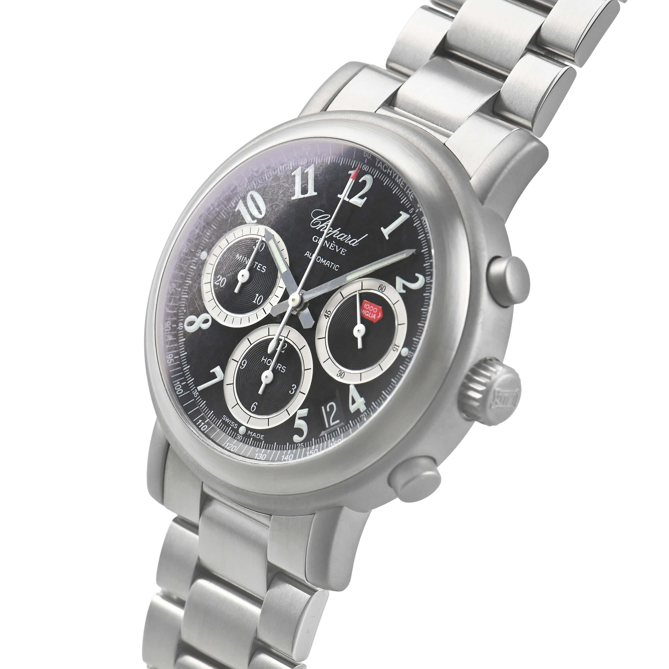 有名なヴィンテージカー・レースであるミッレミリアを記念して作られたクロノグラフです。ダイヤルはその名の由来になった1000mile(ミッレミリア)がデザインされたもの。