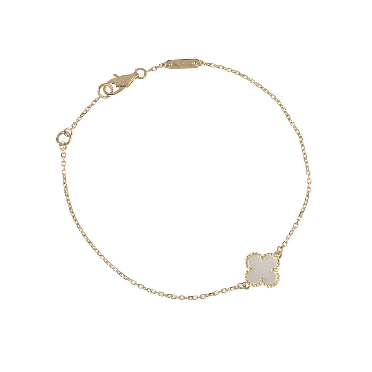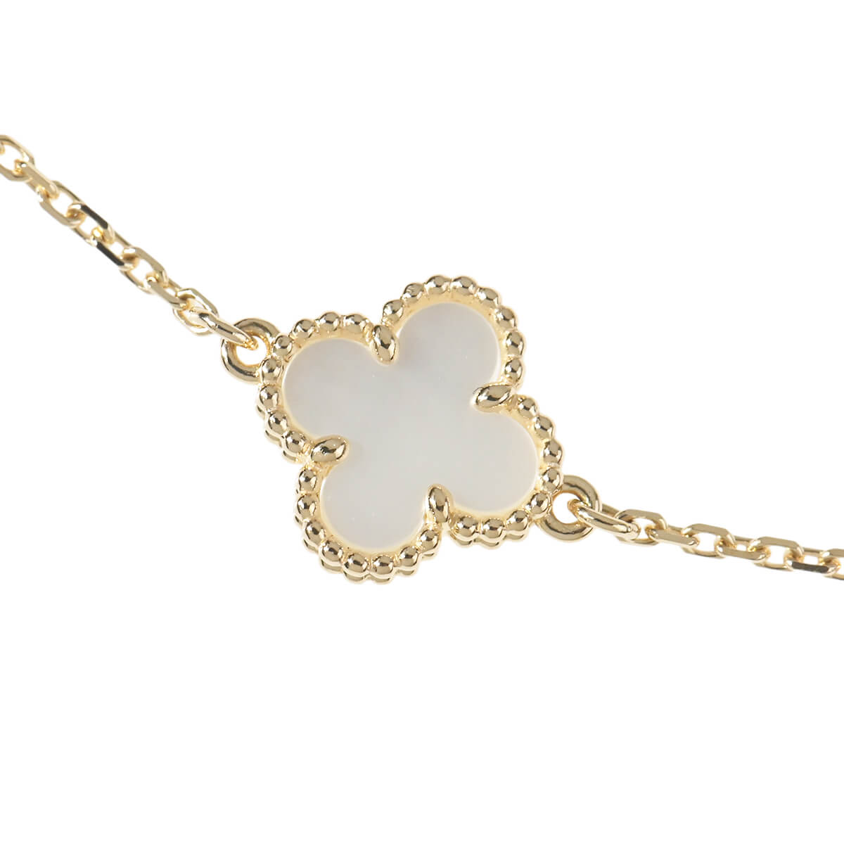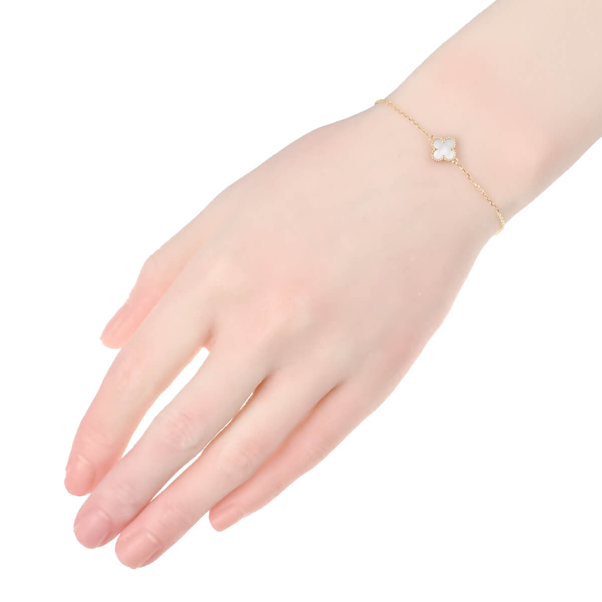 1968年に初めて誕生した幸運のシンボル「アルハンブラ」の特徴を受け継ぎ、『VanCleef&Arpels(ヴァンクリーフ&アーペル)』ならではの独創性と時を超えるエレガンスを湛える「ヴィンテージアルハンブラ」コレクション。やわらかな光沢を放つ乳白色のマザーオブパールと艶やかなイエローゴールドでデザインされた喜びに満ちた幸運のモチーフをミニチュアサイズで表現した、「スウィート アルハンブラ」コレクションのイエローゴールド製ブレスレットです。たくさんつけてもしつこくなく、むしろ“素敵”にまとまる、不思議な個性をもつアルハンブラはコレクションで揃えていって、バリエーションを魅せるのも。ひとめでそれとわかるラッキーチャームを、どのタイミングで、どのカラーで迎えるかを考えるのも楽しい、エレガントに映えるハッピーな魅力にあふれたコレクションジュエリーです。