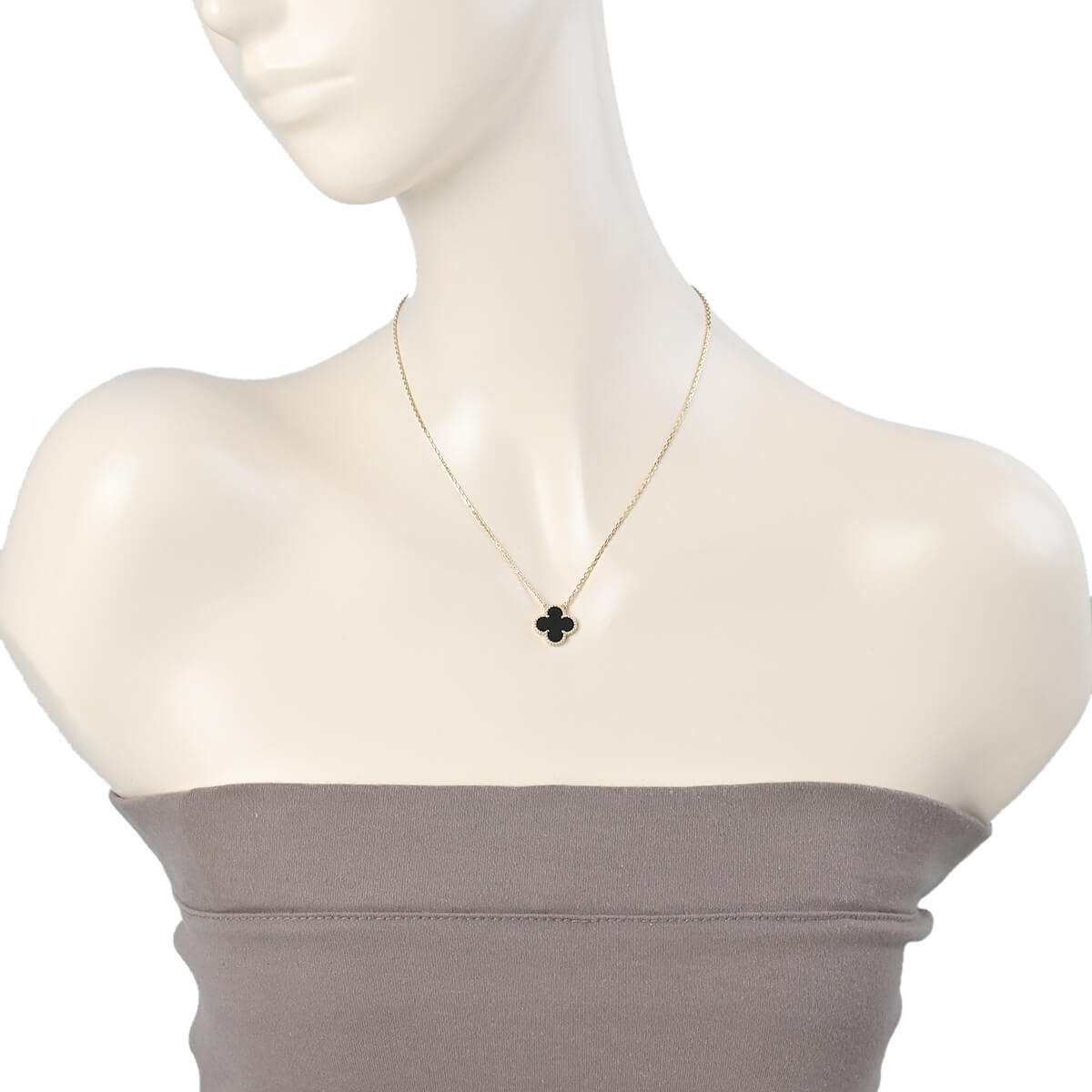 1968年に初めて誕生した幸運のシンボル「アルハンブラ」の特徴を受け継ぎ、『VanCleef&Arpels(ヴァンクリーフ&アーペル)』ならではの独創性と時を超えるエレガンスを湛える「ヴィンテージアルハンブラ」コレクションは、エレガントで清楚、控えめでありながら洗練された、メゾンを代表するアイコン。クールな印象の漆黒のオニキスと愛らしいモチーフ、そして周りを囲む可憐なゴールドビーズの掛け合わせが、“極上の甘さ”を生んでいるイエローゴールド製「ヴィンテージアルハンブラ」ペンダントです。たくさんつけてもしつこくなく、むしろ“素敵”にまとまる、不思議な個性をもつアルハンブラはコレクションで揃えていって、バリエーションを魅せるのも。ひとめでそれとわかるラッキーチャームを、どのタイミングで、どのカラーで迎えるかを考えるのも楽しい、エレガントに映えるハッピーな魅力にあふれたコレクションジュエリーです。