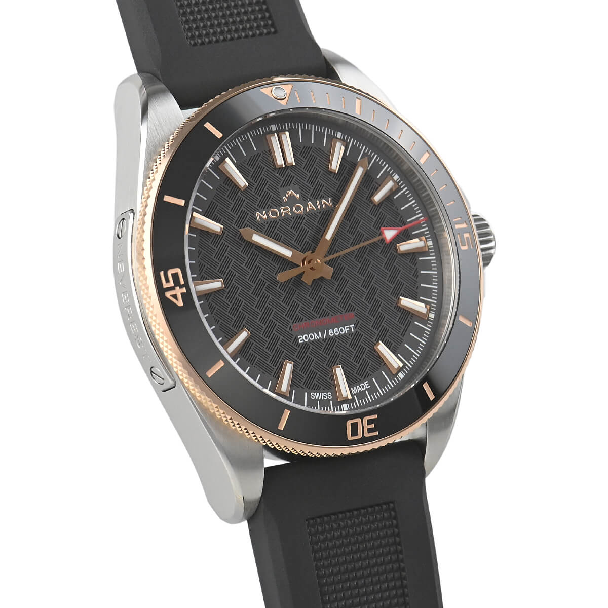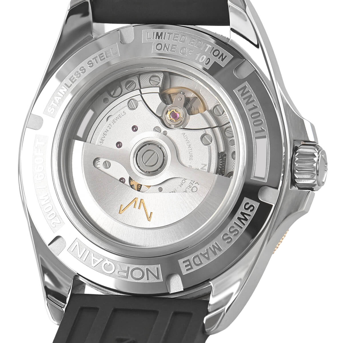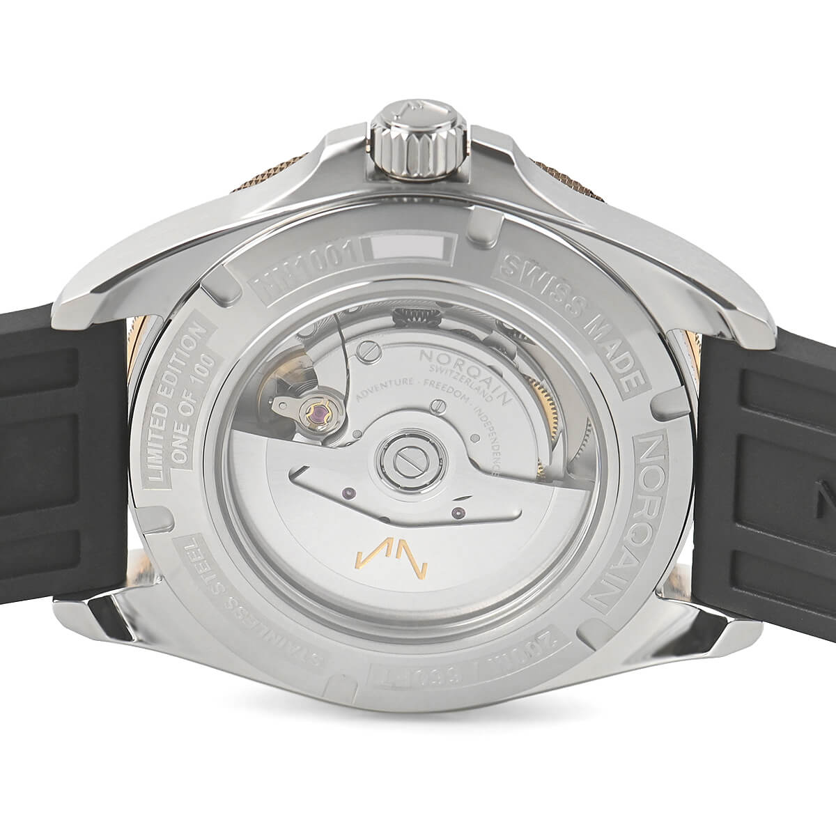 注目の新進ブランド、ノルケインの「アドベンチャー ネベレスト リミテッドエディション」が入荷いたしました。時計の心臓部はノルケイン マニュファクチュールキャリバーNN20/1で、サファイアクリスタルケースバックを通して眺めることができます。