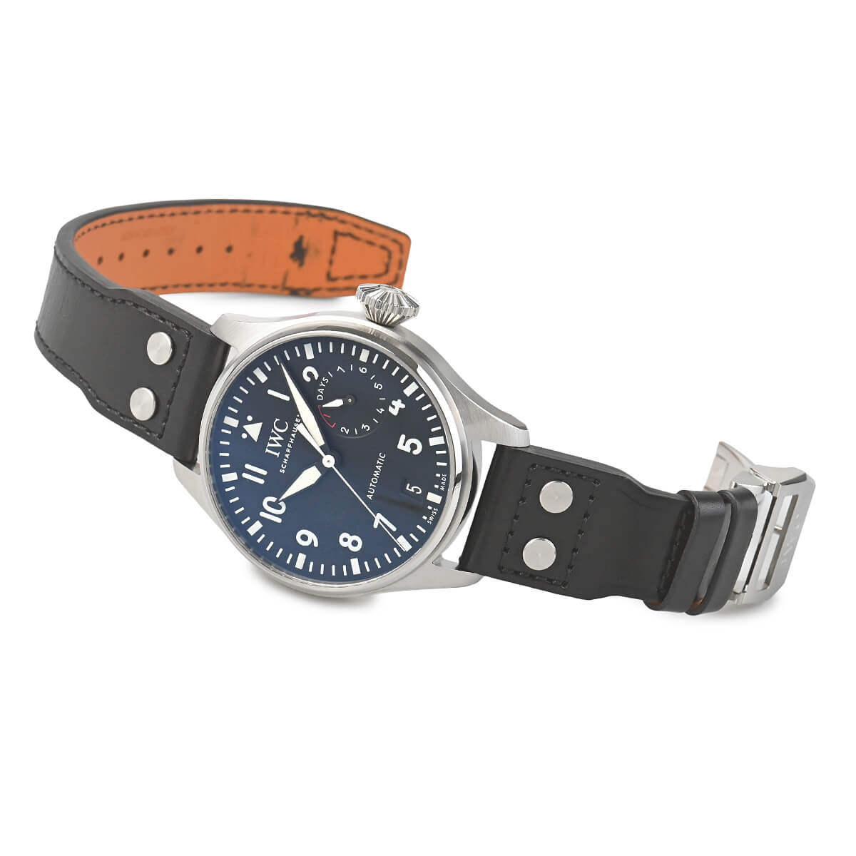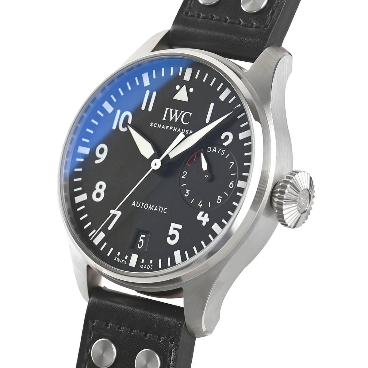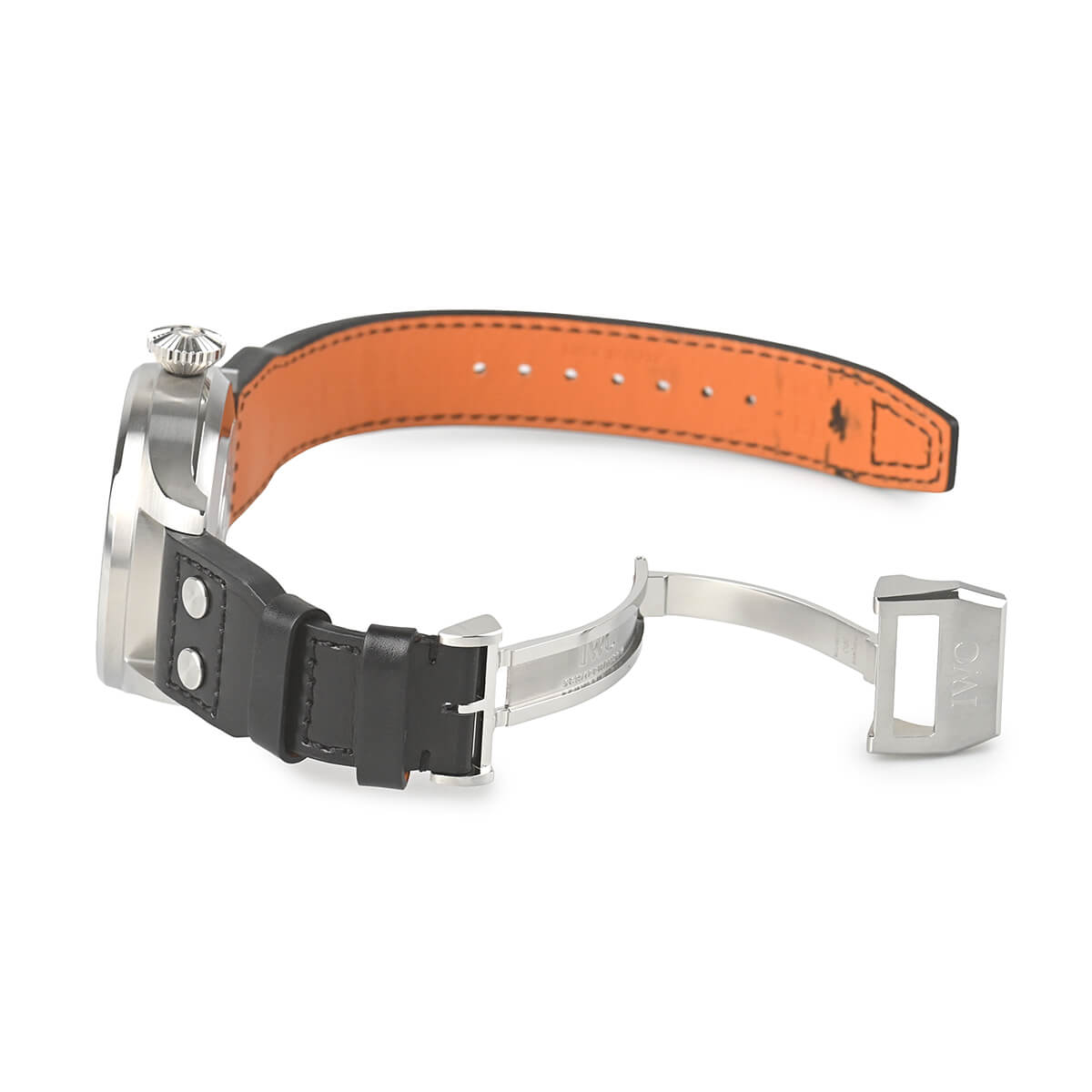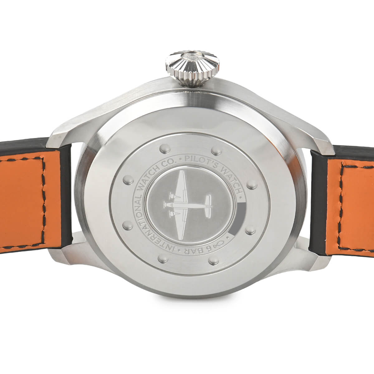自社製自動巻きキャリバー52110を搭載したケース径46.2mmの「ビッグパイロットウォッチ」。パワーリザーブインジケーターでもお分かりの通り、ツインバレル式で7日間ものロングパワーリザーブを誇ります。パイロットウォッチの伝統に基づき軟鉄製のインナーケースを採用し、耐磁性能が高いのも魅力の一つです。ケースバックには1930年代に活躍したドイツのユンカースJU52のエングレービングが施されています。