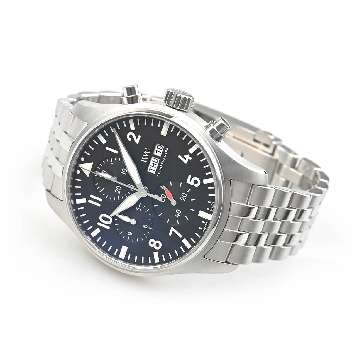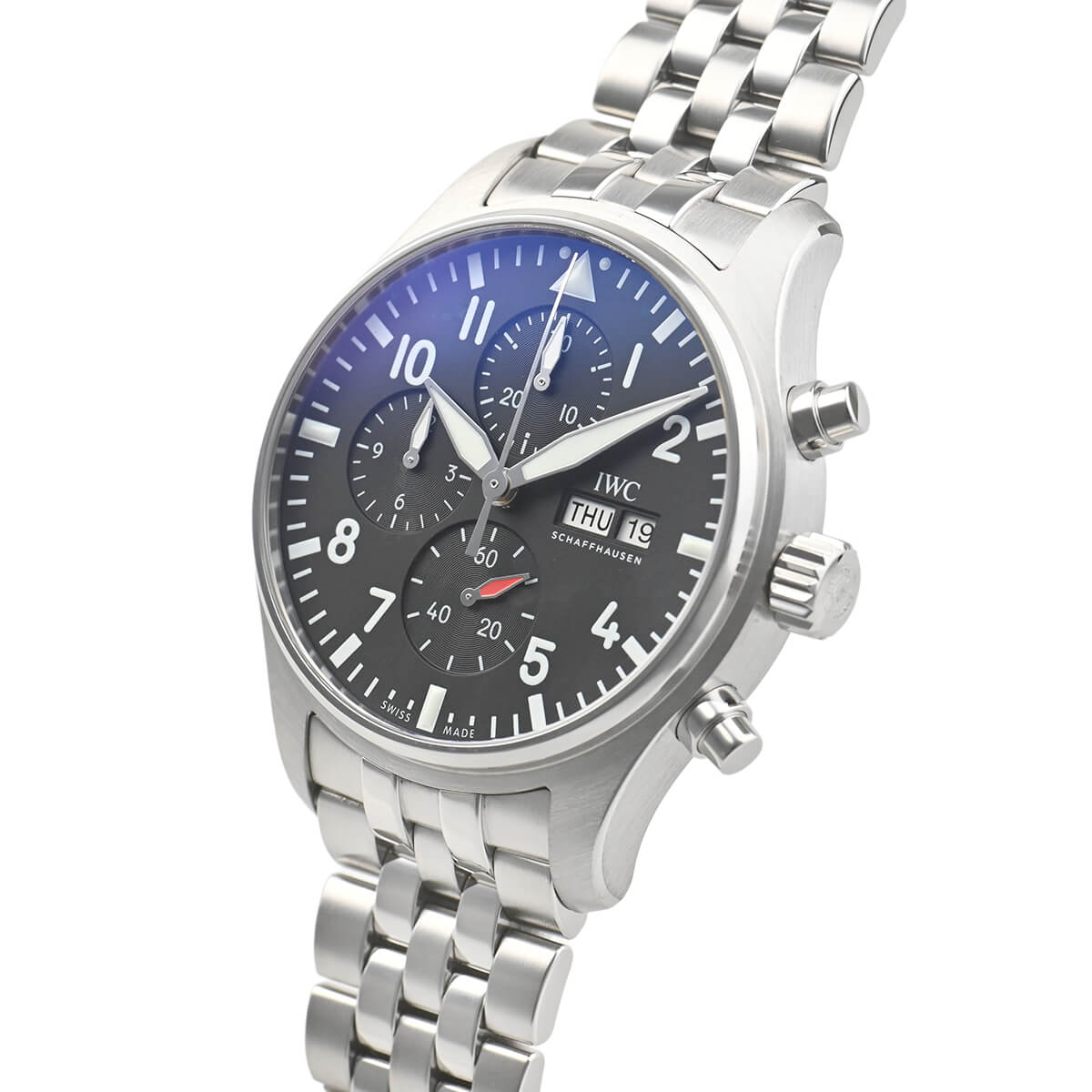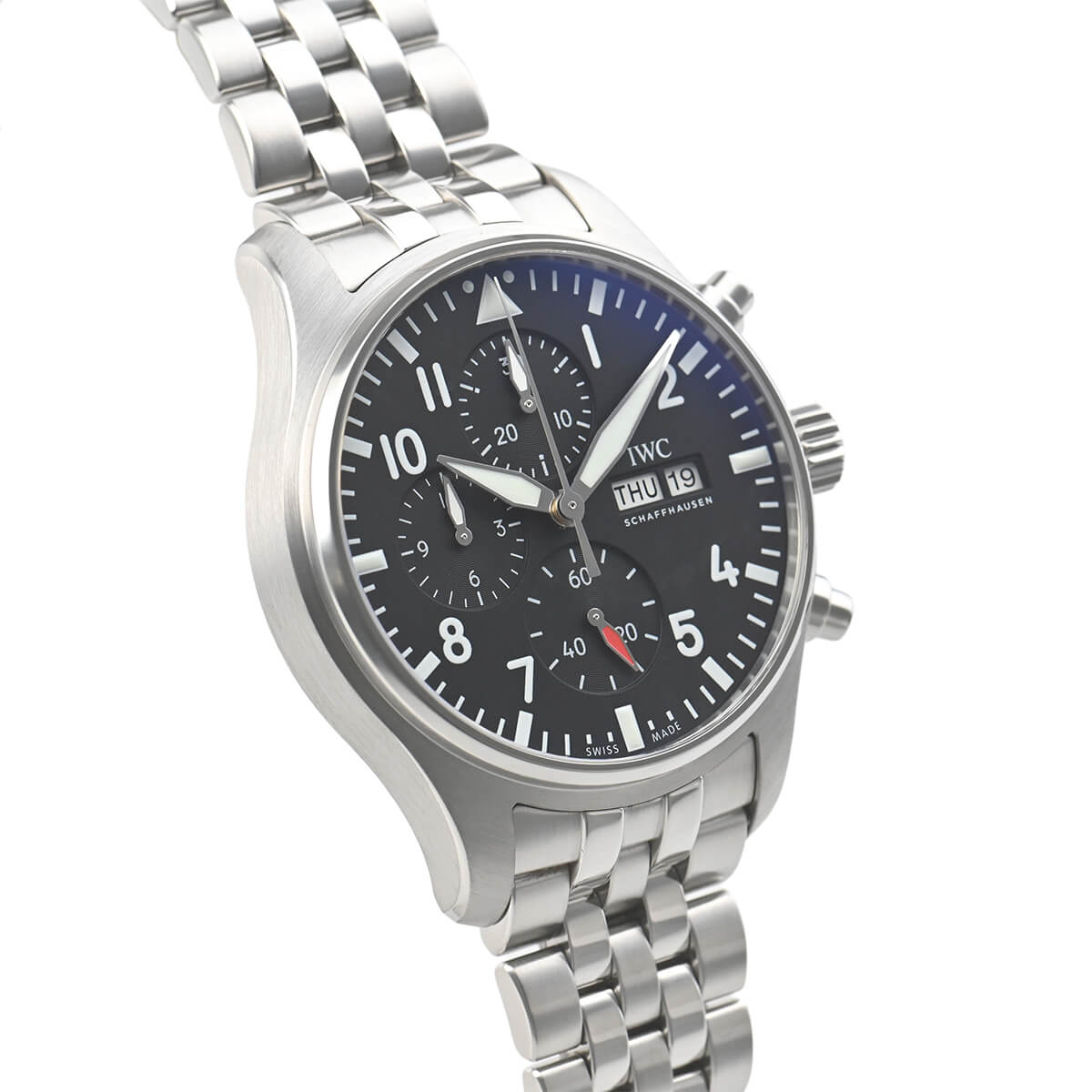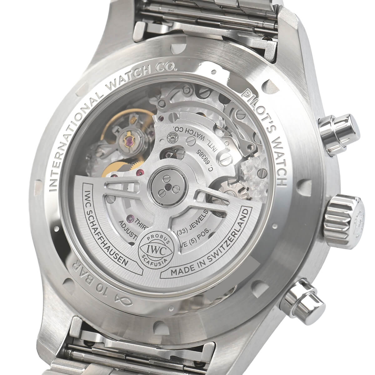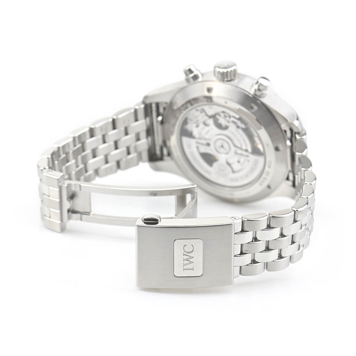 2022年新たに生まれ変わったパイロットウォッチクロノグラフ【IW378002】。新たに自社製キャリバー 69385を搭載し、ストップウォッチ機能と最長12時間までの計測が可能で、9時位置のカウンターに時単位、12時位置のカウンターに分単位の計測時間を表示。