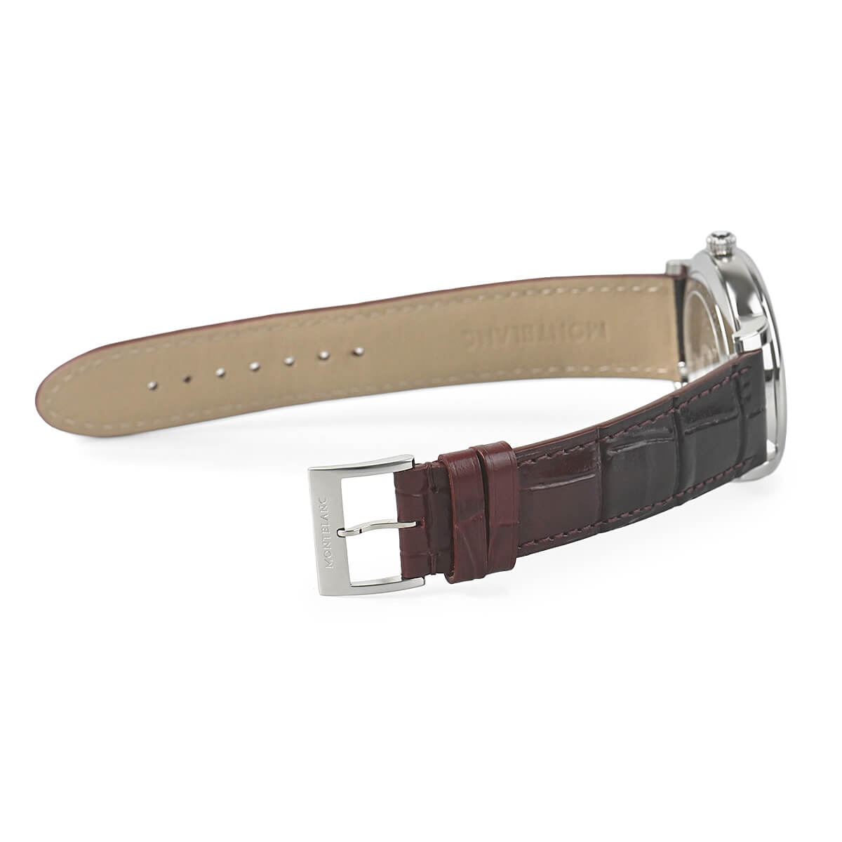 オニオン型のリューズに施された“ホワイトスター”がモンブランの時計であることを主張します。