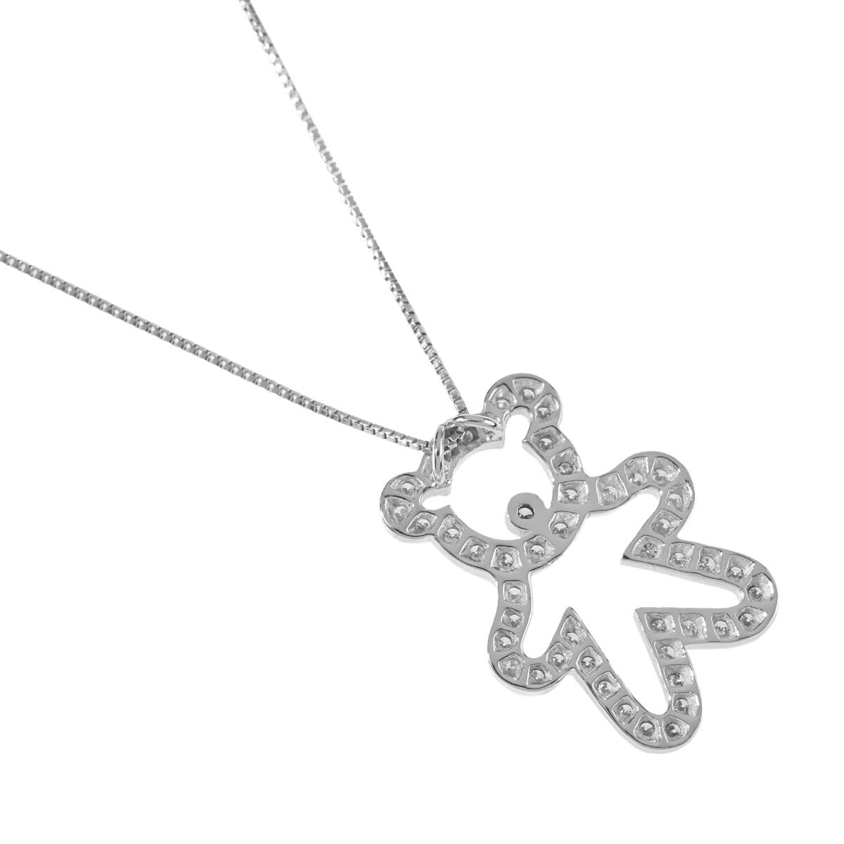 きらめくダイヤモンドラインで描かれた、オープンワークのクマが煌めくホワイトゴールド製ペンダント。大人可愛い遊び心にあふれた愛らしい個性を感じるペンダントが、スタイリングを印象的に飾ります。デイリーのカジュアルからワーキングスタイルまで、どんなスタイリングにもダイヤモンドのきらめきを添えてくれる、トレンド感あるダイヤモンドジュエリーです。