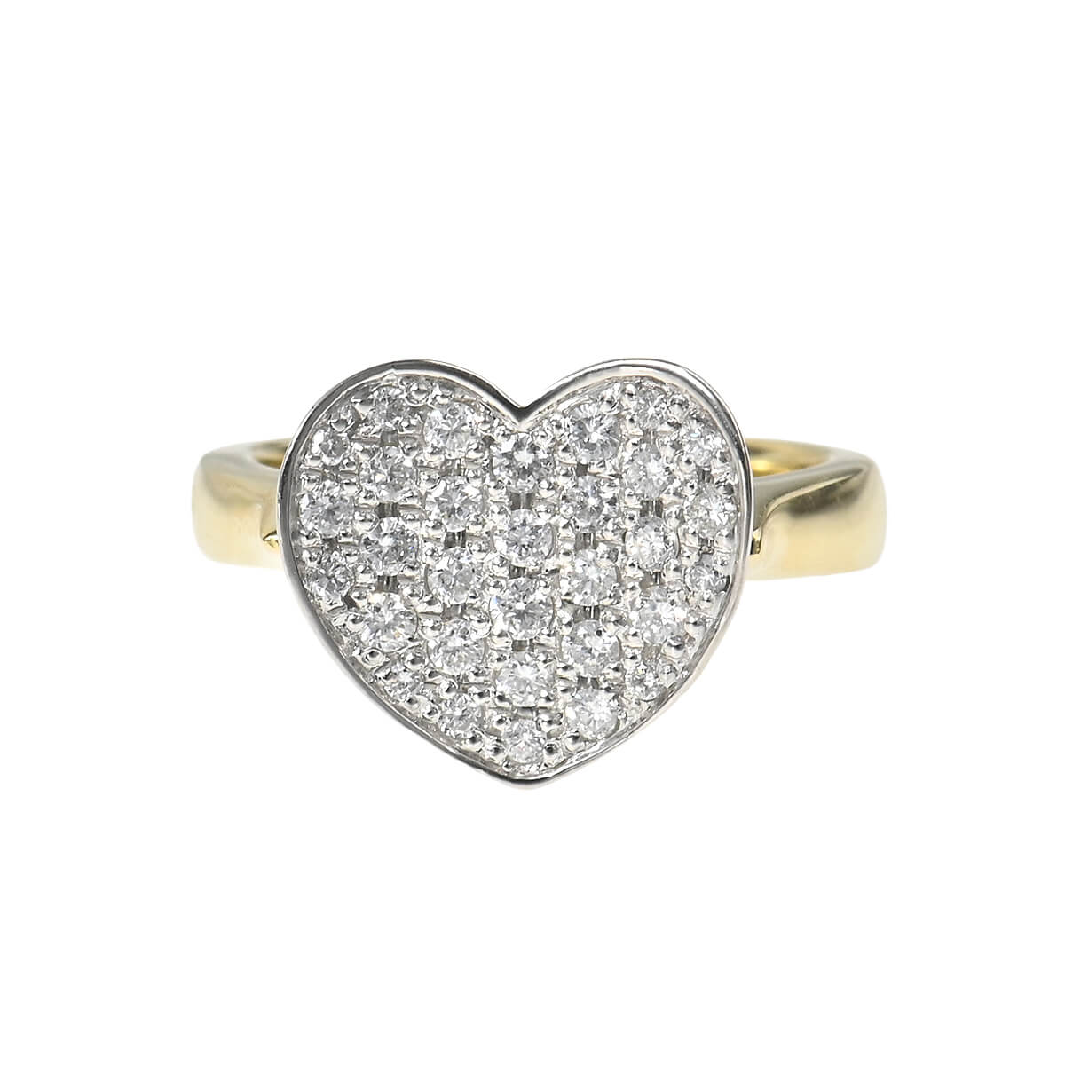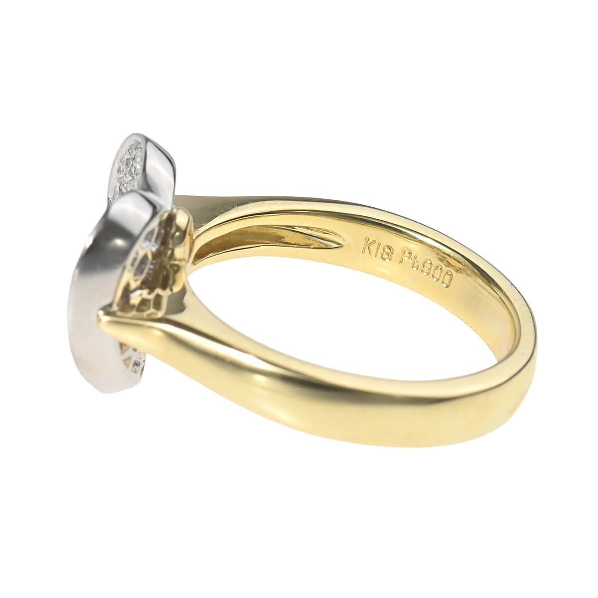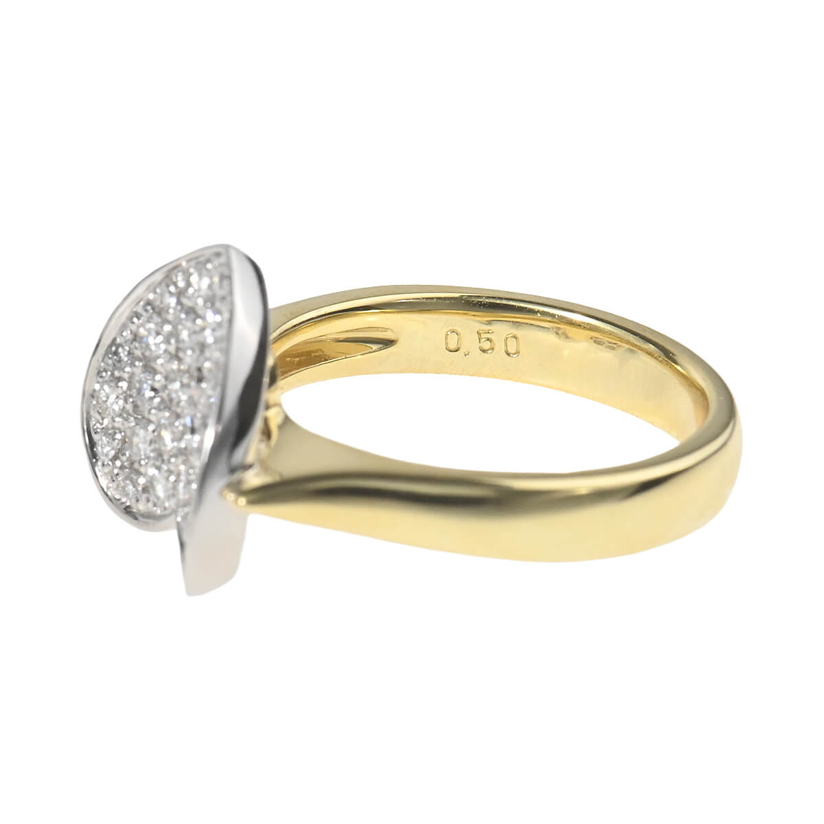 カーブがかったフォルムのハートプレートに、トータル0.50ctのダイヤモンドを敷き詰めたコンビネーションリングです。洗練されたフォルムが印象的な、大人の女性にも着けやすい甘くなりすぎないハートジュエリー。デイリーのスタイリングにエレガントで可憐な美しさを添える、上質なダイヤモンドジュエリーです。