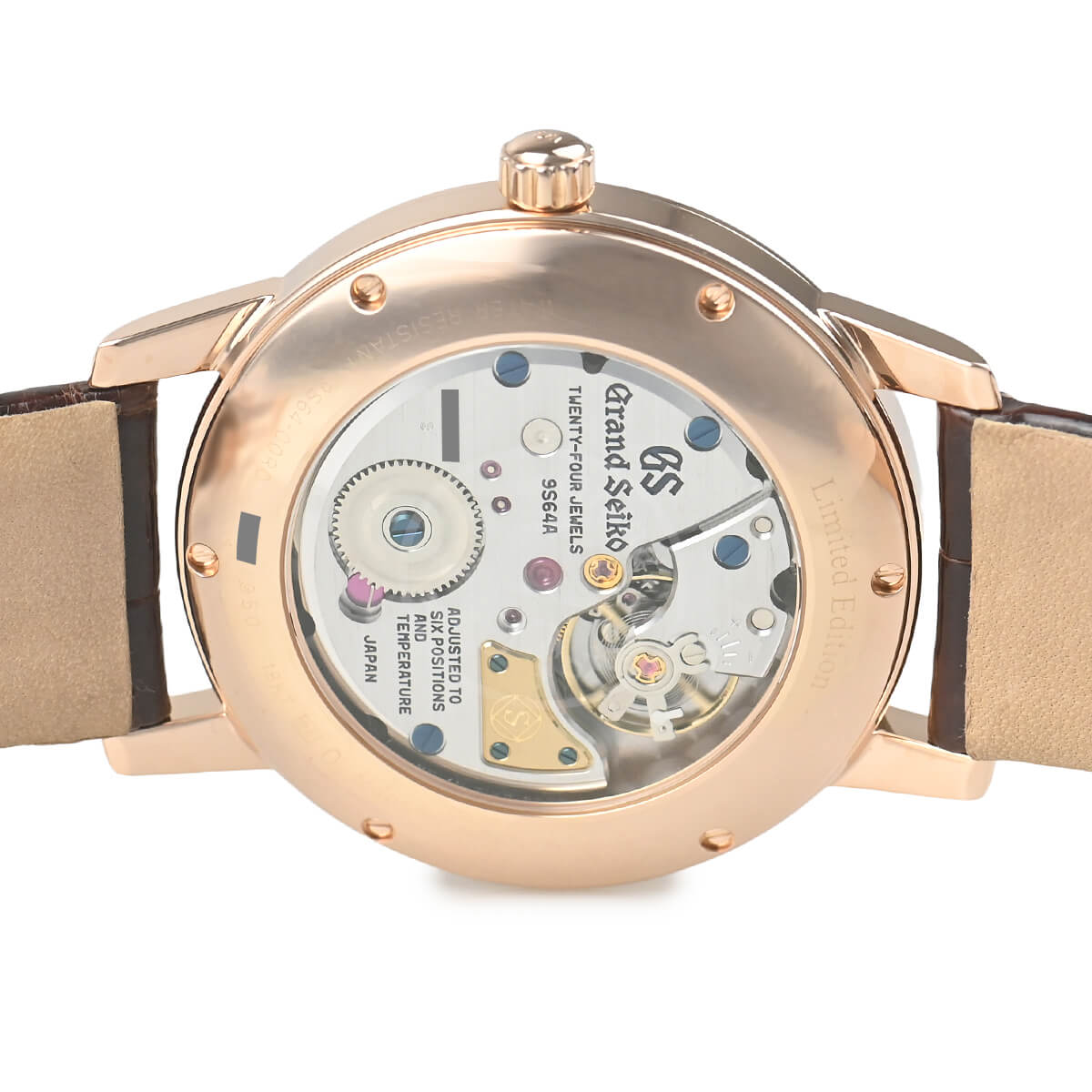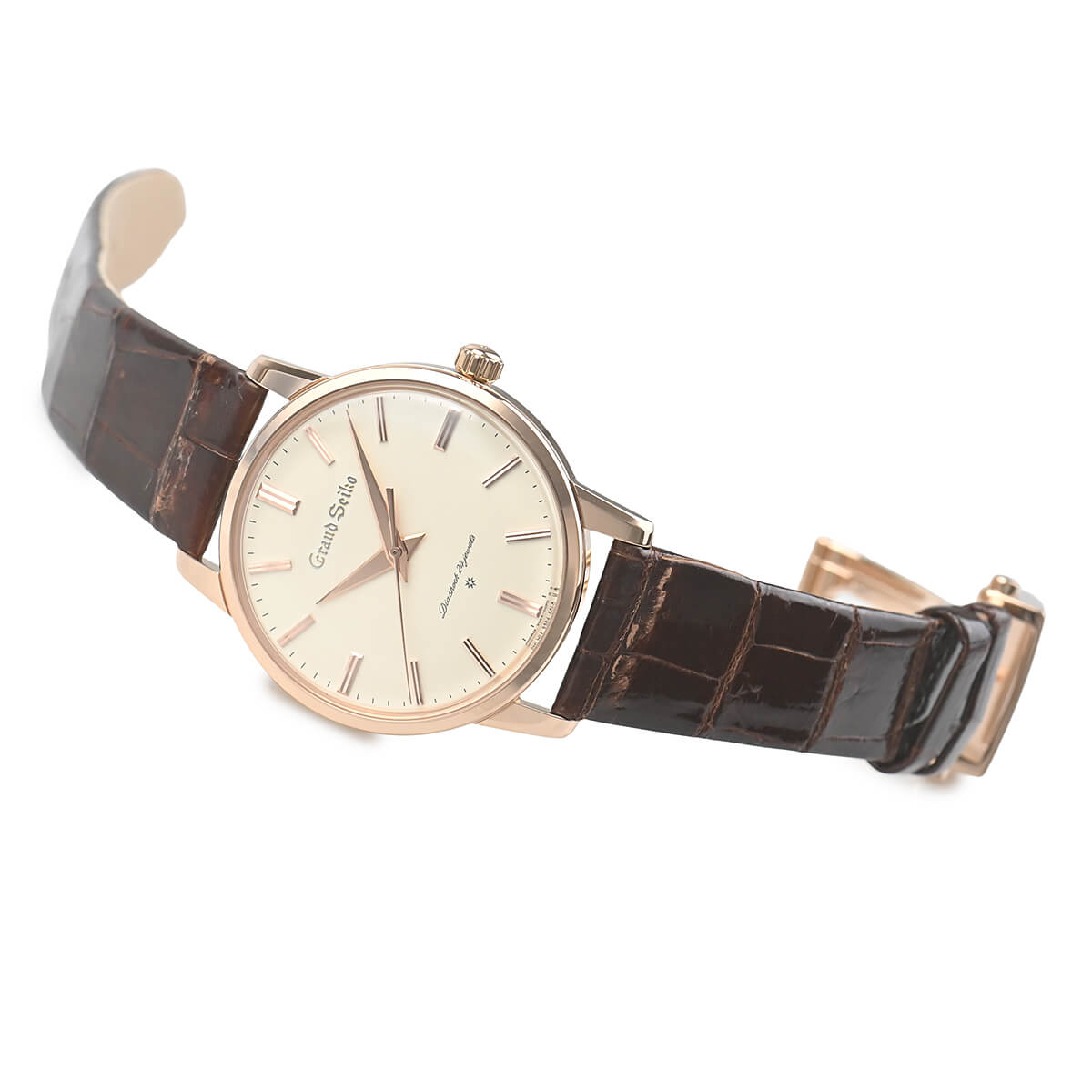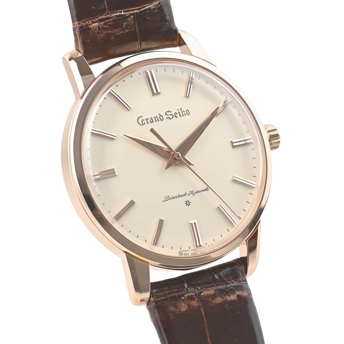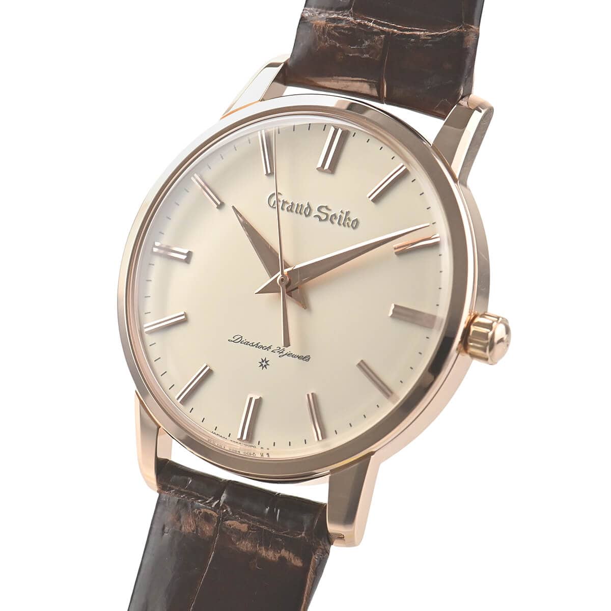 セイコーの創業140周年を記念して発売された「SBGW260」。2021年に350本限定で販売されました。初代グランドセイコーのデザインを復刻しピンクゴールドケースで製作されています。