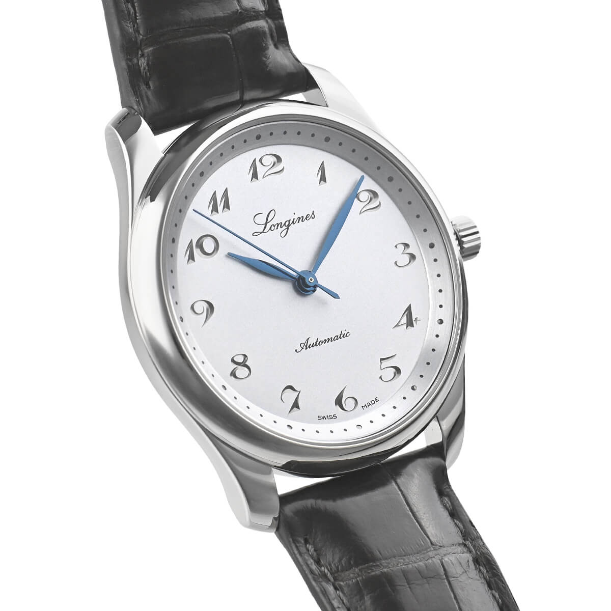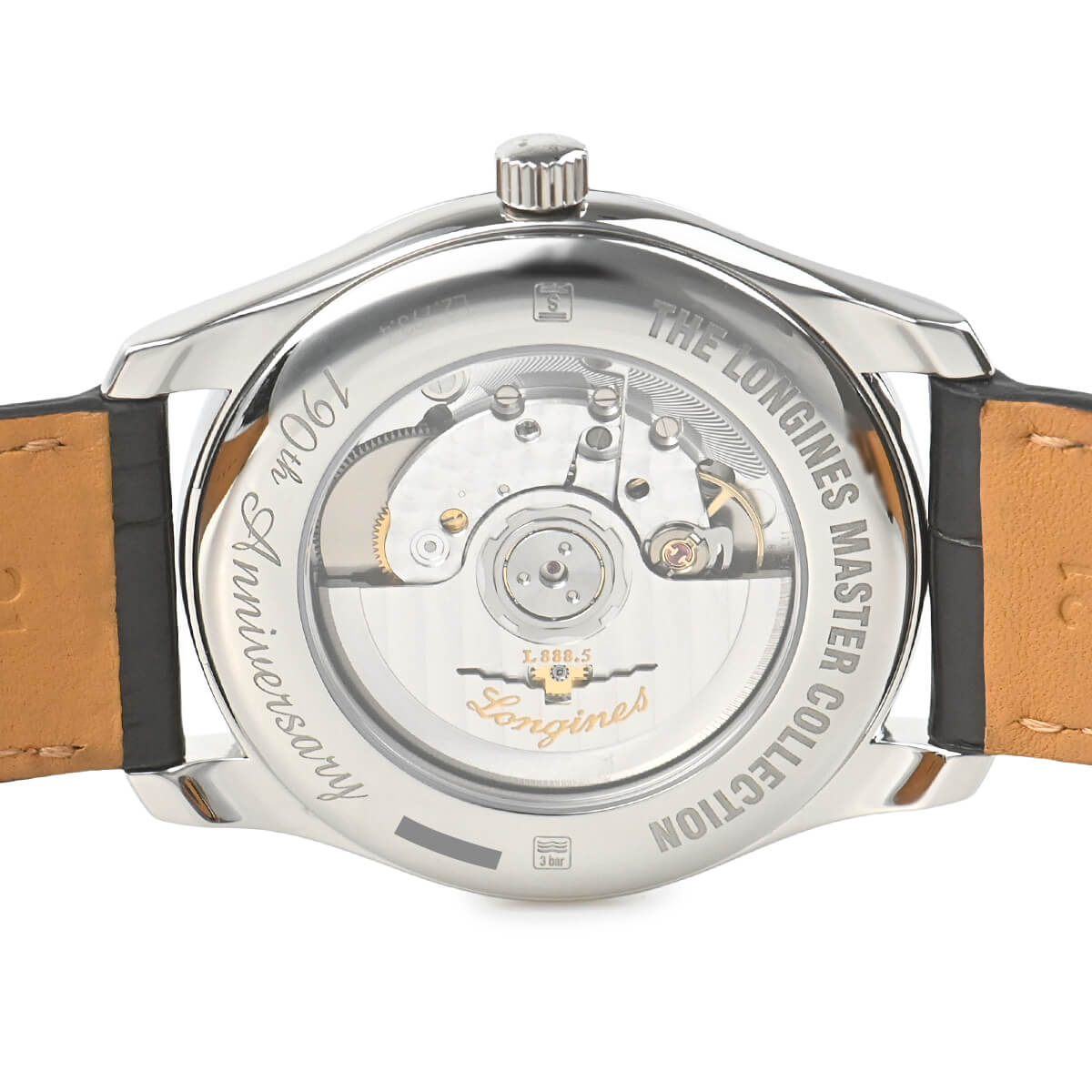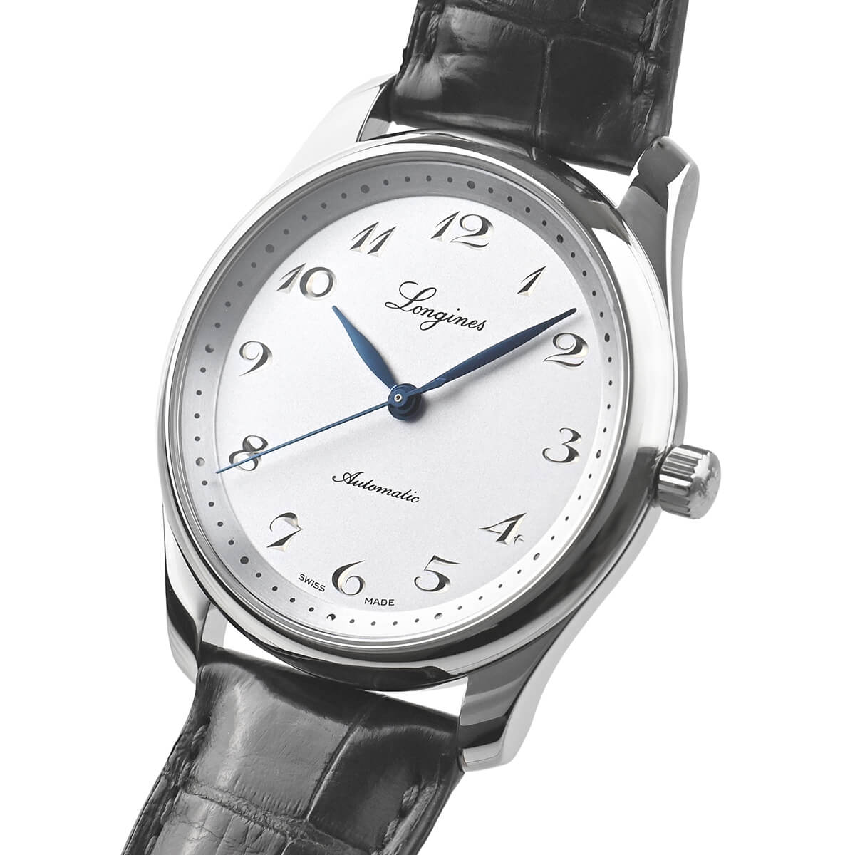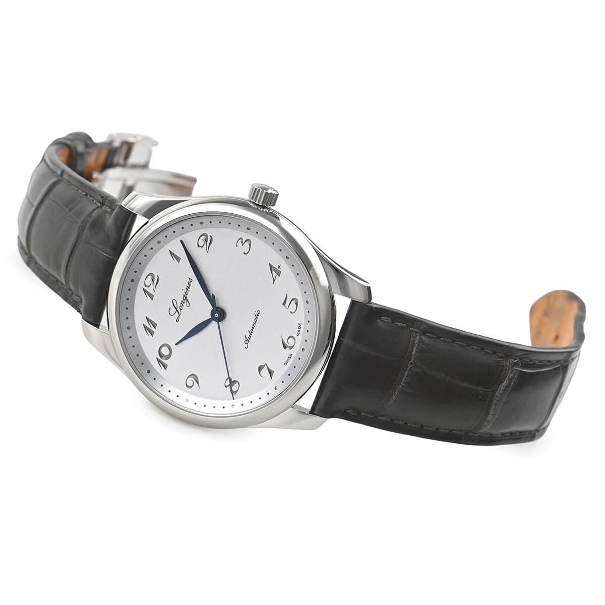 名門ロンジンらしい落ち着いた佇まいが好ましい「マスターコレクション」。2005年の発表以来、ロンジンの栄光の歴史を感じさせるクラシカルなコレクションとして人気を博しています。今回入荷のこちらは、ロンジン創立190周年記念モデル。サンドブラスト仕上げが施されたシルバーのダイヤルは、繊細に彫刻されたアラビア数字が特徴的です。