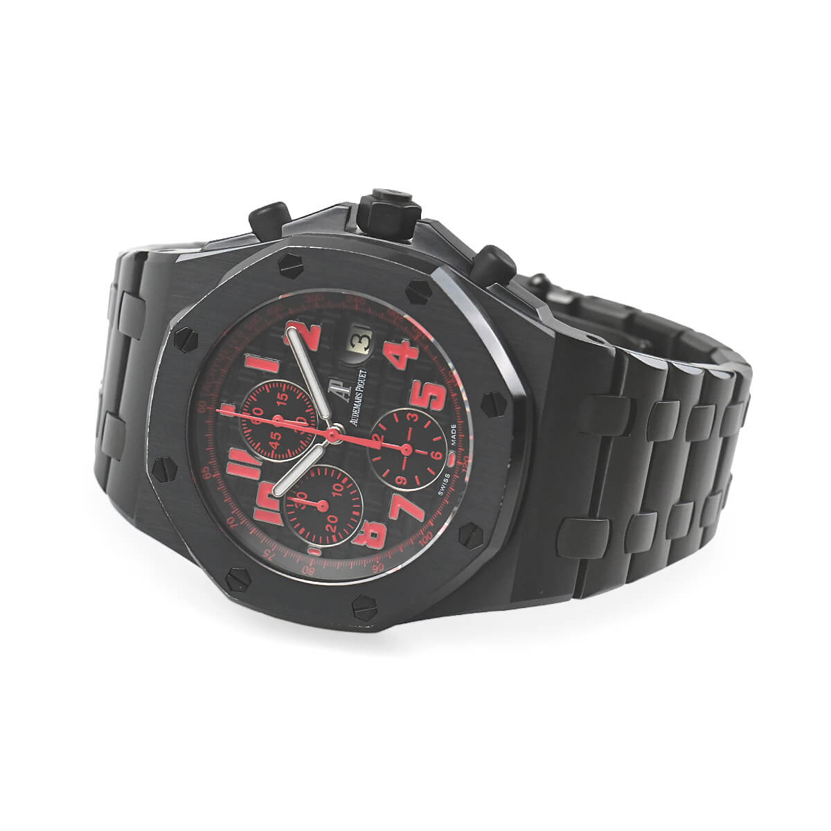 アメリカで最もエキサイティングな都市のひとつ「ラスベガス」。このロイヤルオークオフショアの限定モデルは、そのラスベガスにインスパイアを受けデザインされました。ワイルドな夢がかなう町というイメージから黒と赤を強調したモデルとなっています。