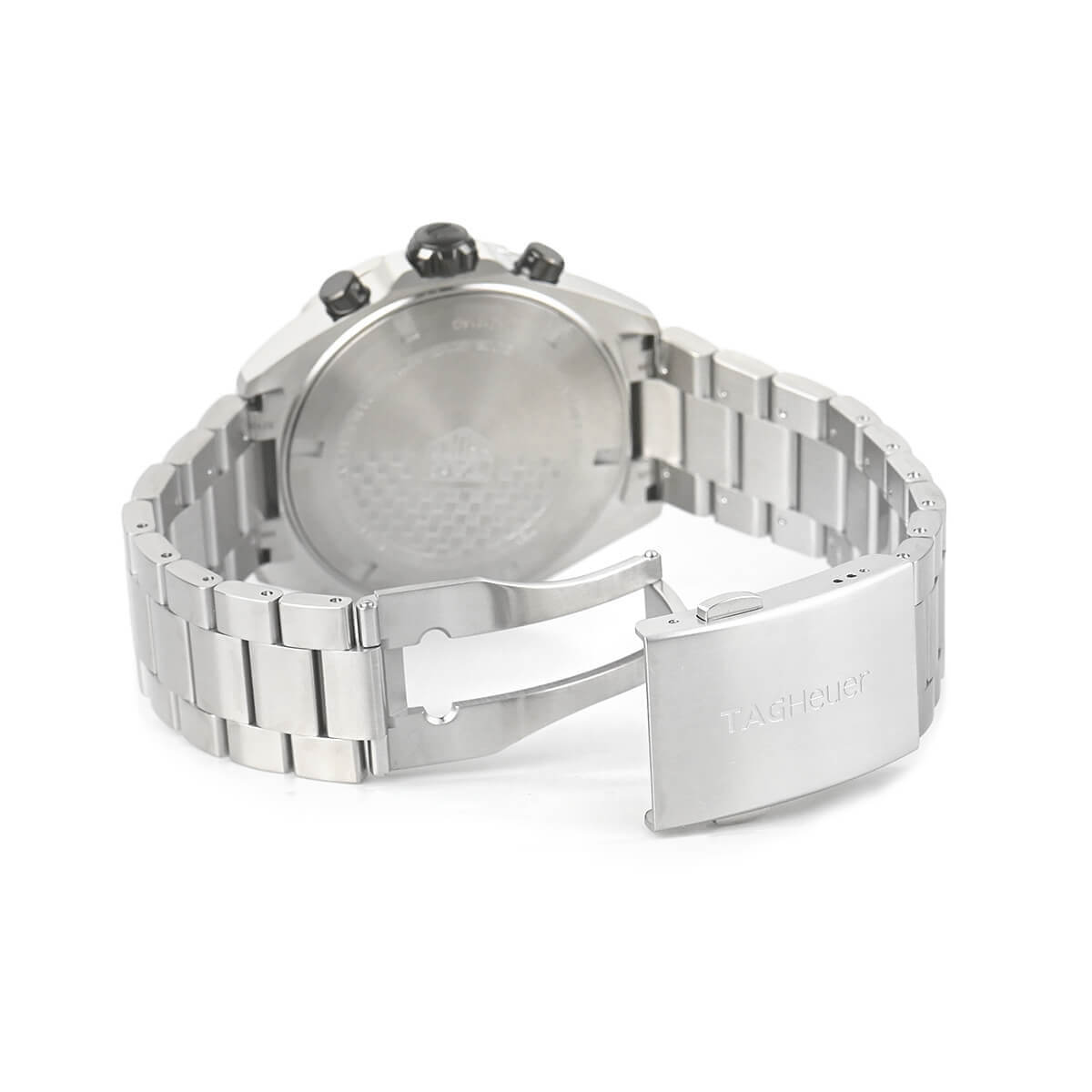 タキメーターベゼルには耐久性に優れたブラックセラミックを採用し、防水性能も200m確保されておりますので日常使いにも安心なクロノグラフです。