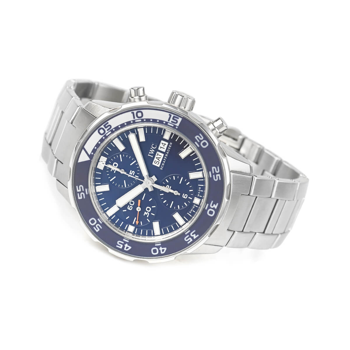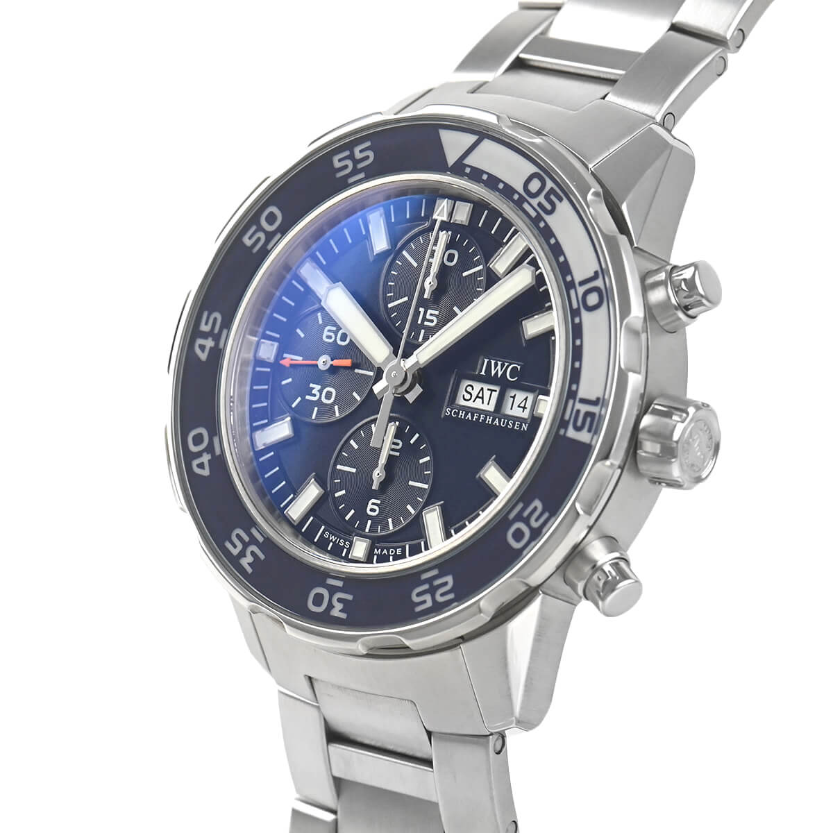 IWCらしい質実剛健な作りが好ましい「アクアタイマークロノ」。マイナーチェンジによりベゼルの注し色がオレンジからホワイトになりました。