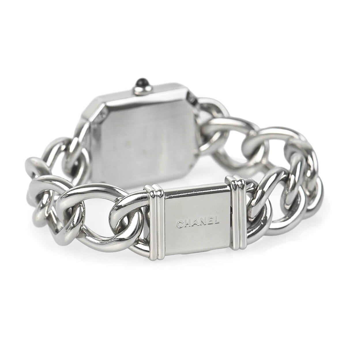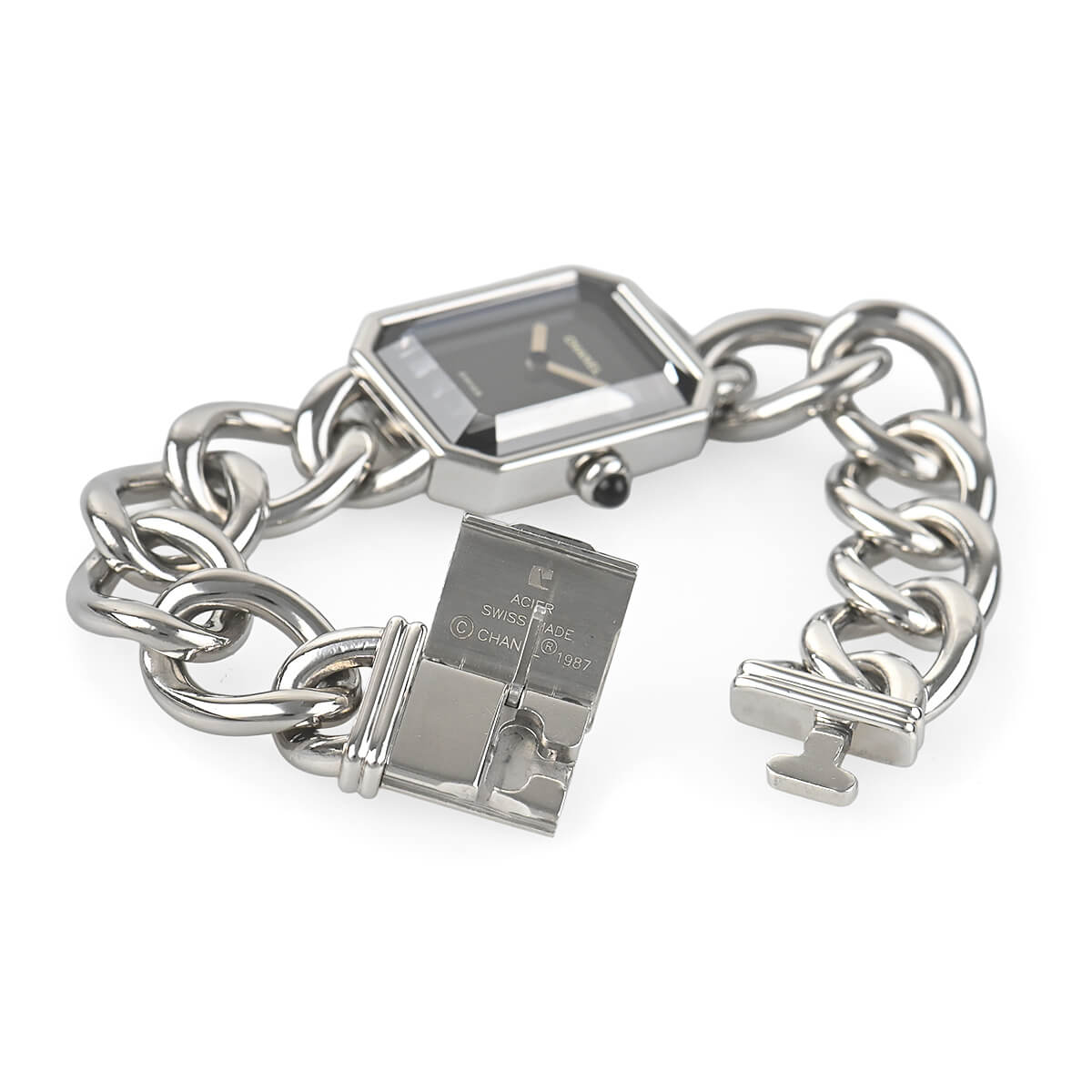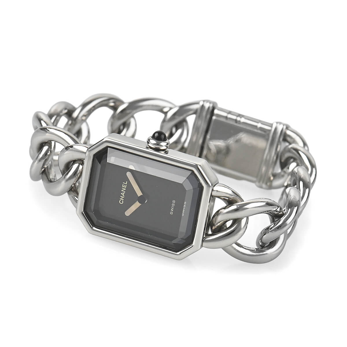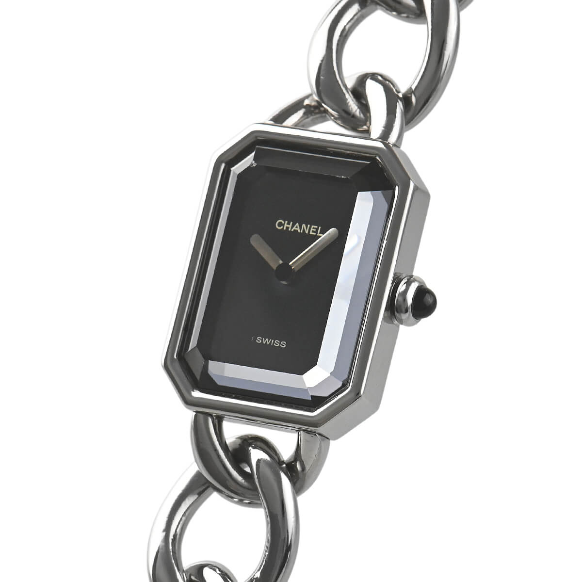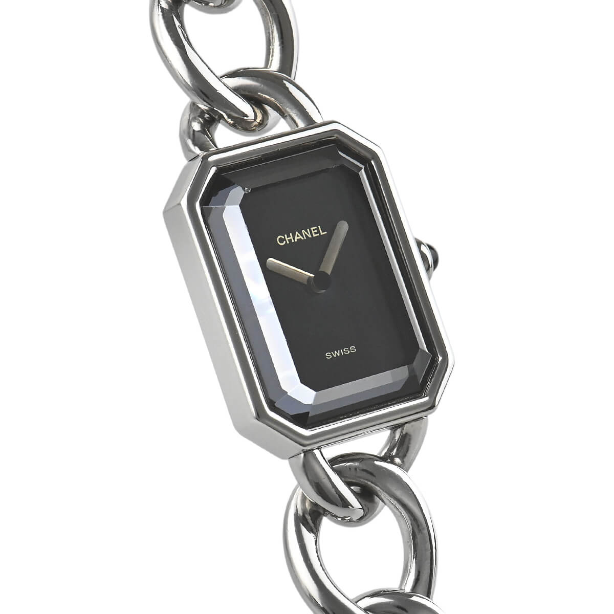 シャネルの永遠の定番モデル「プルミエール」。オートクチュールの世界においてアトリエ主任の女性を意味するこの時計は、シャネルがブティックを構えるヴァンドーム広場の形とシャネルのアイコンであるシャネルN°5のボトルストッパーからインスパイアーを受けデザインされました。