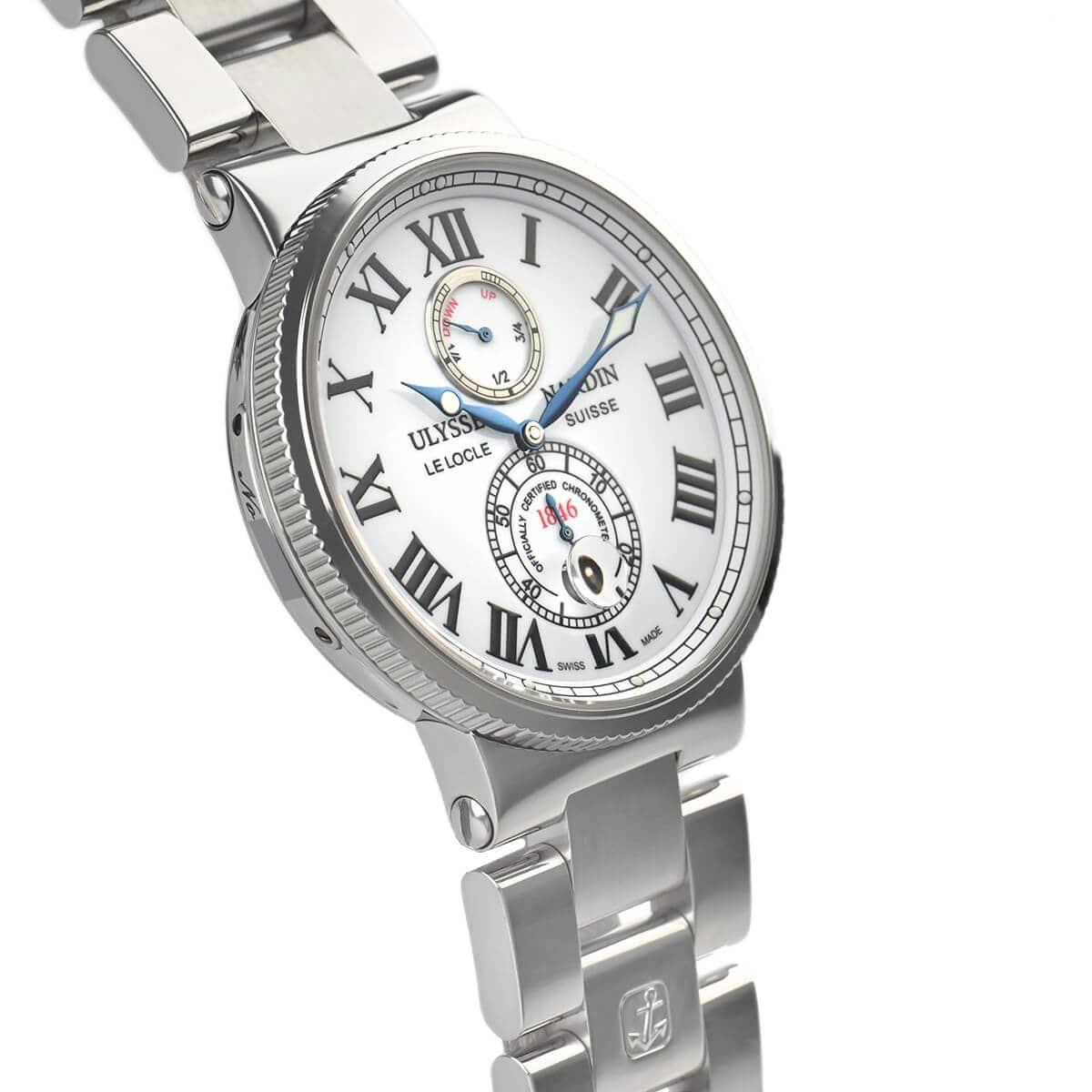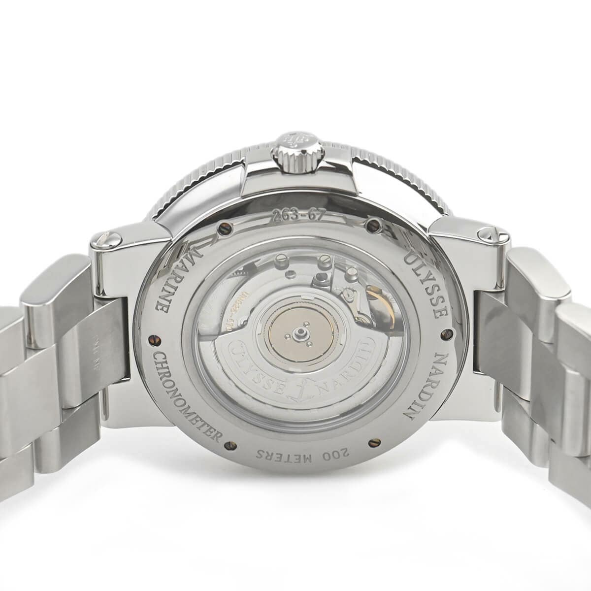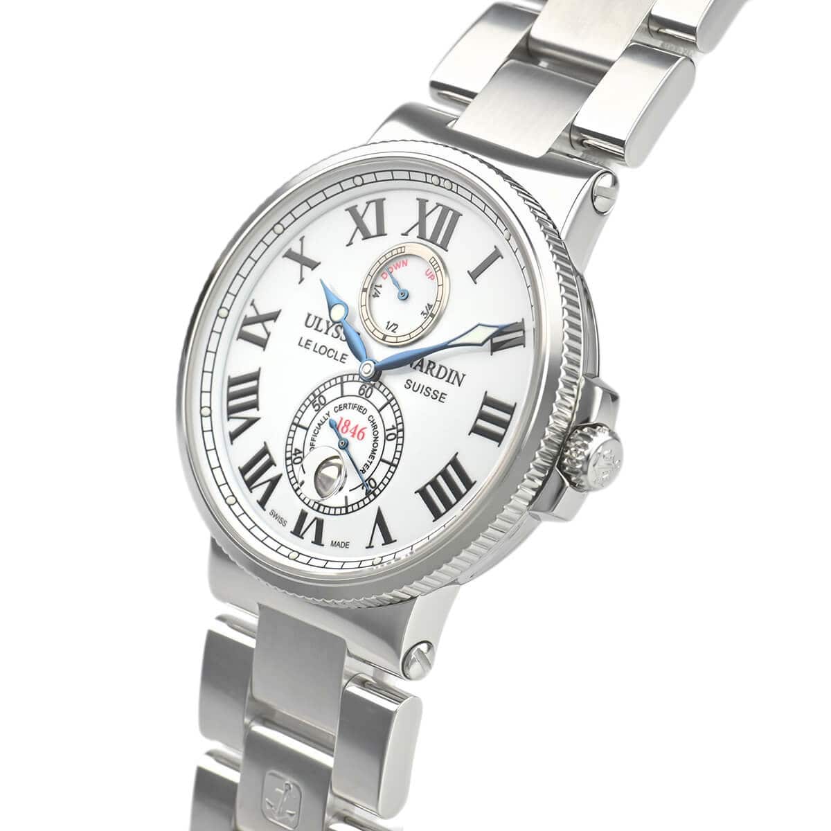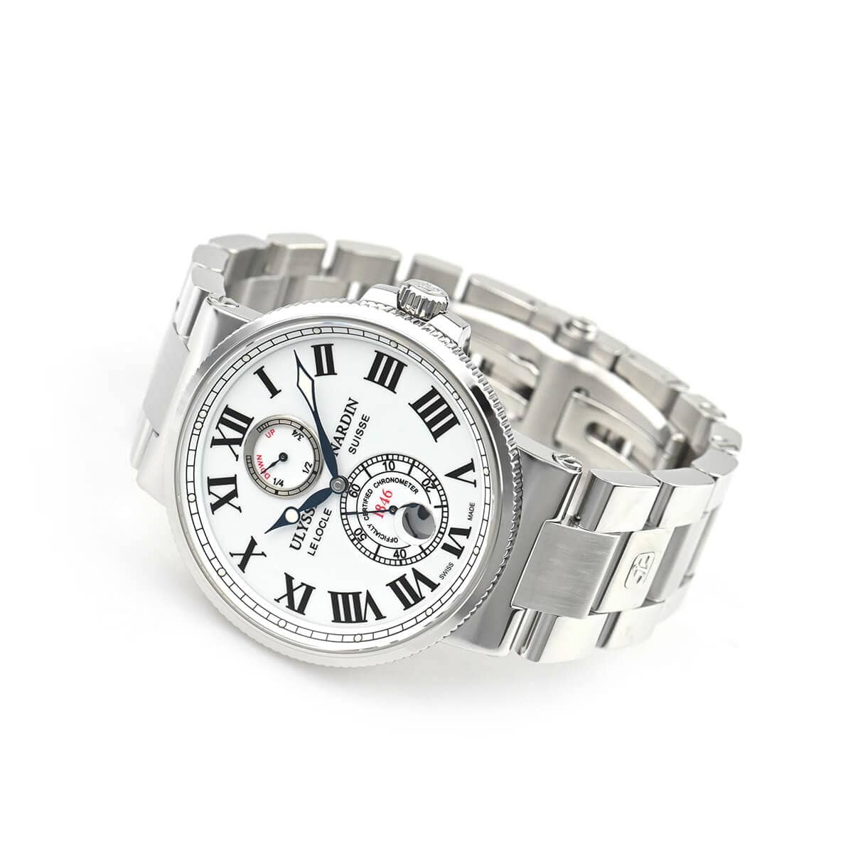 こちらのモデルは、マキシマリーンクロノメーターとしては大振りな43mm径のモデル。