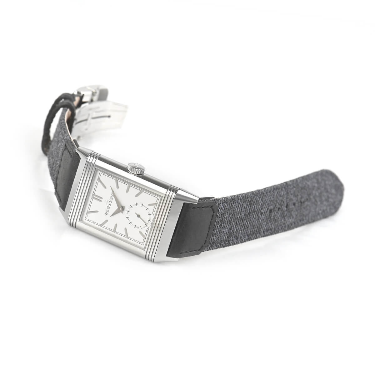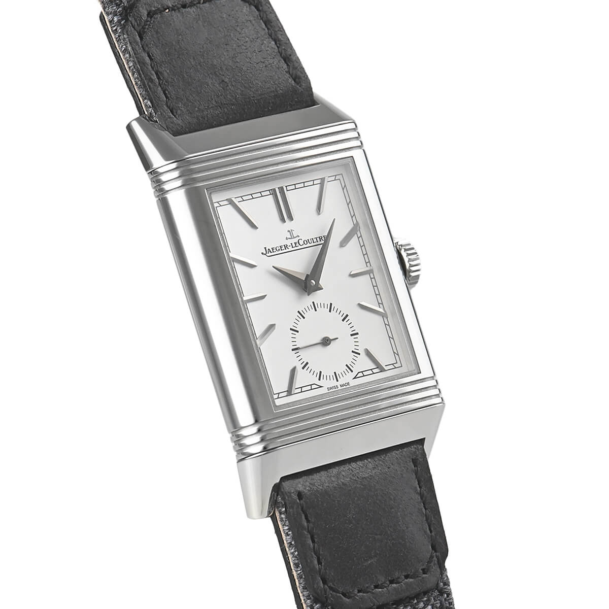 1930年代に誕生したレベルソはポロ競技中にガラスが割れてしまうのを防ぐためにケースを反転させ使用された時計です。こちらの【レベルソトリビュート スモールセコンド】は、メンズモデルとなっており、45.6×27.4mmのケースに自社製手巻きムーブメントのキャリバー822/2を搭載します。