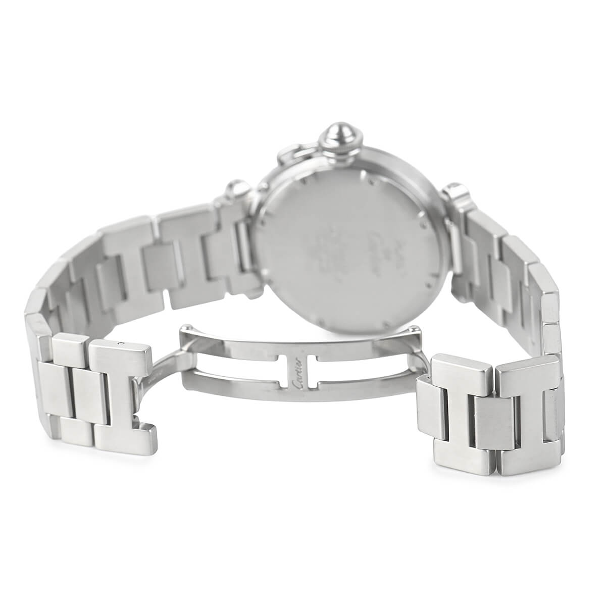 ケース径35mmのユニセックスモデルとして、特に女性からの支持が厚い「パシャC」。ケース径27mmの「ミスパシャ」が発表された後でも常に高い人気を誇っています。当店にてメンテナンス済み。