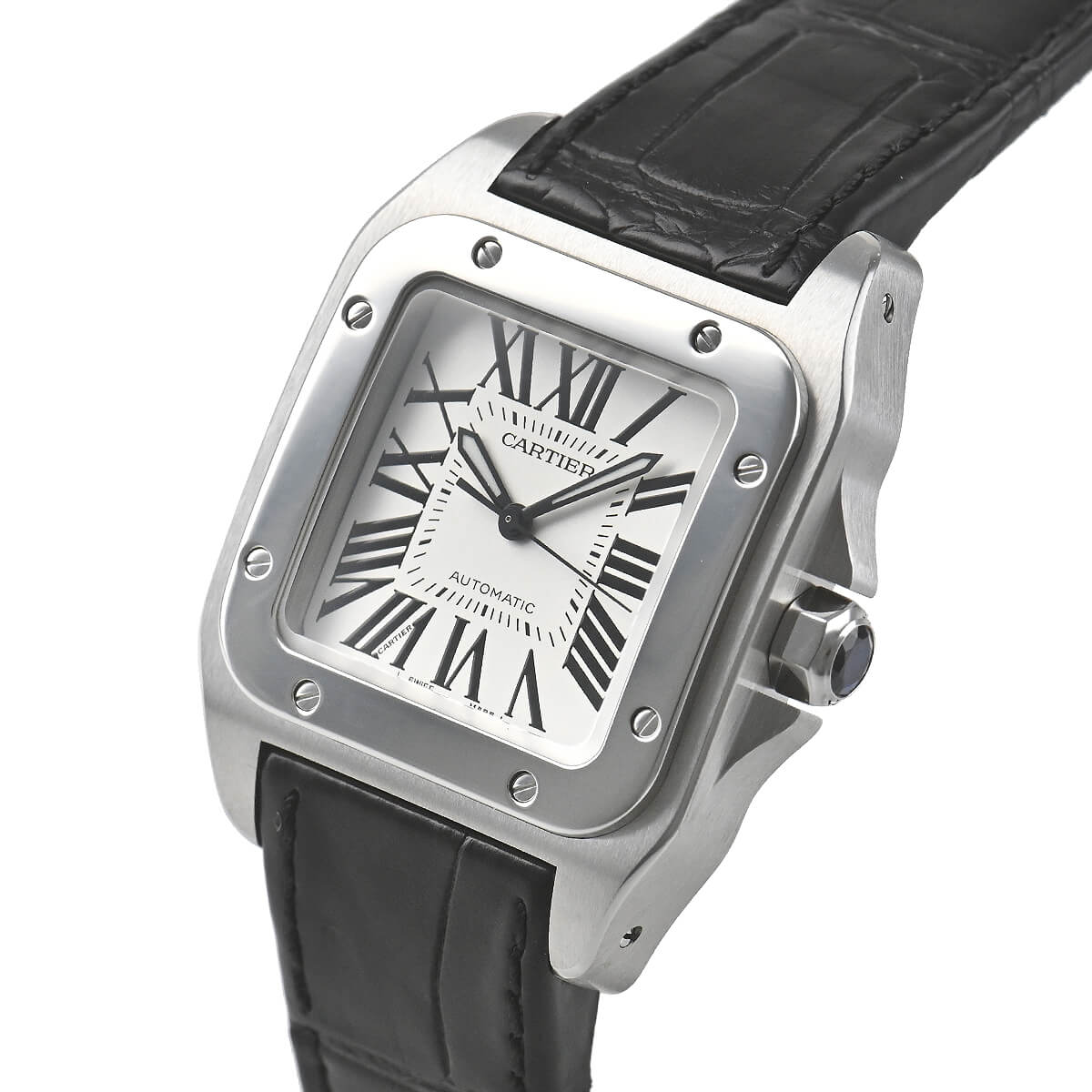 100年という永きに渡り歴史を刻んできたサントスシリーズ。航空機の機体のようにビスをベゼルに使い、タフなデザインと美しさを兼ね備えております。