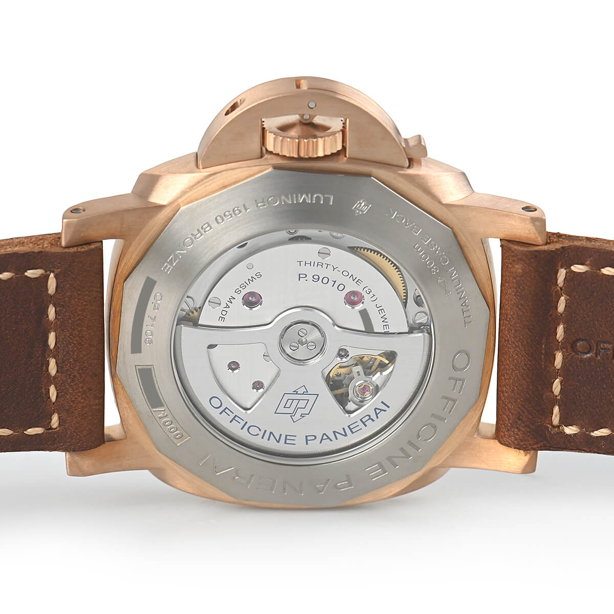 銅と錫の合金であるブロンズは海水や化学物質に対して耐性に優れているだけでなく、特徴として時間の経過と共に表面に独特な「焼け」が出るのでその変わりゆくケースの趣きをお楽しみ頂くことが出来ます。