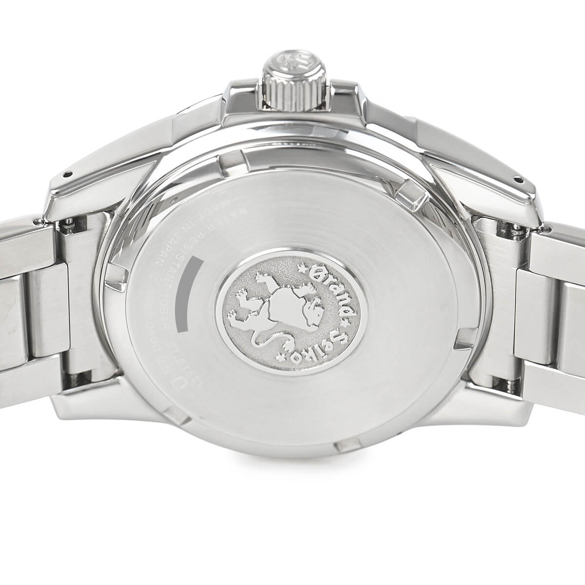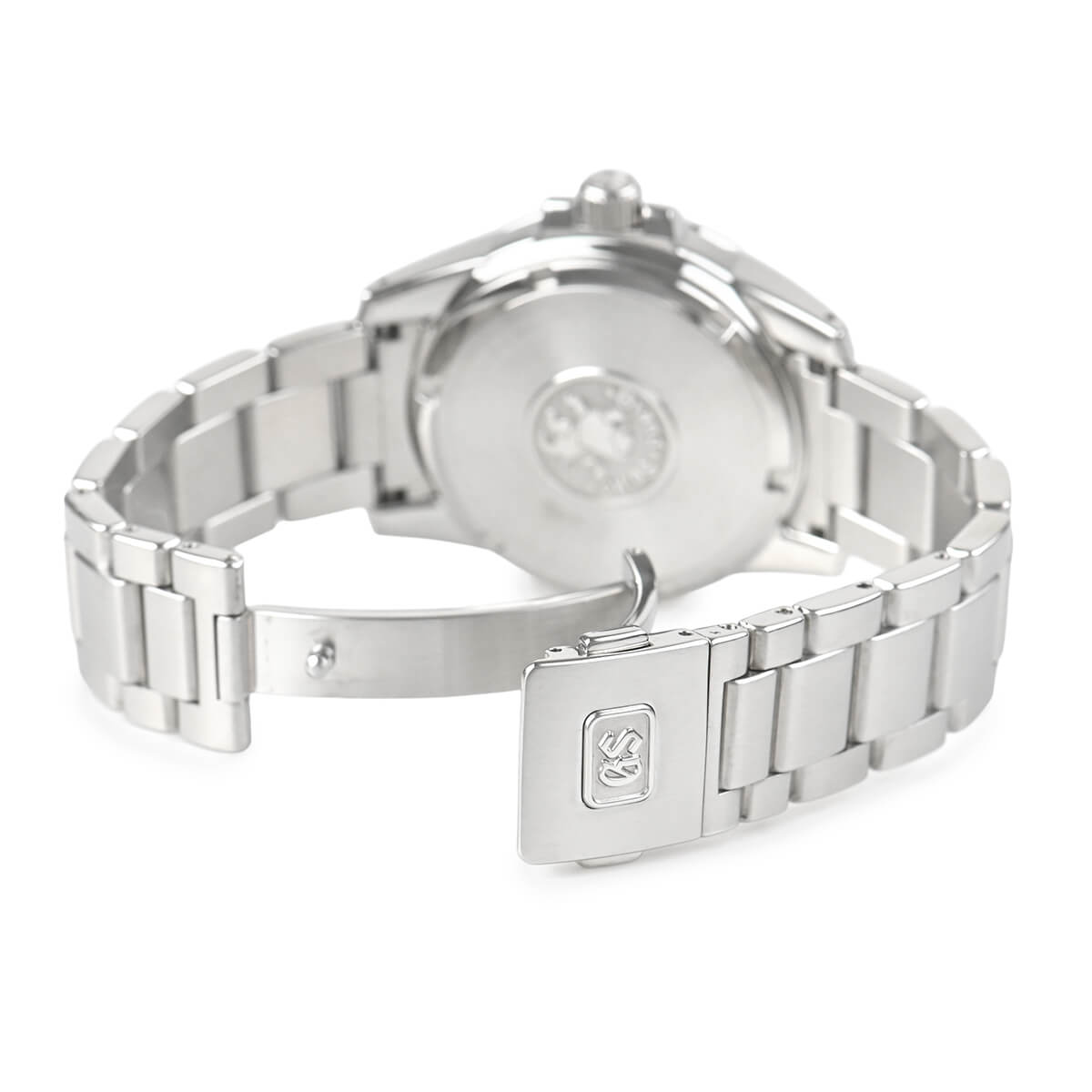 ゼンマイのほどける力を利用しながら、水晶振動子によって精度を制御するスプリングドライブ。世界でセイコーだけが採用する、ハイブリッドな駆動方式です。このモデルの特徴である、流れるように動くスイープの秒針には、セイコーの機械式へのこだわりが感じられます。文字盤の8時位置のパワーリザーブ計は最大3日間のリザーブ量を表示します。これは週末の土日を休んでも、月曜日に時刻合わせをしないですむというコンセプトを元に開発されたためです。