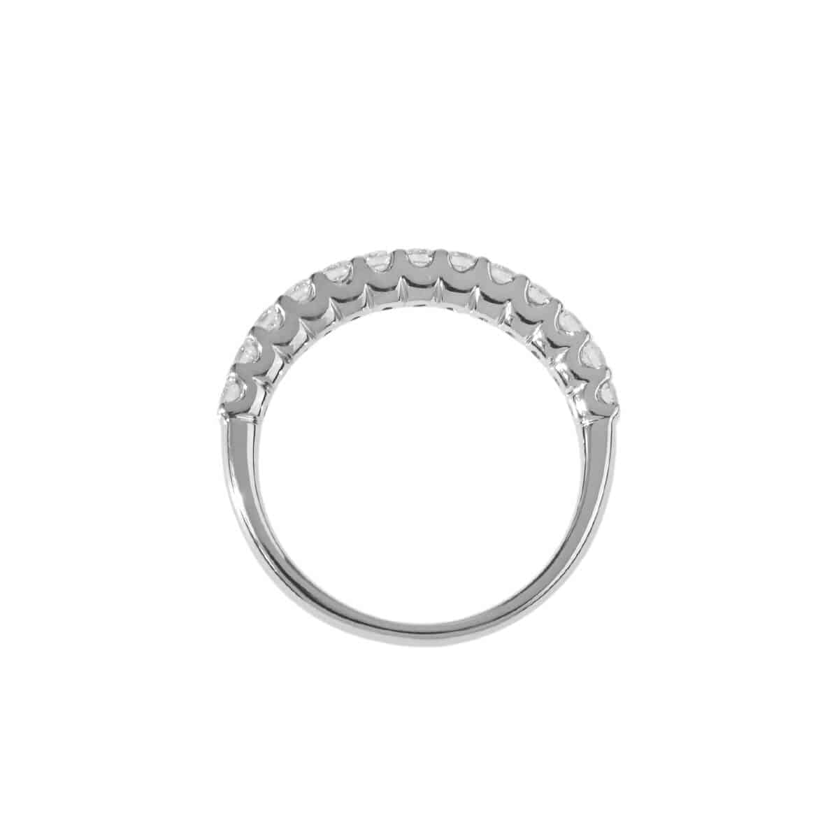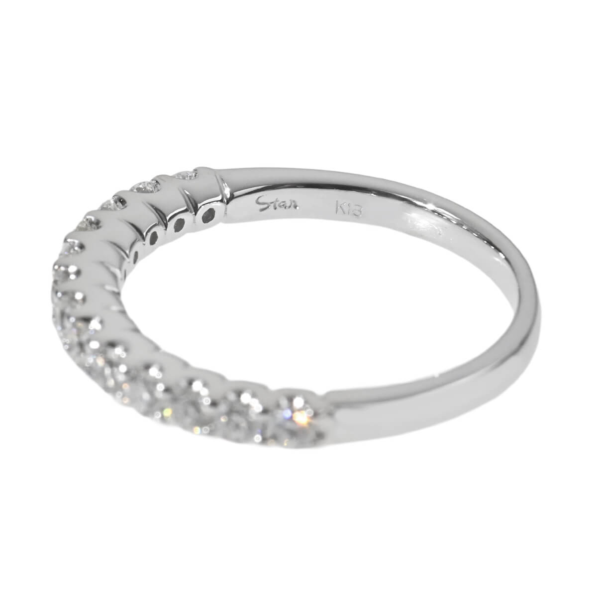 1946年に横浜で創業以来、時代が動き、トレンドがめまぐるしく変わっても、常に美しくありたいと願う人に寄り添い、笑顔を届け、時を超えて愛されてきたドメスティックブランド『STAR JEWELRY(スタージュエリー)』。創業当時、日本人女性には馴染みのなかったピアスを国内で初めて本格的に扱っていたことで人気を博したスタージュエリーは、現在でも洗練された日常のモードとスタイリッシュなコーディネートを提案し続けています。華奢なプロングでシェアセッティングされたトータル0.40ctのダイヤモンドが七色の輝きで指先を彩り、ダイヤモンドの美しさを際立たせている、ホワイトゴールド製ハーフエタニティリング。煌めくダイヤモンドラインが美しく、素肌にすっと馴染むダイヤモンドリングはデイリーからワーキングスタイルまで、いつでも身に着けていられそう。素材やデザインの異なるリングを数本レイヤードしたり、自分らしいルックを楽しめる、シンプルで洗練されたオーセンティックなデザインのダイヤモンドジュエリーです。