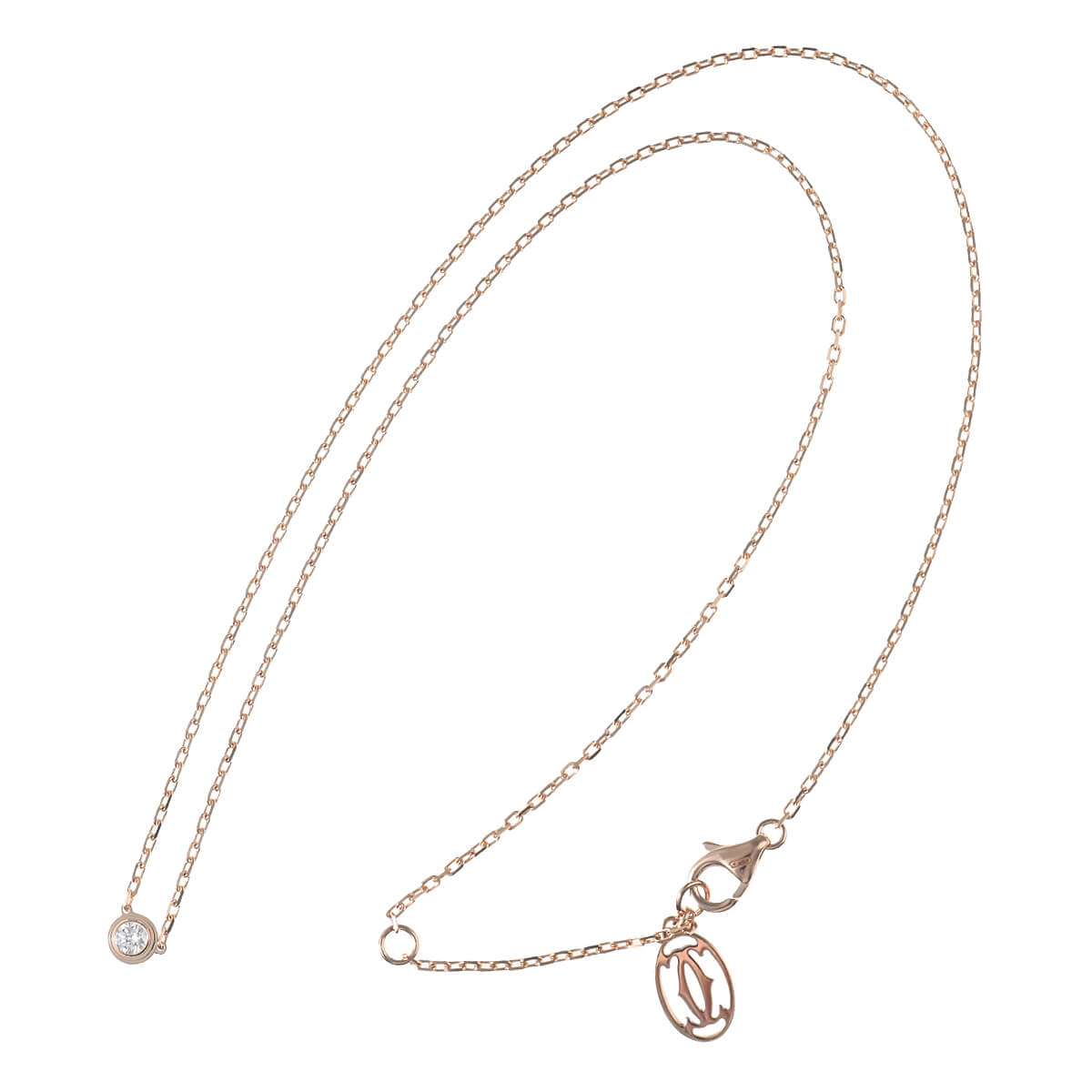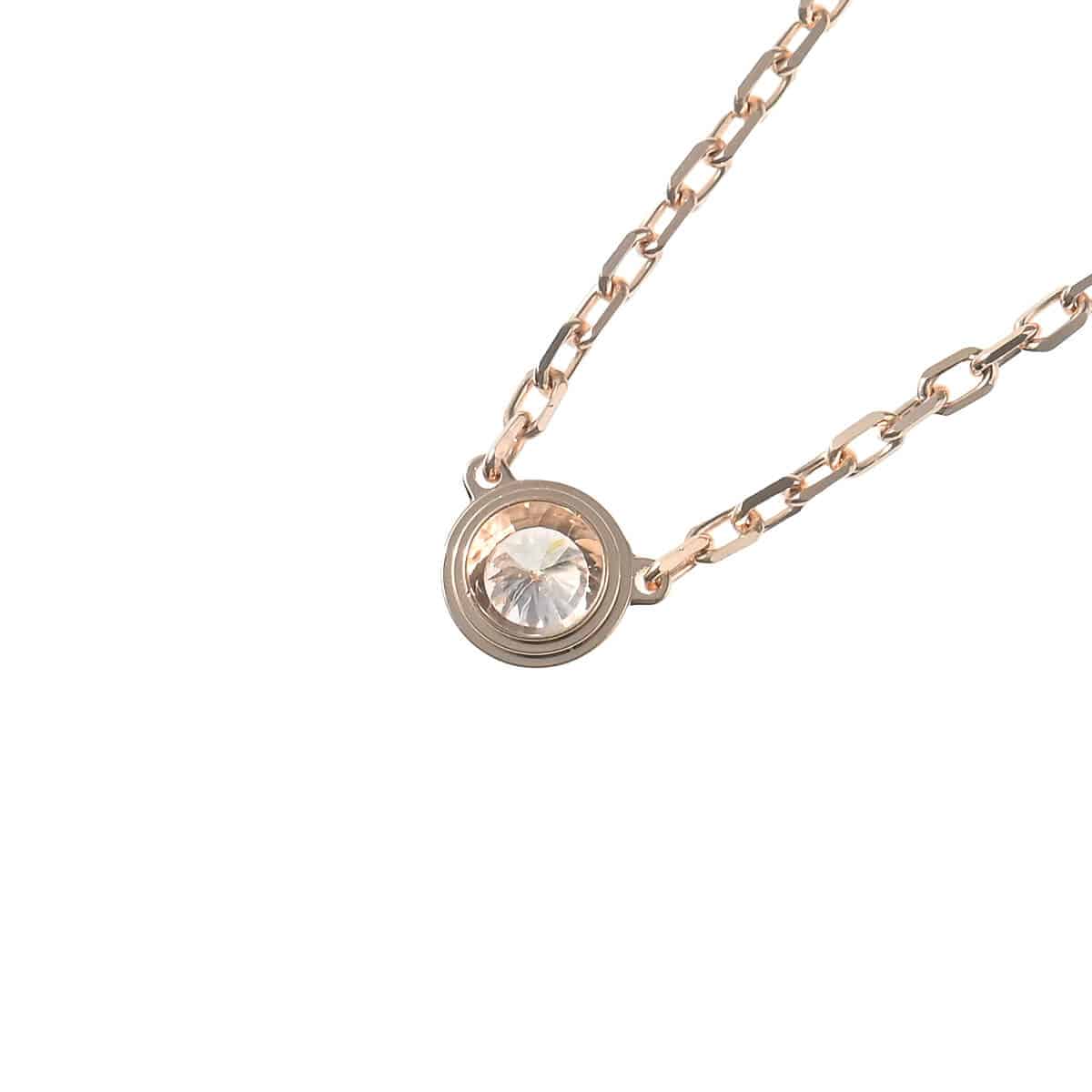 英国王エドワード7世に“Jeweller of kings,king of jewellers (宝石商の王であるがゆえに、王の宝石商)”とまで評価された、世界5大ジュエラーのひとつでもある、世界でもっとも有名なハイジュエリーメゾンのひとつ、ルイ=フランソワ・カルティエが1847年にフランス・パリに創業した、老舗高級宝飾メゾン『Cartier(カルティエ)』。1938年のモデルをエレガントに再解釈した「ダムール」コレクションの、クローズドセッティングされたダイヤモンドがひと粒あしらわれた、ピンクゴールド製スモールサイズのペンダントネックレスです。旧コレクション名の「ディアマン レジェ ドゥ カルティエ」は“軽やかに身にまとう”という意味を持ち、気軽に身につけられるシンプルでタイムレスなデザインが魅力。軽やかで繊細なデザインが、カルティエらしく優美で洗練された印象をもたらします。