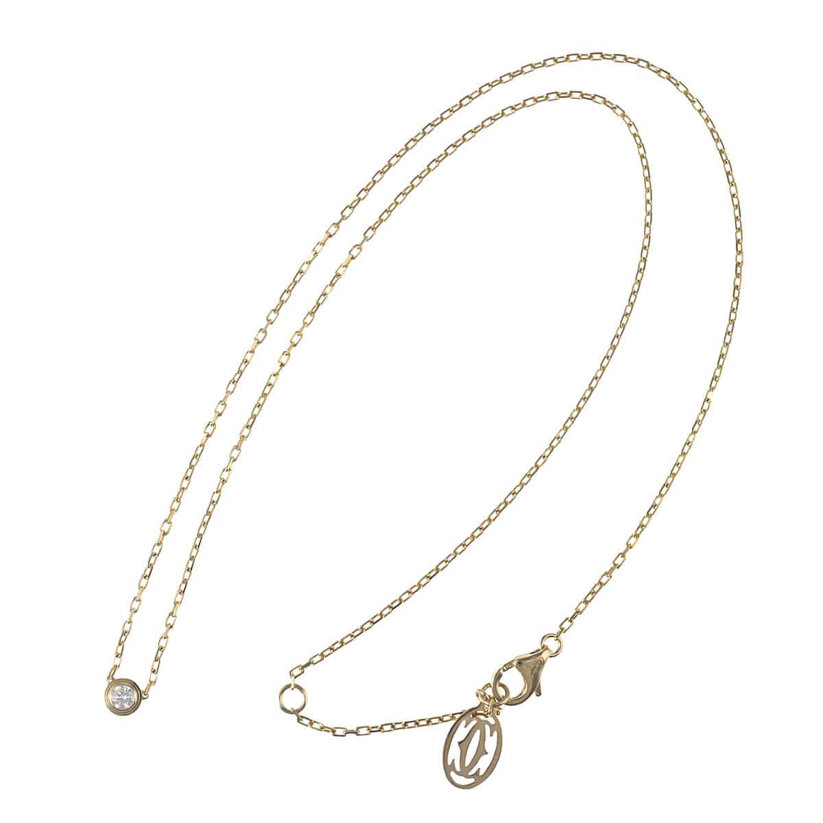 英国王エドワード7世に“Jeweller of kings,king of jewellers (宝石商の王であるがゆえに、王の宝石商)”とまで評価された、世界5大ジュエラーのひとつでもある、世界でもっとも有名なハイジュエリーメゾンのひとつ、ルイ=フランソワ・カルティエが1847年にフランス・パリに創業した、老舗高級宝飾メゾン『Cartier(カルティエ)』。1938年のモデルをエレガントに再解釈した「ダムール」コレクションの、クローズドセッティングされたダイヤモンドがひと粒あしらわれた、イエローゴールド製スモールサイズのペンダントネックレスです。旧コレクション名の「ディアマン レジェ ドゥ カルティエ」は“軽やかに身にまとう”という意味を持ち、気軽に身につけられるシンプルでタイムレスなデザインが魅力。軽やかで繊細なデザインが、カルティエらしく優美で洗練された印象をもたらします。