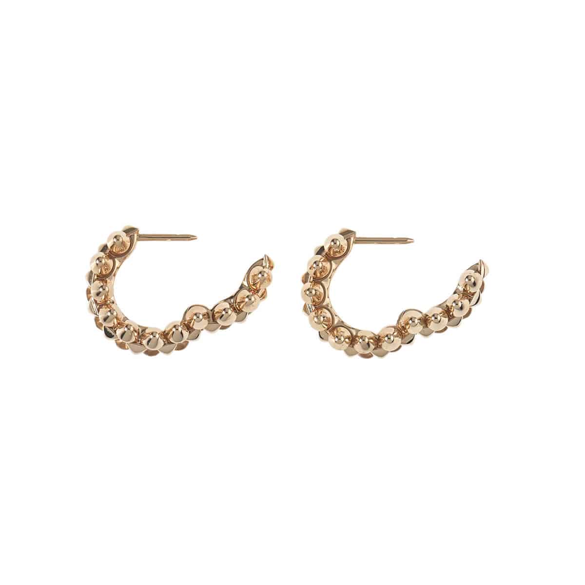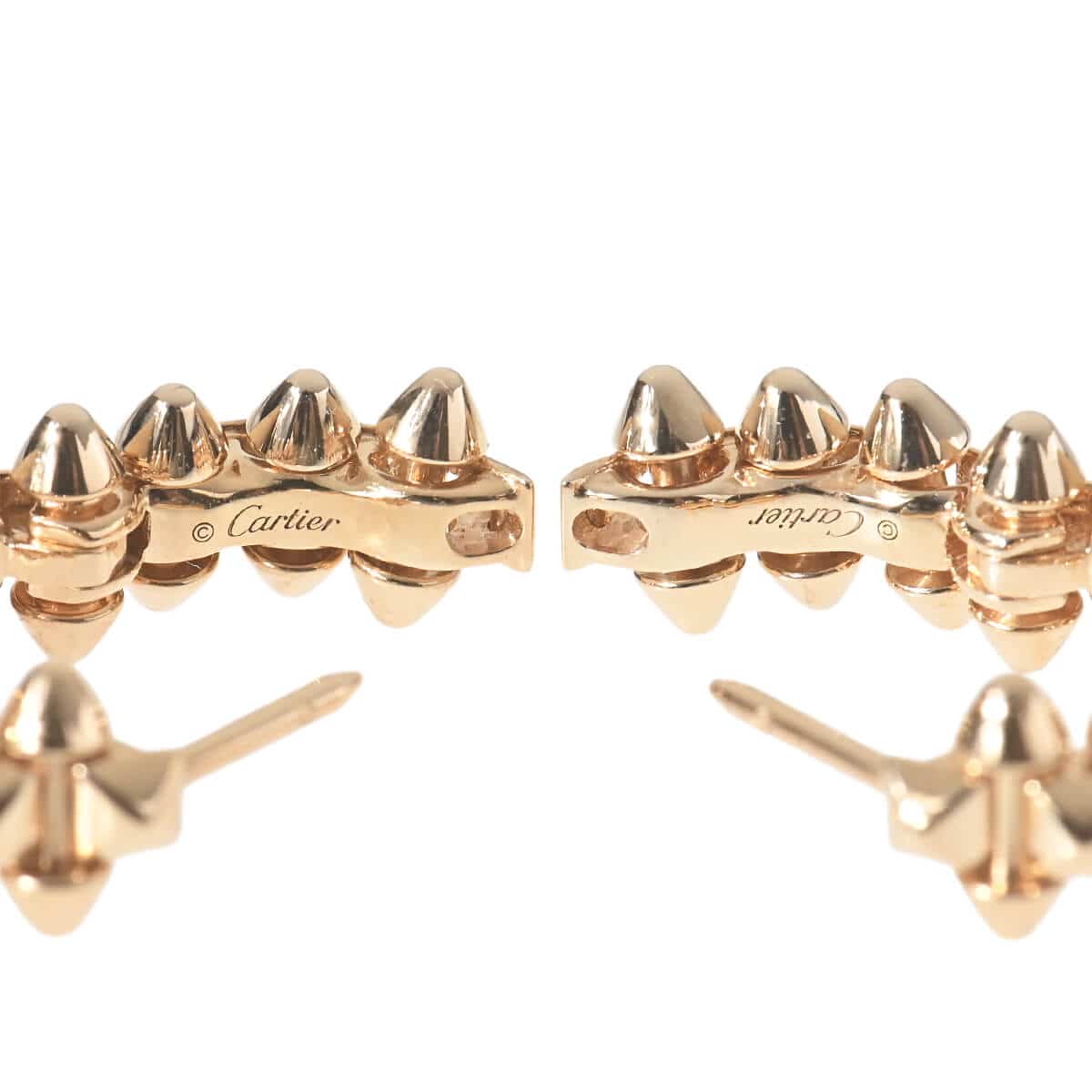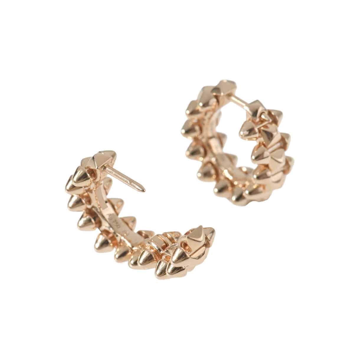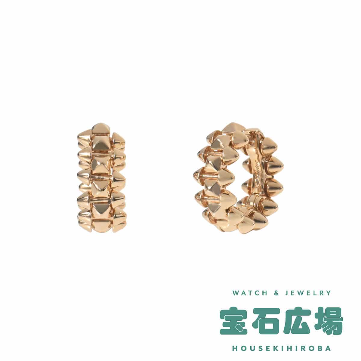 クラシックなフォルムとそこからの解放、削ぎ落されたラインと有り余るエネルギー、真面目さとちょっと羽目を外す感覚、そんな相反するものを同時に主張する「クラッシュ ドゥ カルティエ」コレクション。ジオメトリック、スタッズ、クル カレ、そしてクリエイティブな遊び心、そんな『Cartier(カルティエ)』の象徴的で伝統的なデザインコードをモダンに解釈し独創的に組み合わせた、斬新でシックなこのコレクションは未来に引き継がれるアイコンです。フランス語で“スクエア(正方形)”を意味する「カレ」から生まれたカルティエの象徴的なコードのひとつ「クル カレ」がライン中央に並び、その両サイドにあしらわれた「ピコ」と呼ばれる円錐状のスタッズと幾何学的なデザインコントラストを描く、ピンクゴールド製ミニピアス。ジオメトリックでありながらどこかフェミニン、ミニマルなデザインでありながら複雑な構造を持つ、相反するふたつの魅力を同時に主張するそのフォルムが美しく、カルティエらしい洗練を纏ったピアスです。