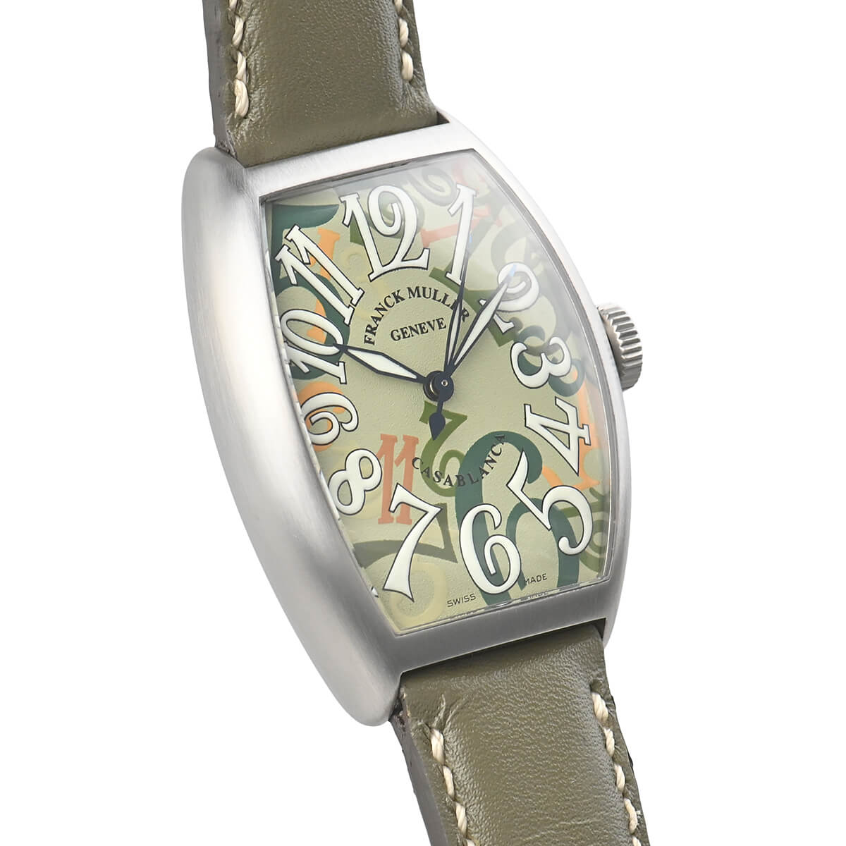 200本が限定生産されたリミテッドのカサブランカです。迷彩カラーのダイヤルが特徴で、ケースは艶消しの仕上げとなります。普通のカサブランカでは刺激が足りないという方にお勧めの一本です。