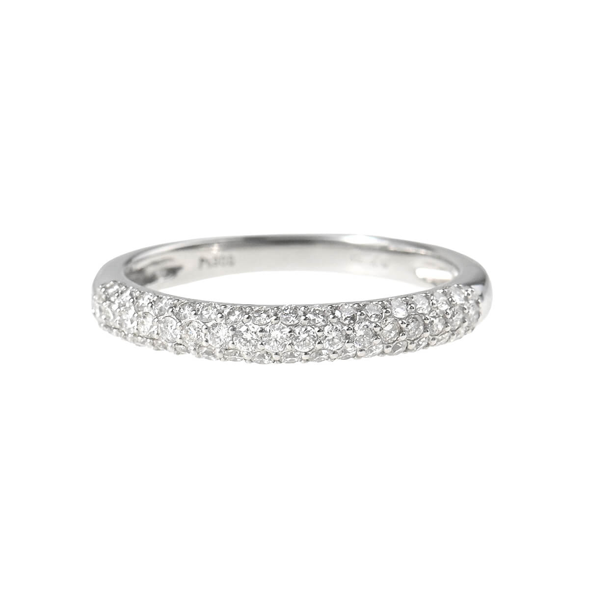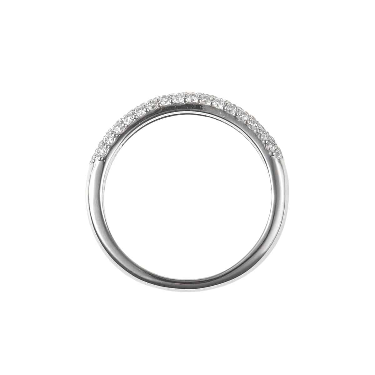 丸みを帯びた優美なフォルムのリングに、トータル0.40ctの小さいながらも煌めくダイヤモンドがパヴェセッティングされたプラチナ製リング。フランス語で“石畳”を意味する“パヴェ”の名の通り、丁寧に敷き詰められたダイヤモンドがさまざまなアングルで光をとらえてきらめきで指先を彩ります。洗練されたシンプルさと華奢な雰囲気が美しいリングは、デイリーにはもちろんワーキングスタイルにも。素材やデザインの異なるリングを数本レイヤードしたり、自分らしいルックを楽しめる、日常に本物の輝きを添えてくれるコストパフォーマンスの高さも魅力のダイヤモンドジュエリーです。