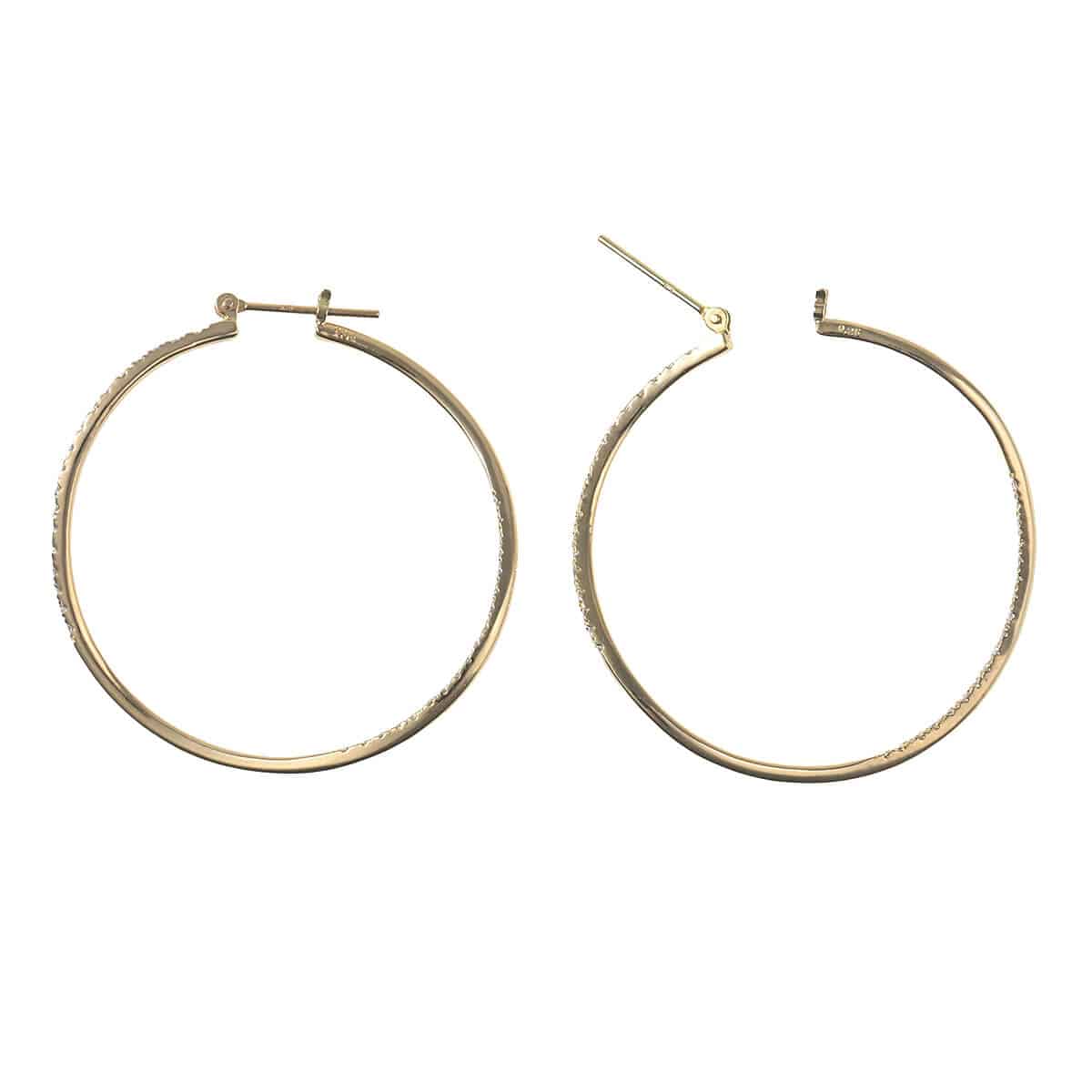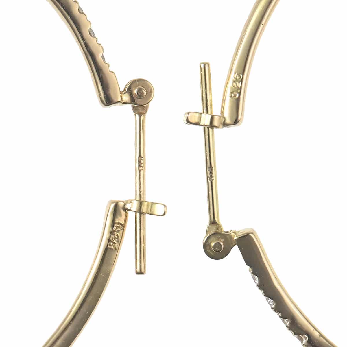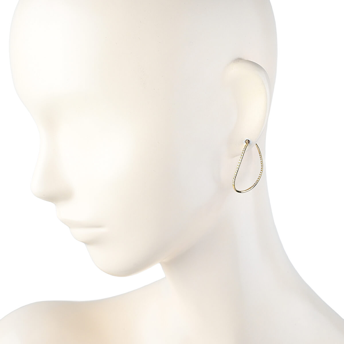 それぞれ0.25ct、トータル0.5ctのダイヤモンドのきらめきで描かれたフープが、フェイスラインを飾るイエローゴールド製ピアス。カーブがかったダイヤモンドラインが、フェイスラインを繊細に、美しく印象づけます。正面から見えるフープの裏側にまでダイヤモンドがあしらわれたりと、さりげないこだわりも感じられるコストパフォーマンスの高さも魅力のお洒落なゴールドジュエリーです。