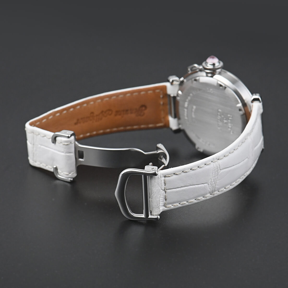 2003年のクリスマス限定として発表された「パシャC」。歴代のクリスマス限定モデルの中でも特に人気の高く、ピンクシェルのダイヤルとそれに合わせたカラーのリューズが特徴的なモデルです。