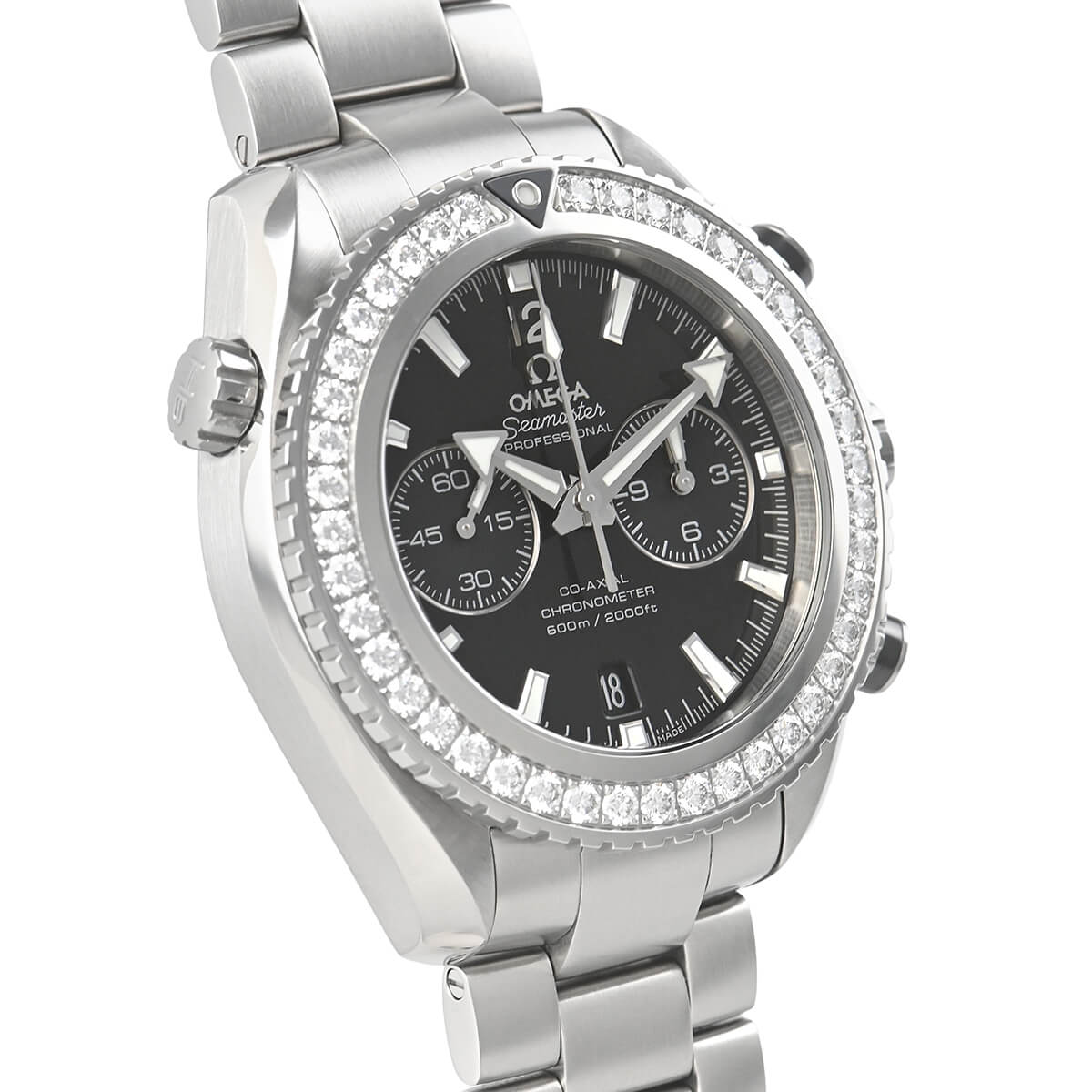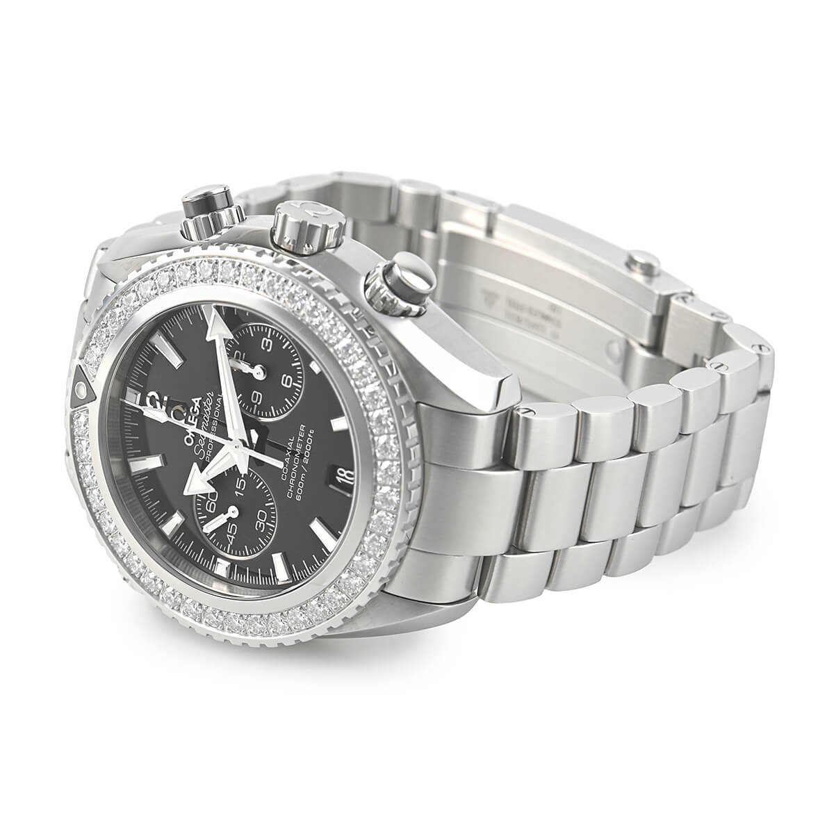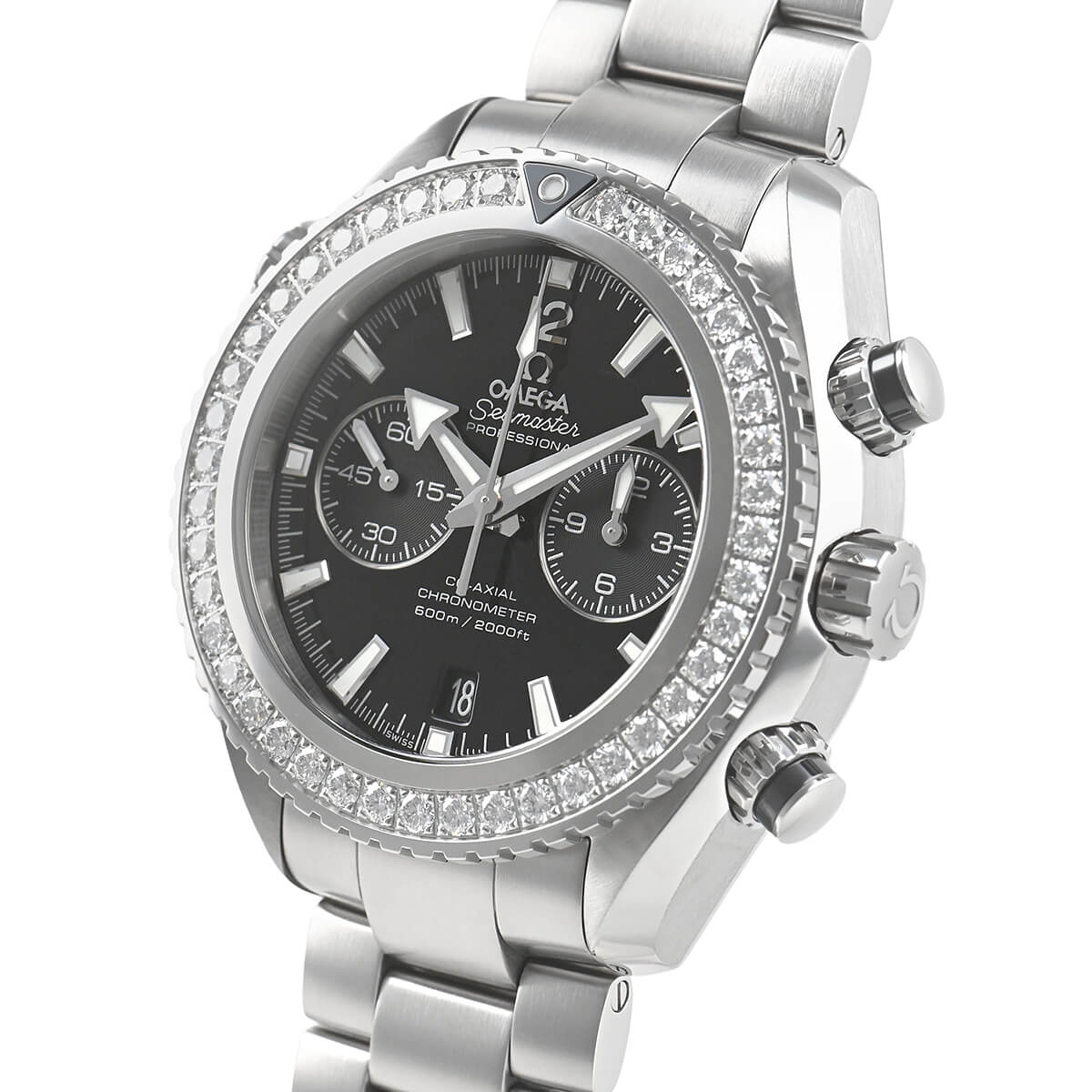 オメガのプロフェッショナルダイバーウォッチ「シーマスター プラネットオーシャン クロノグラフ」。こちらはケース径45.5mmで、ベゼルにダイヤモンドをセッティングした珍しいモデル。ヘリウムガスエスケープバルブを装備した600m防水の本格派ですが、ダイヤモンドベゼルとなったことでスポーティーながらドレッシーでエレガンスも感じさせる一本になっています。ムーブメントにはオメガが誇るコーアクシャルムーブメントのキャリバー9300を搭載。