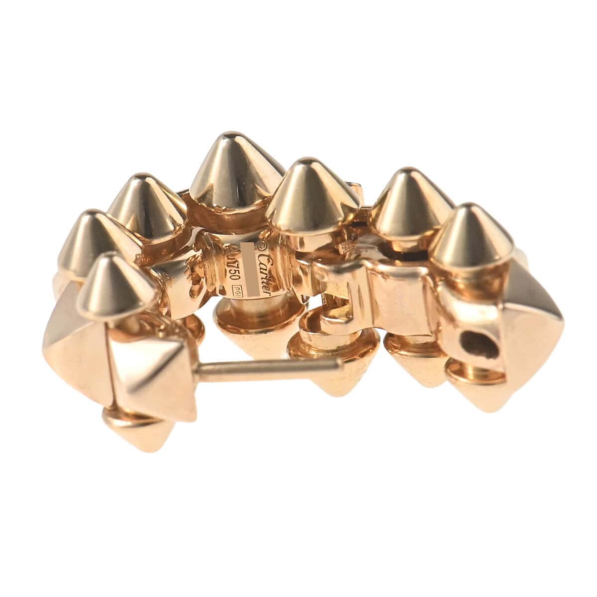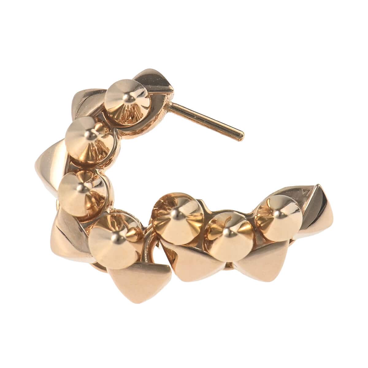 クラシックなフォルムとそこからの解放、削ぎ落されたラインと有り余るエネルギー、真面目さとちょっと羽目を外す感覚、そんな相反するものを同時に主張する「クラッシュ ドゥ カルティエ」コレクション。ジオメトリック、スタッズ、クル カレ、そしてクリエイティブな遊び心、そんな『Cartier(カルティエ)』の象徴的で伝統的なデザインコードをモダンに解釈し独創的に組み合わせた、斬新でシックなこのコレクションは未来に引き継がれるアイコンです。フランス語で“スクエア(正方形)”を意味する「カレ」から生まれたカルティエの象徴的なコードのひとつ「クル カレ」がライン中央に並び、その両サイドにあしらわれた「ピコ」と呼ばれる円錐状のスタッズと幾何学的なデザインコントラストを描く、ピンクゴールド製シングルピアス。ジオメトリックでありながらどこかフェミニン、ミニマルなデザインでありながら複雑な構造を持つ、相反するふたつの魅力を同時に主張するそのフォルムが美しく、カルティエらしい洗練を纏っています。エレガントな個性あふれるシングルピアスはセットでも、他のアイテムと組み合わせても、自分らしいコーディネートを楽しめます。