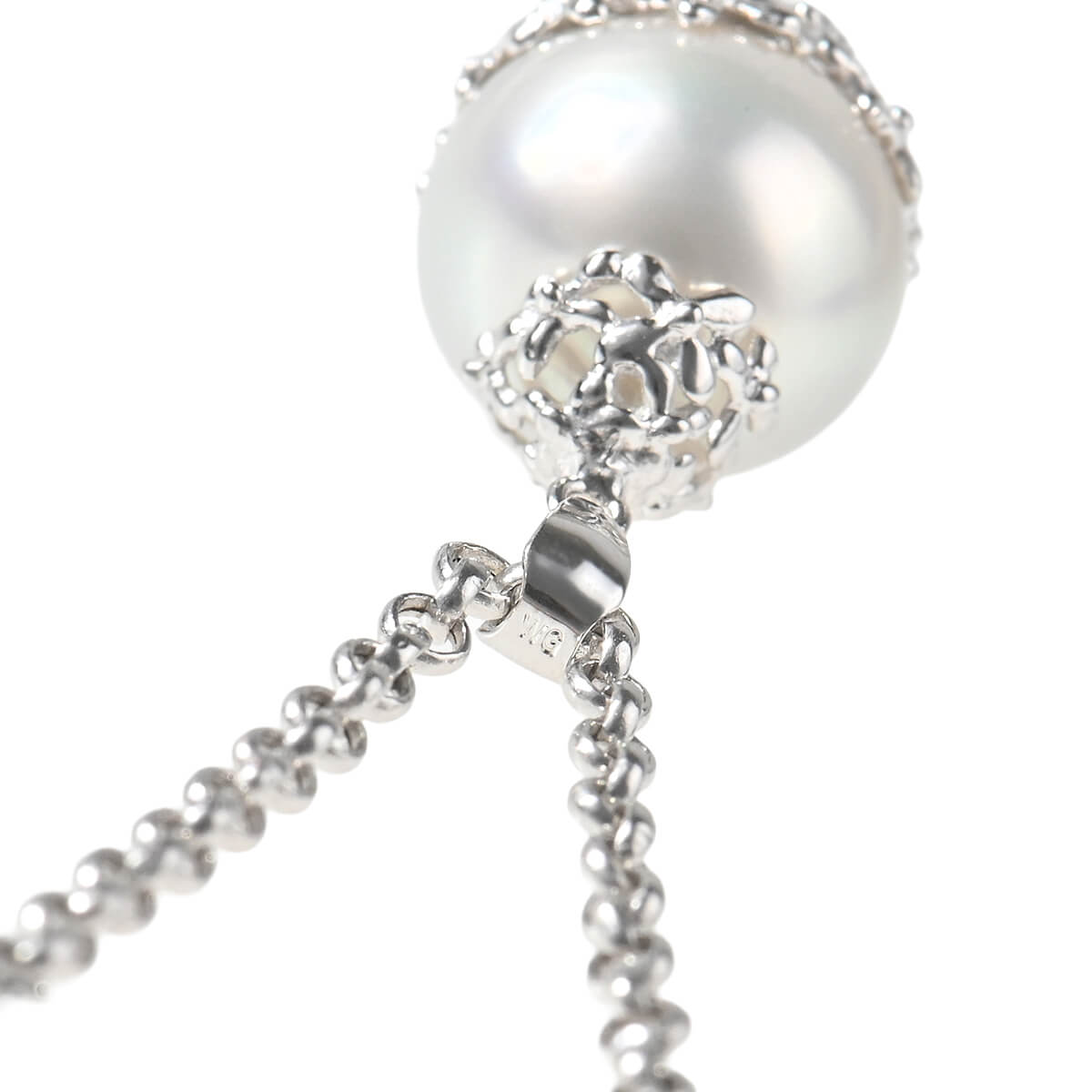 大粒パールを包み込む、ドラマティックな造形が印象的なホワイトーゴールド製ペンダントネックレス。優美なパールを大胆なデザインで仕上げたペンダントは、デイリーのスタイリングのお洒落なアクセントにぴったり。大人の遊び心と芸術性をあわせもつ、手に取りやすい価格も魅力のファインジュエリーです。